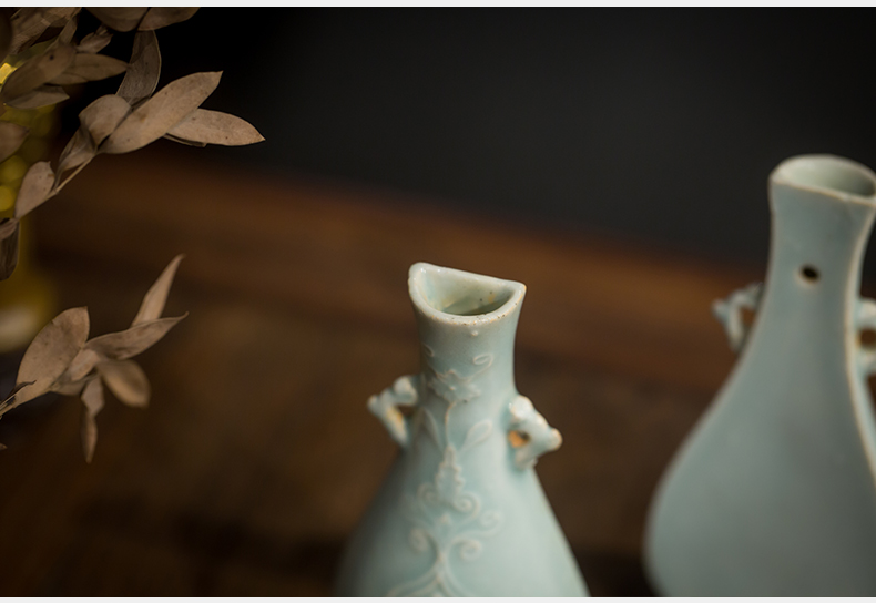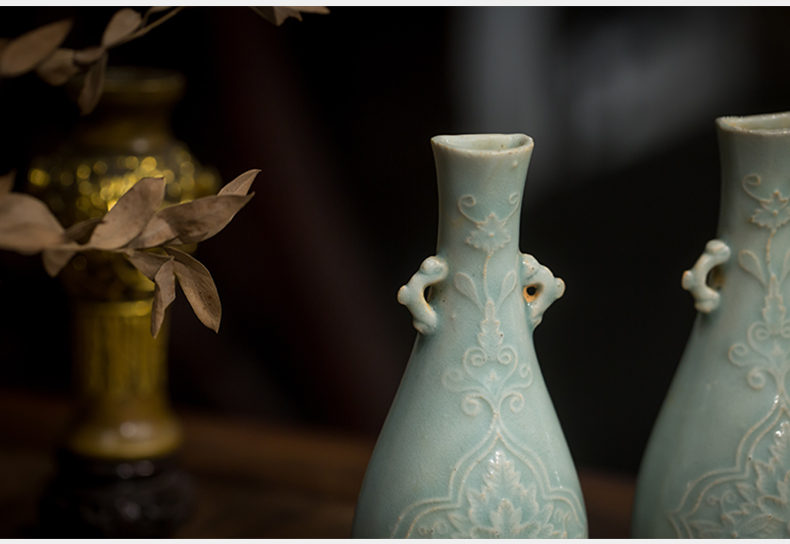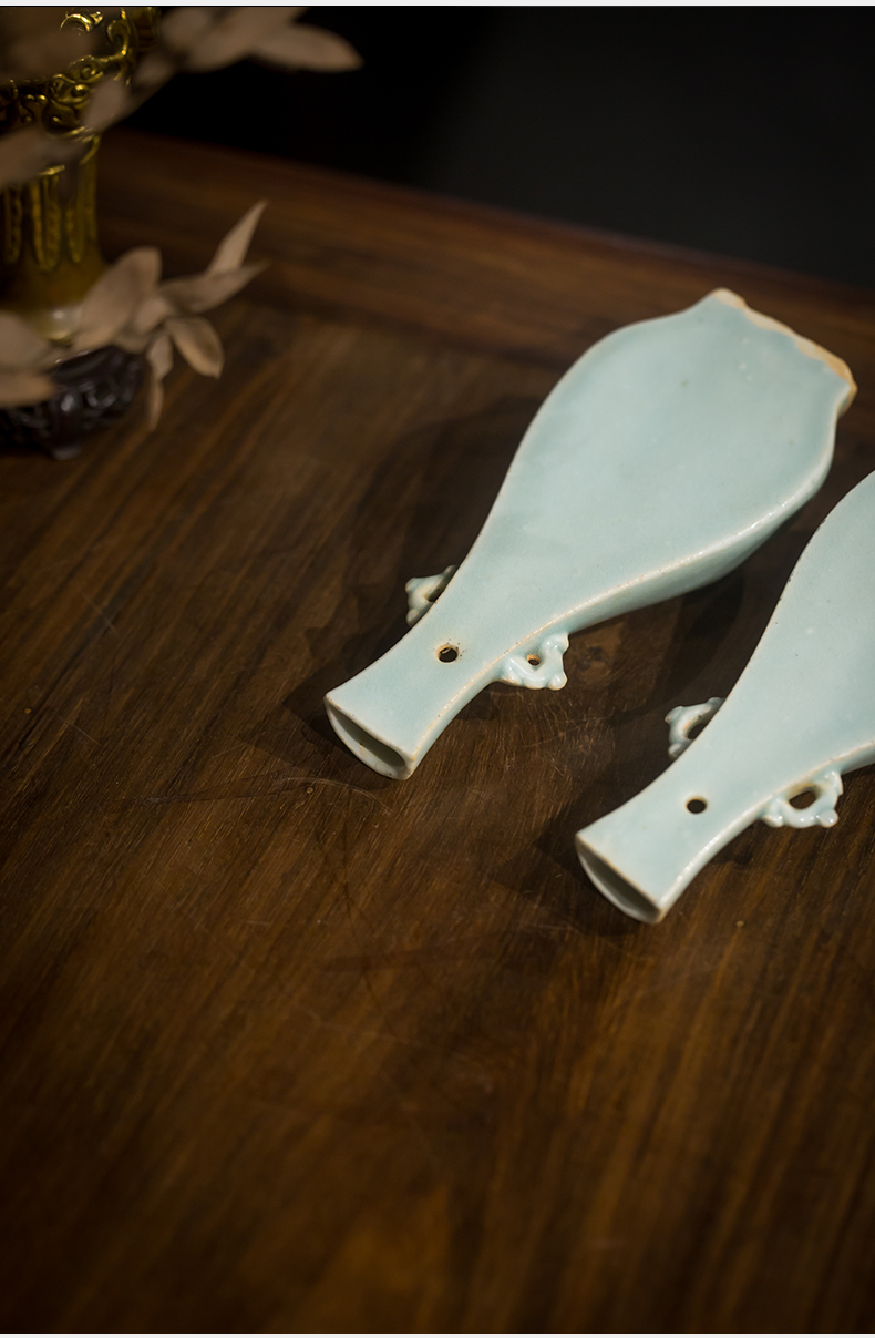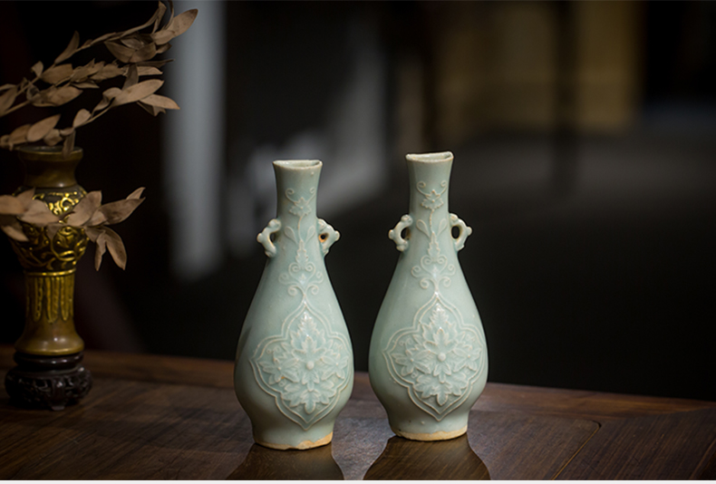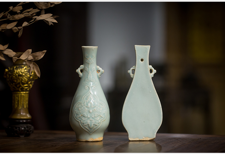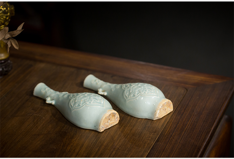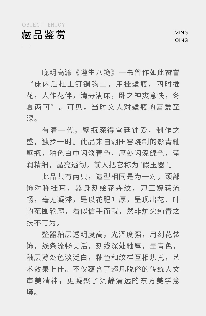 清代 湖田窑影青釉花卉纹壁瓶(一对)