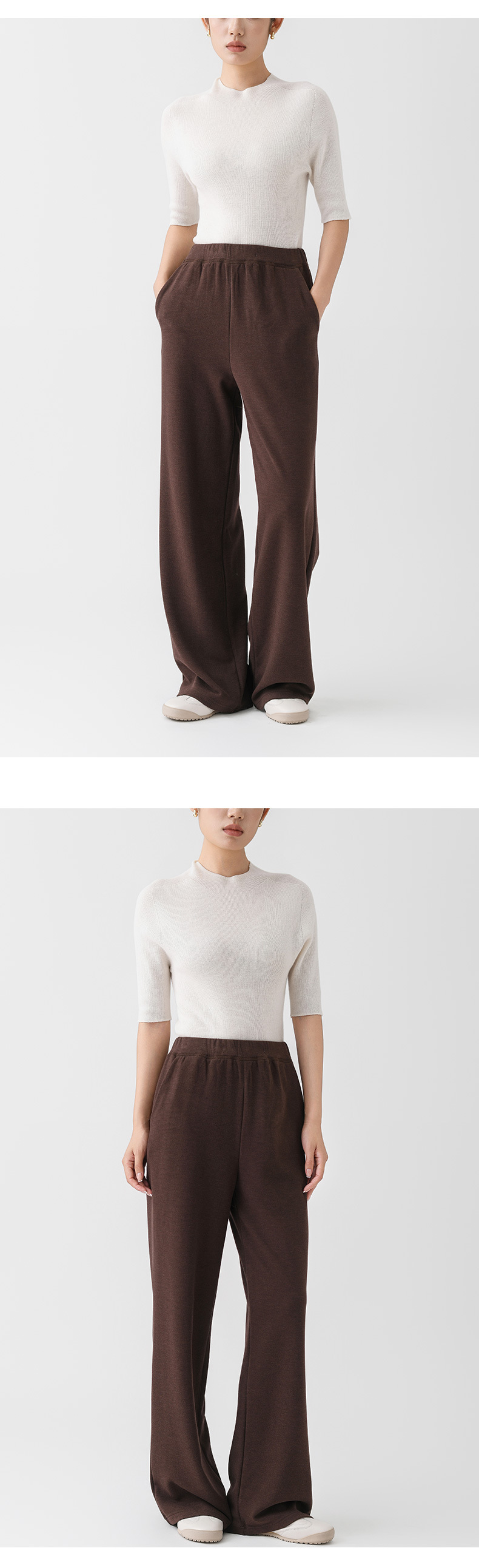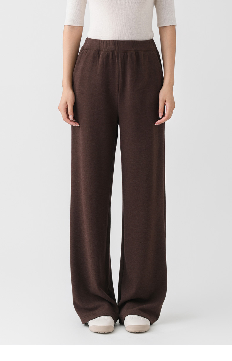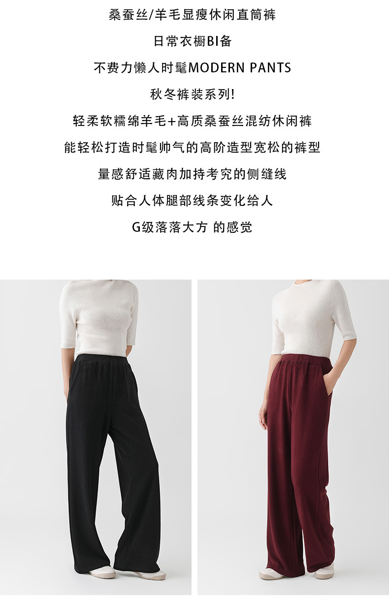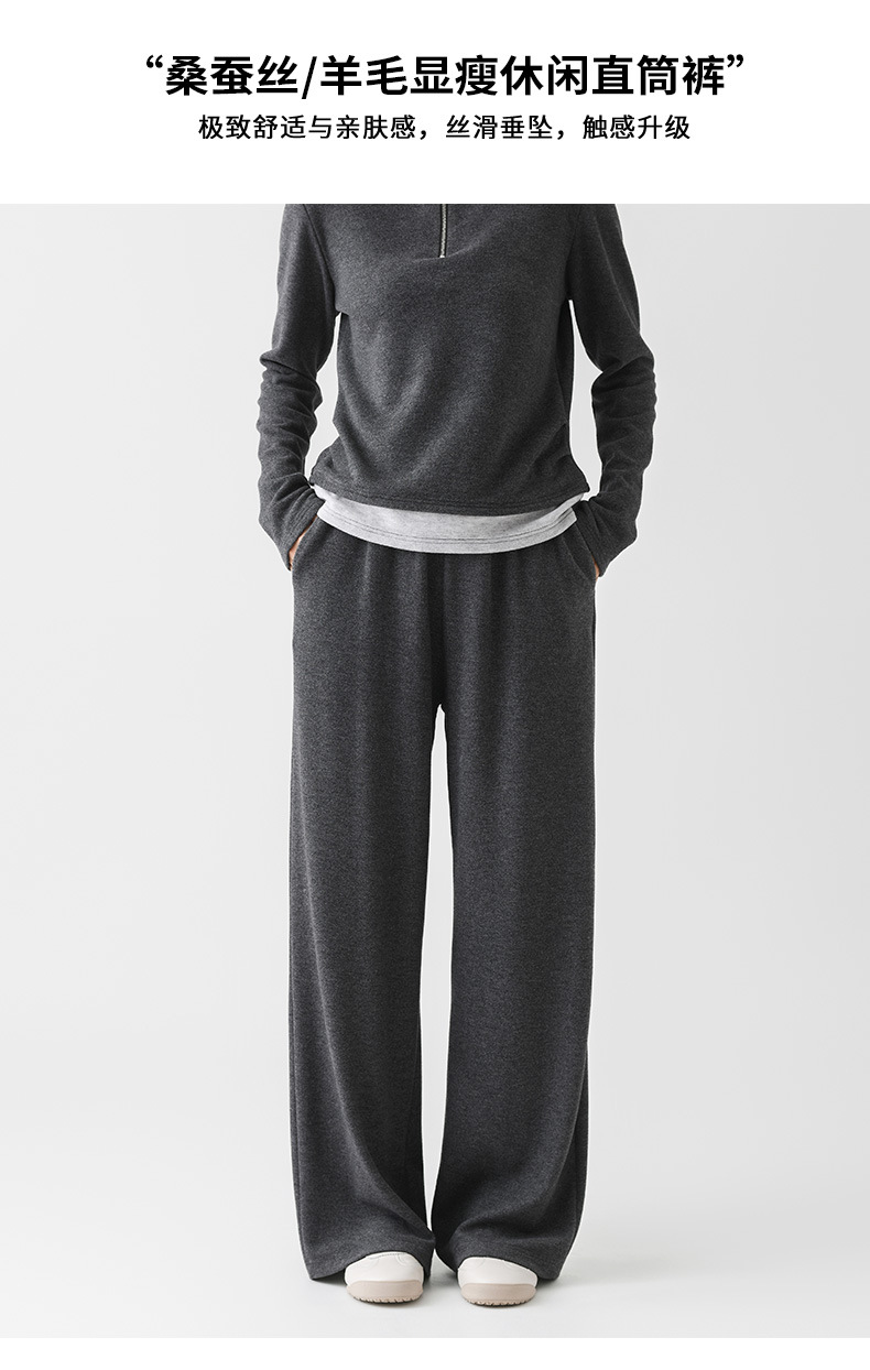 丁摩 阔腿裤垂感高级女秋季新款桑蚕丝羊毛针织直筒裤气质显瘦纯色长裤5ZF- 10330