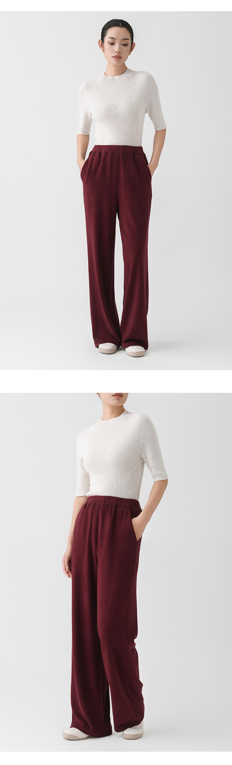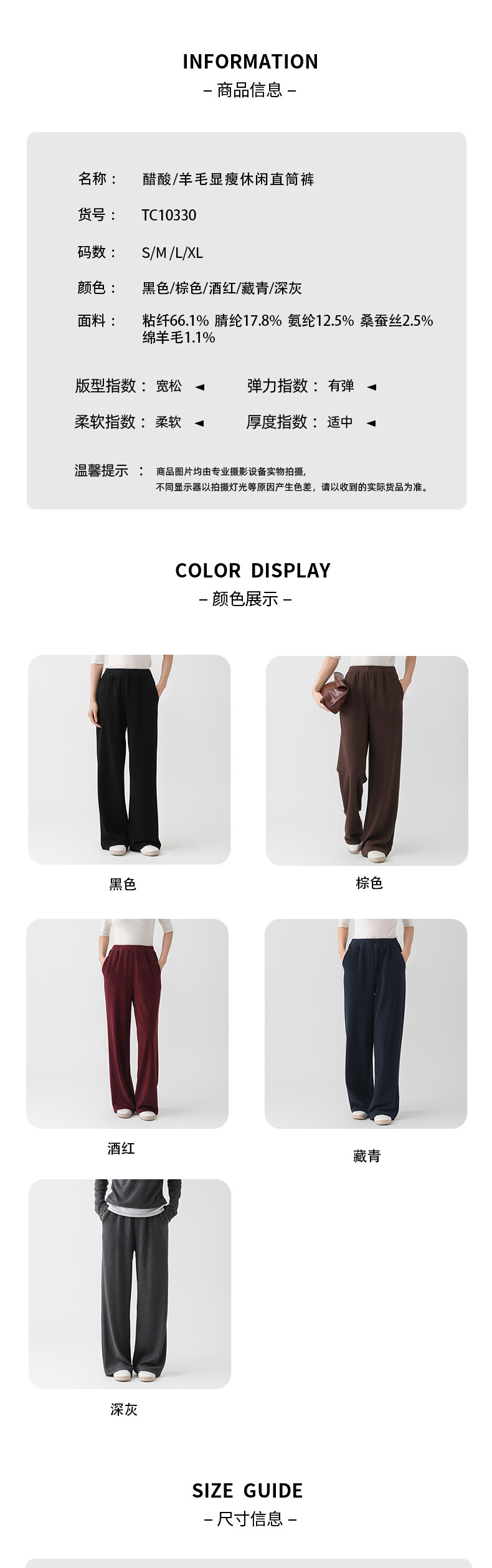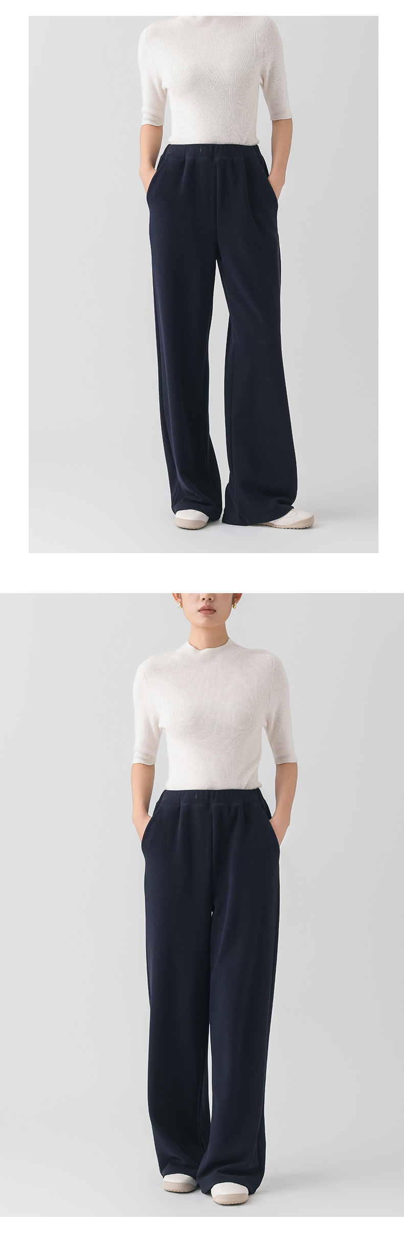 丁摩 阔腿裤垂感高级女秋季新款桑蚕丝羊毛针织直筒裤气质显瘦纯色长裤5ZF- 10330