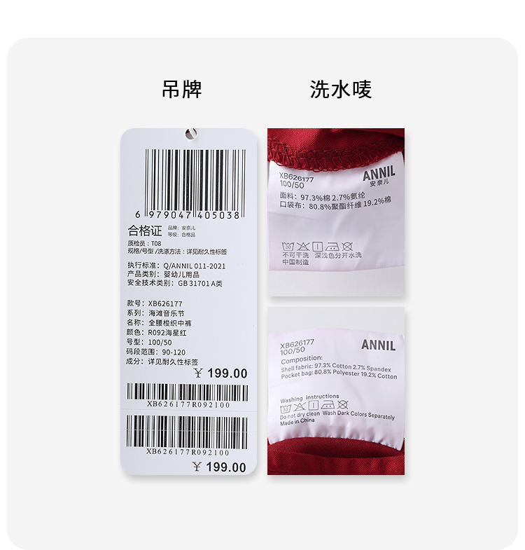 【实体店同款】男童全腰梭织中裤夏季新款安奈儿童装XB626177