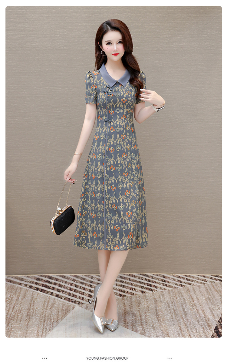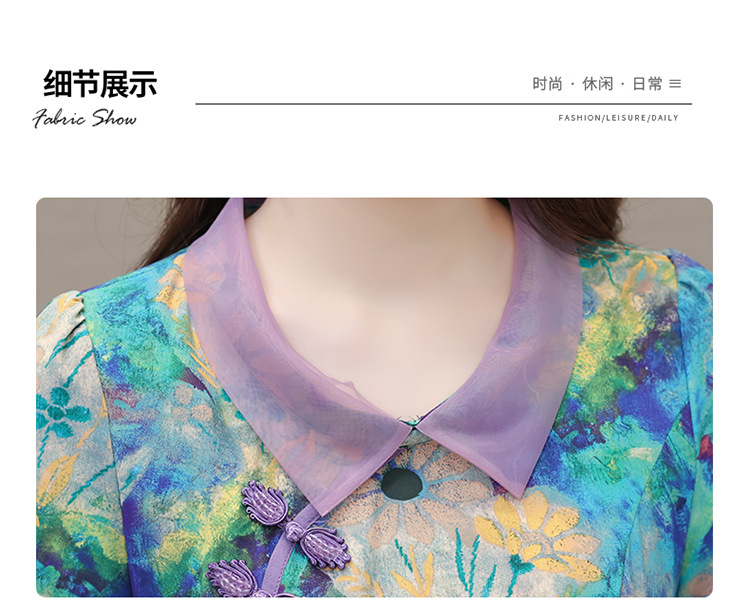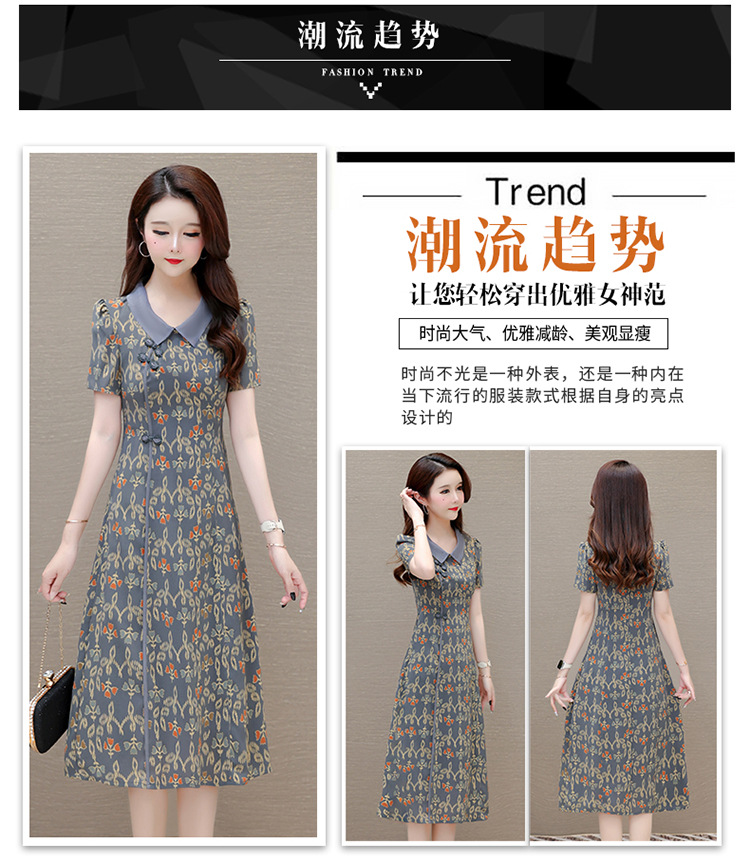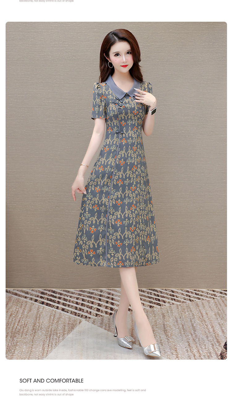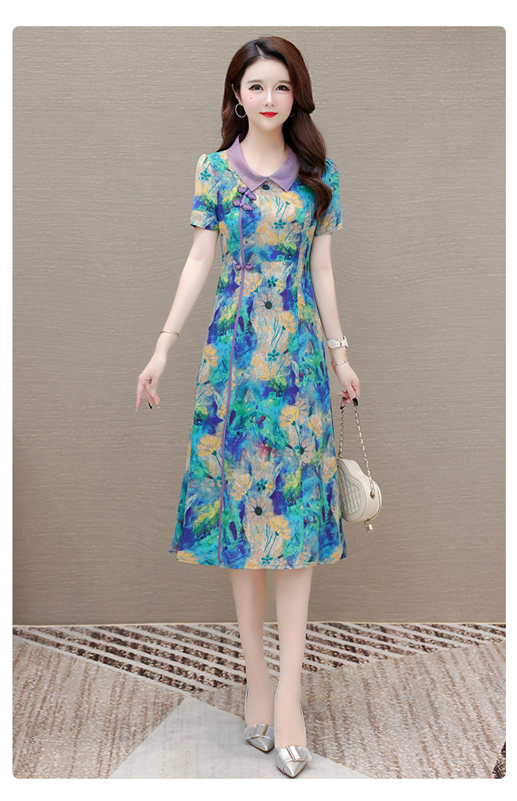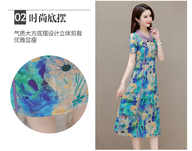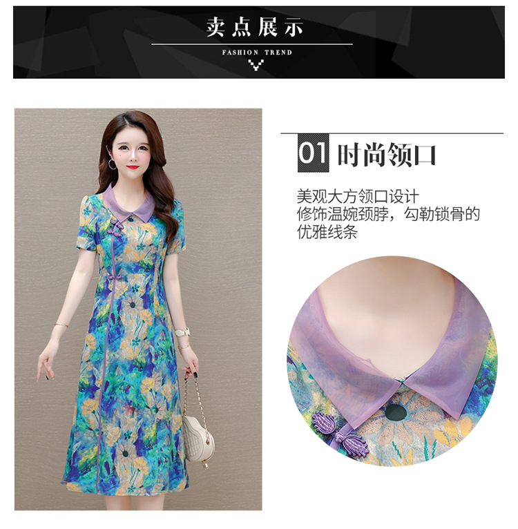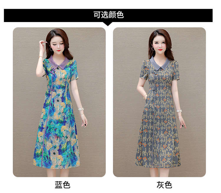 娃娃领短袖国风,妈妈装气质连衣裙QYM-YJ-24DS310-L