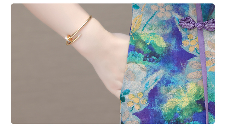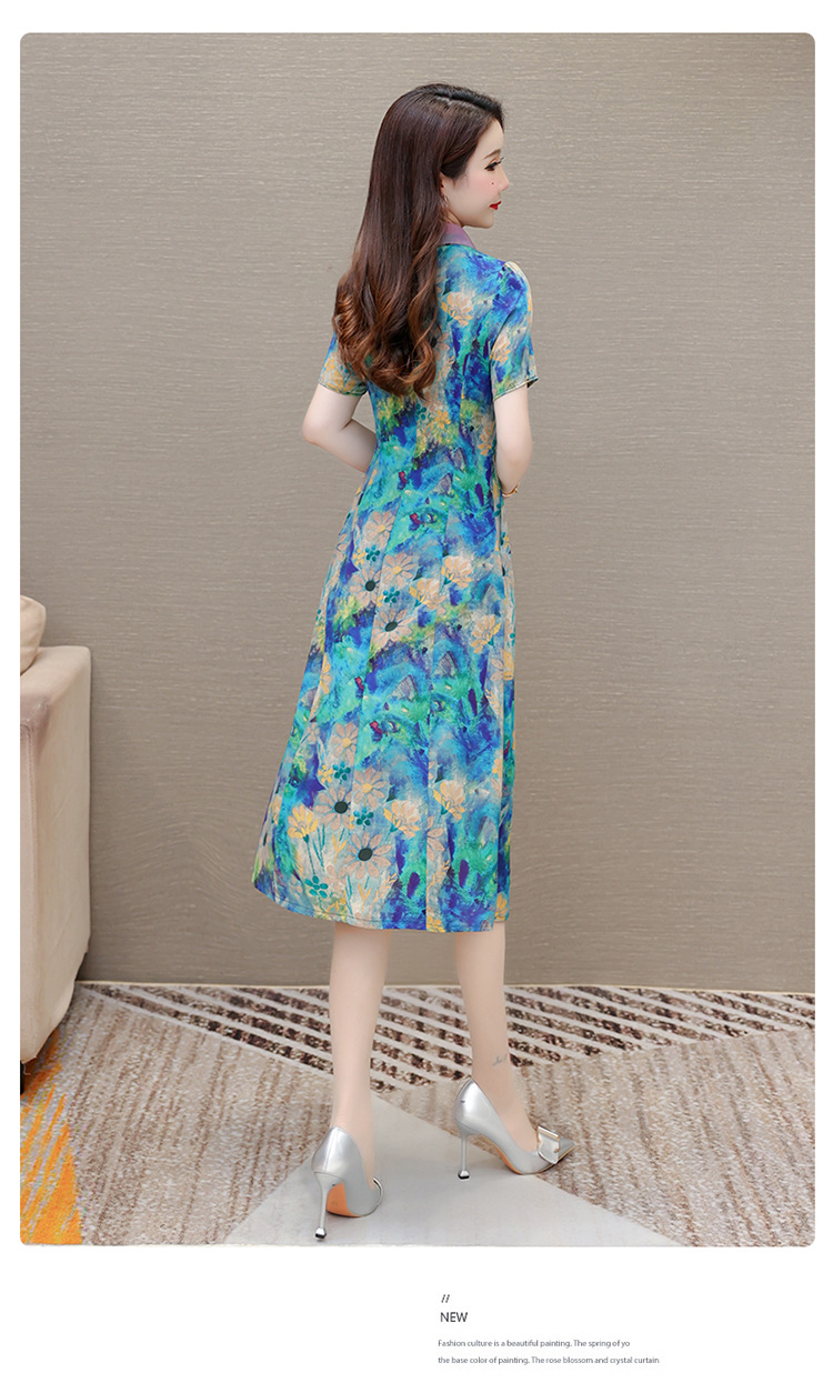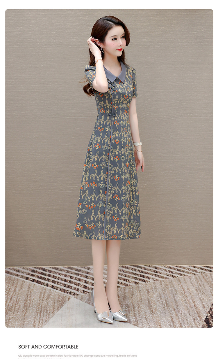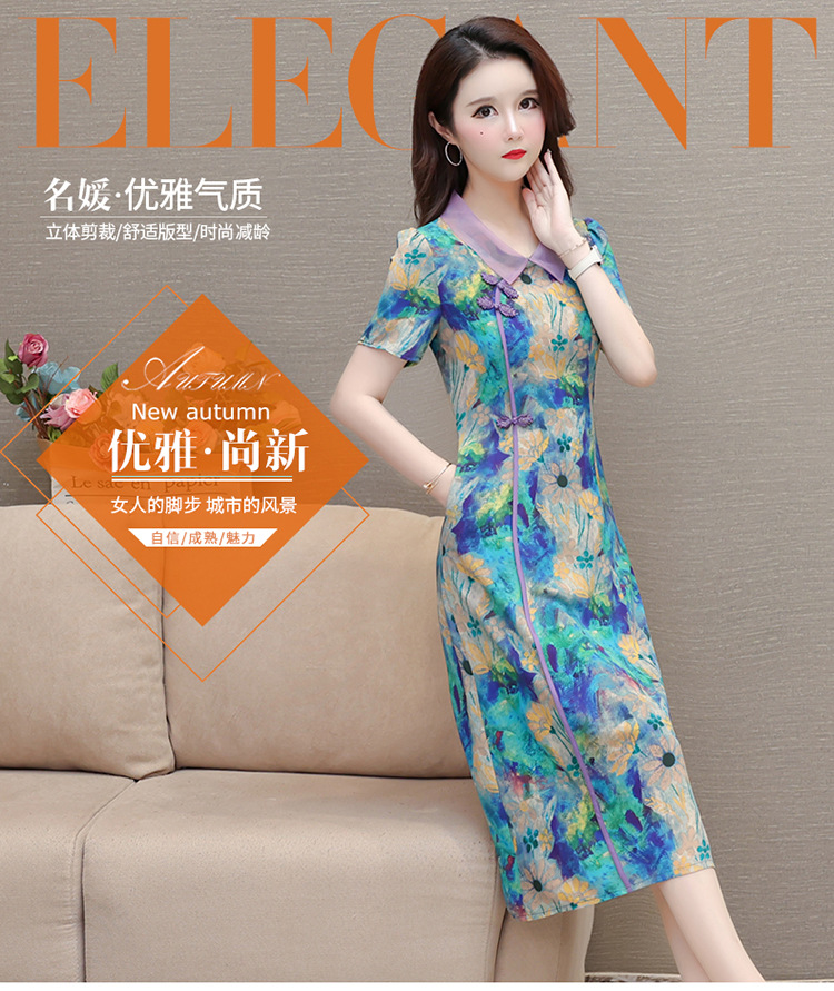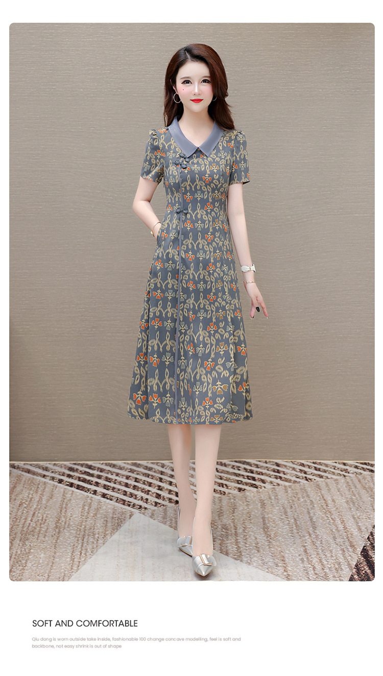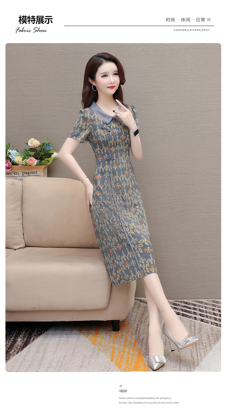 娃娃领短袖国风,妈妈装气质连衣裙QYM-YJ-24DS310-L