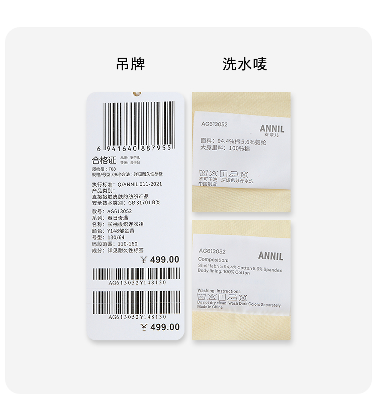 【实体店同款】女童长袖梭织连衣裙春季新款安奈儿童装AG613052