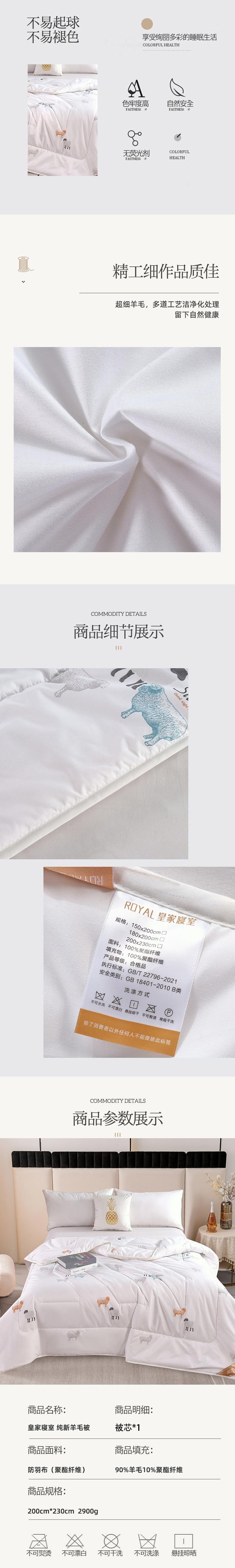 皇家寝室 纯新羊毛被200cm*230cm/2900g HJQS-BZ3988
