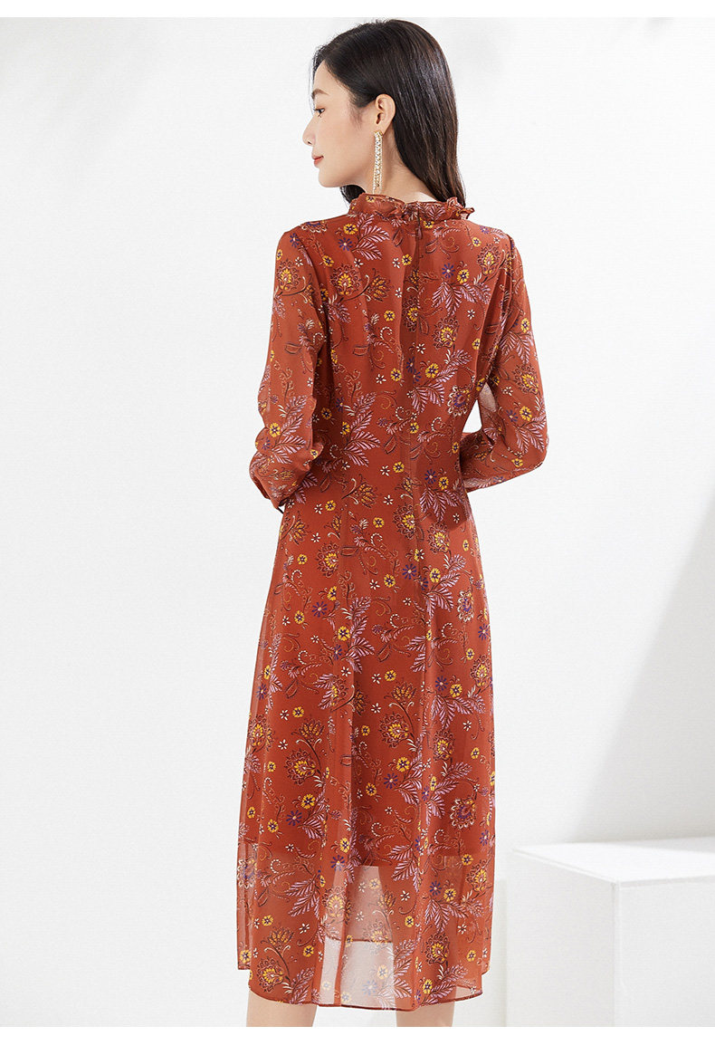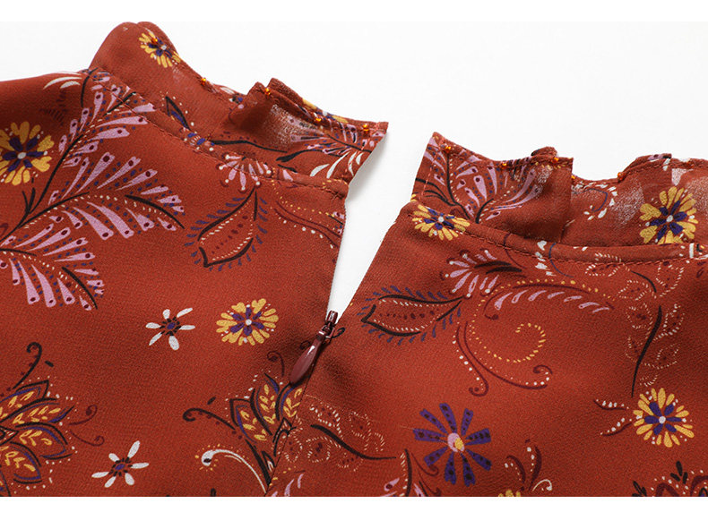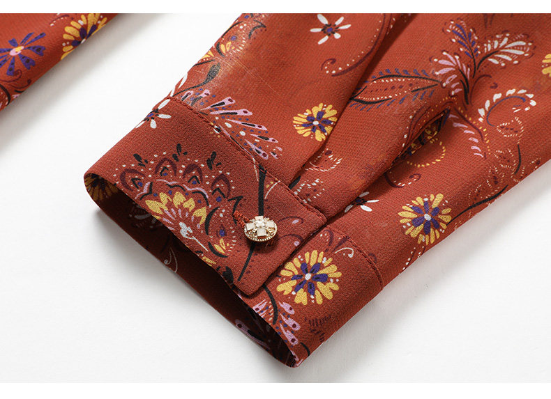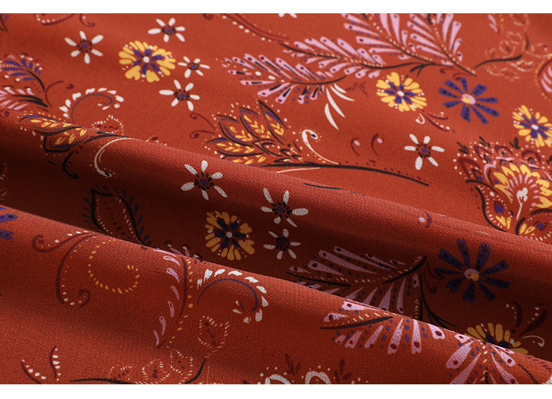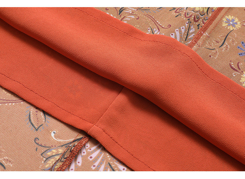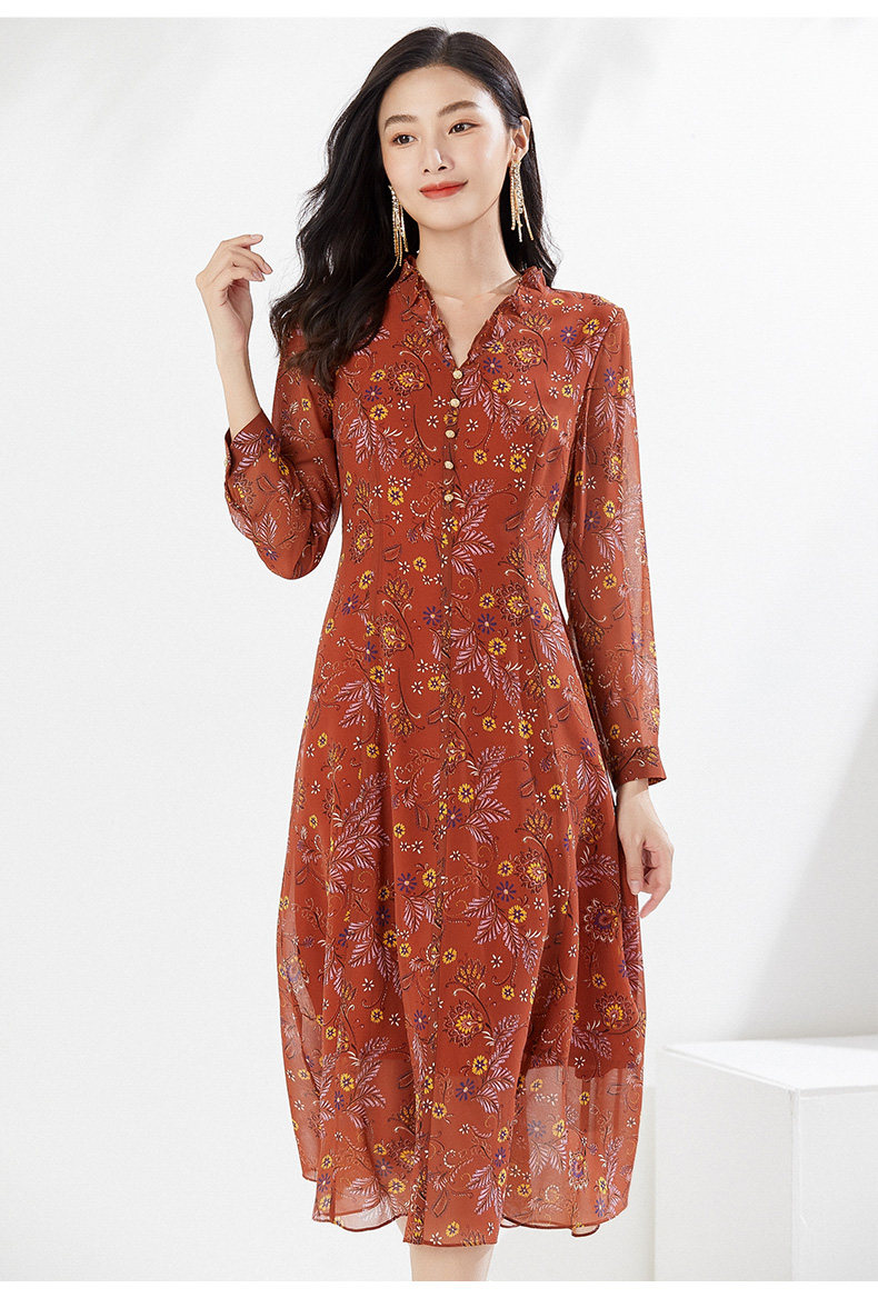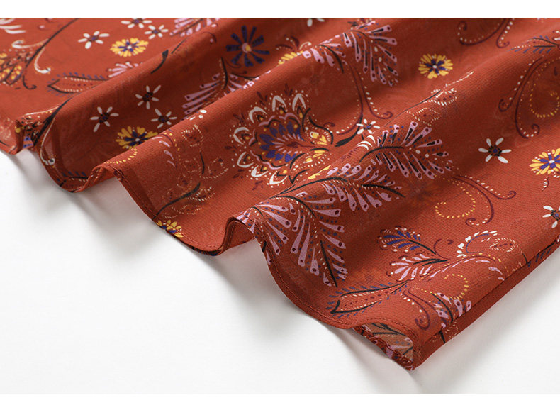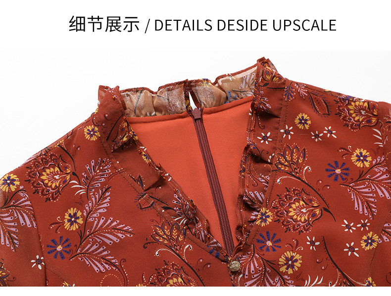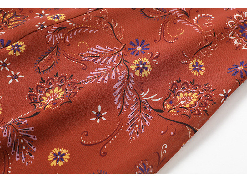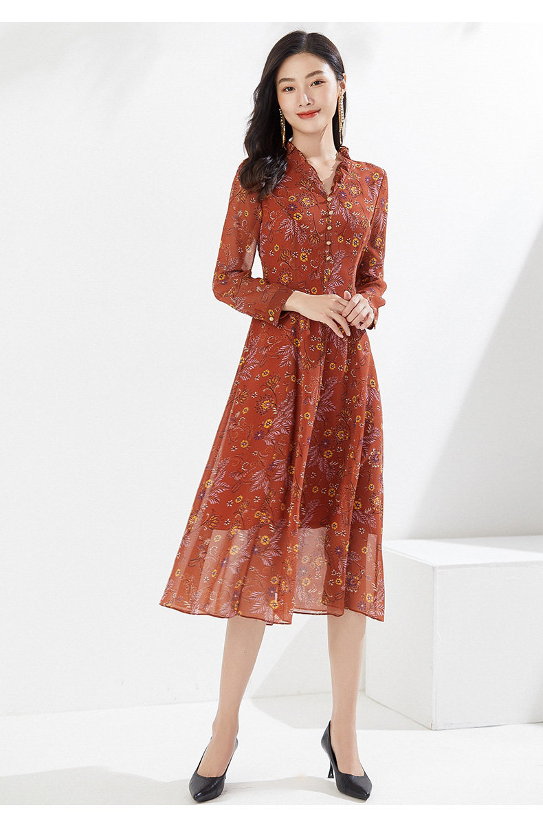 乔万尼春新款长袖雪纺连衣裙印花V领设计收腰显瘦EI3E239