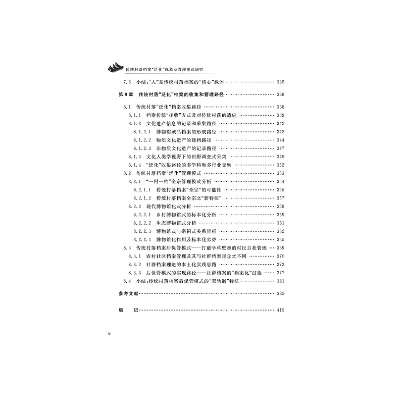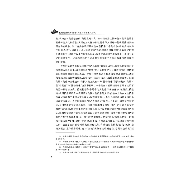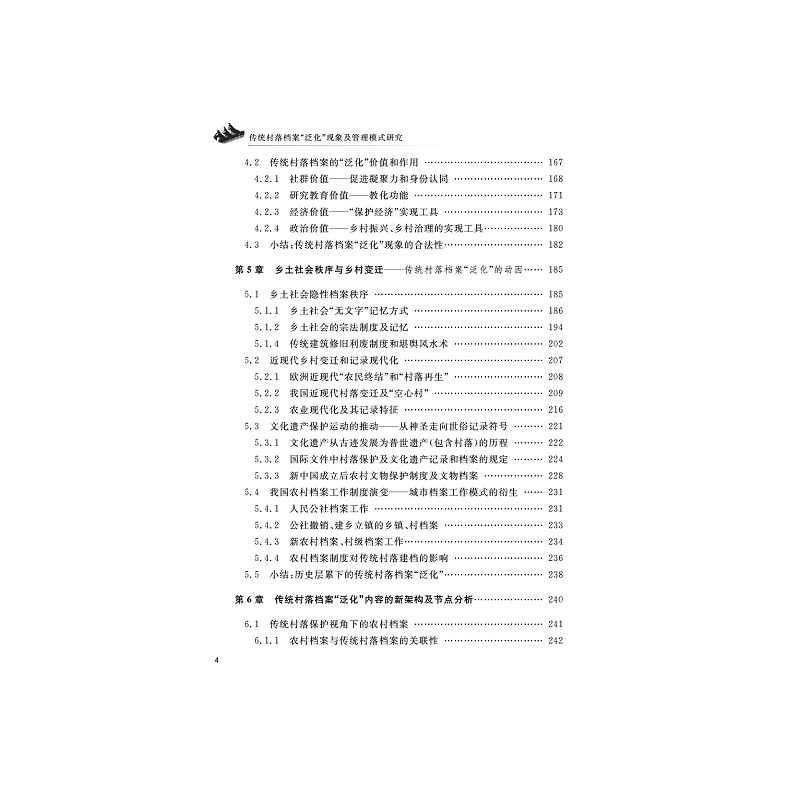 对传统村落作为一类文化遗产进行保护,缘于它对现代化的“适应”而不断消解。村落不仅代表了村落特色还表达了农耕文明。传统村落档案进一步为传统村落建立一份存照、描绘一副画卷,揭示大量有价值却貌似不相关思想背后的相关性,从而沟通过去与现在、乡村与城市。目前开展的传统村落保护运动和名录制度,是一个研究传统村落档案的契机。本书将是传统村落可持续保护的基础性认知和工作,不仅着眼于现状,更是提出从过去走向未来的模式。