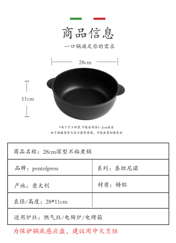 意大利原产PENTOLPRESS泰坦尼诺系列深煮锅28cm(燃气款)