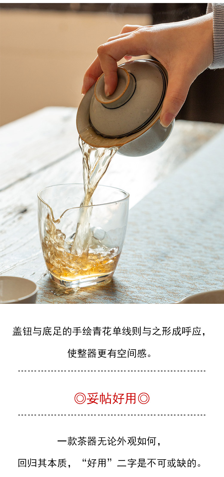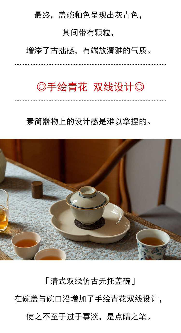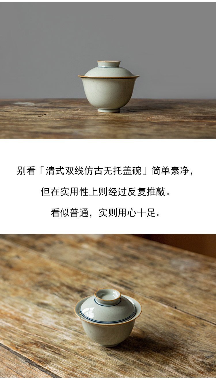 茶香记 草木灰釉 清式双线仿古无托盖碗 手绘 性价比高 好看耐用 功夫茶具
