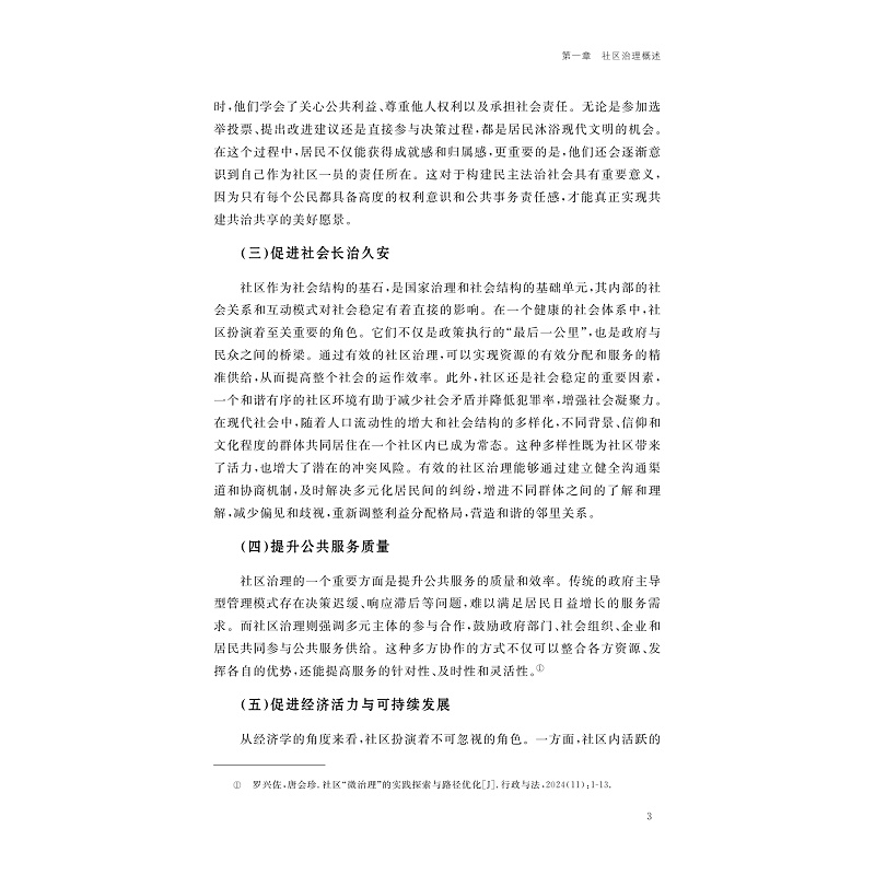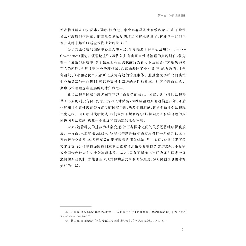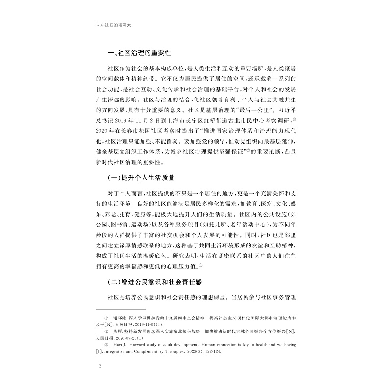 在全球化与数字化转型浪潮的深度交织下,社区作为社会治理的基本单元,其治理效能不仅关乎国家治理现代化的“最后一公里”,更是塑造社会韧性、应对复杂矛盾的前沿阵地。党的二十大报告所强调的“完善社会治理体系,健全共建共治共享的社会治理制度”,深刻指明了社区治理在国家治理体系中的核心地位及其未来发展的方向。本书探讨了城镇化、老龄化、少子化叠加背景下,老旧社区更新博弈、数字生活深化、多元主体协同困境等现代社区治理挑战,提出了以社区治理理论框架与实践模式创新为基础的未来社区治理之道,并展望了具身智能机器人嵌入人类生活等未来社区治理场景。