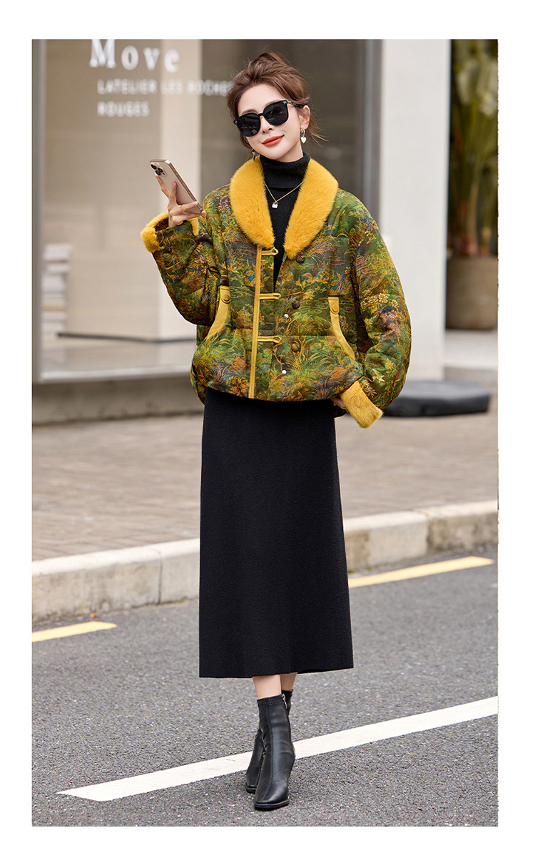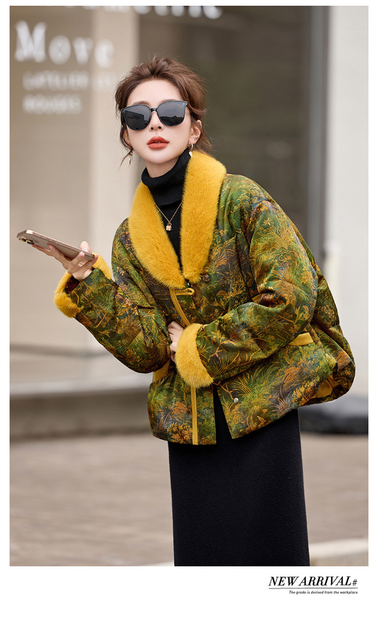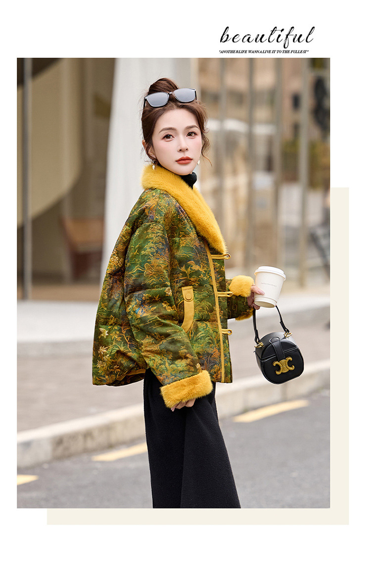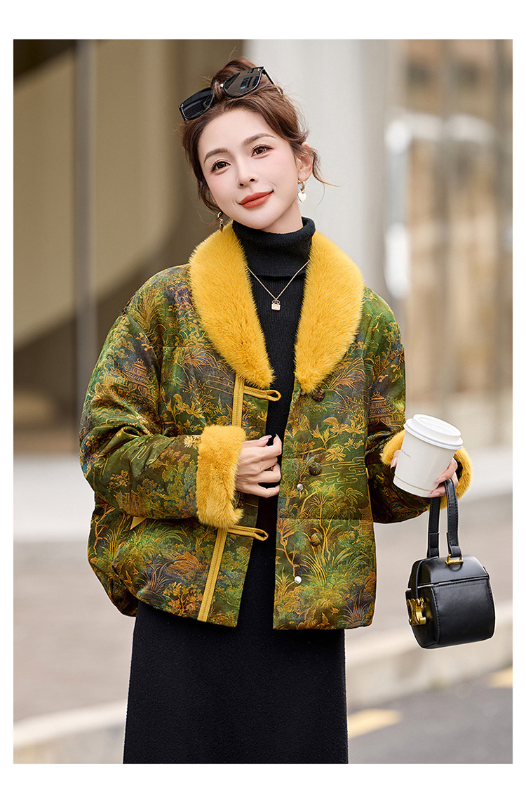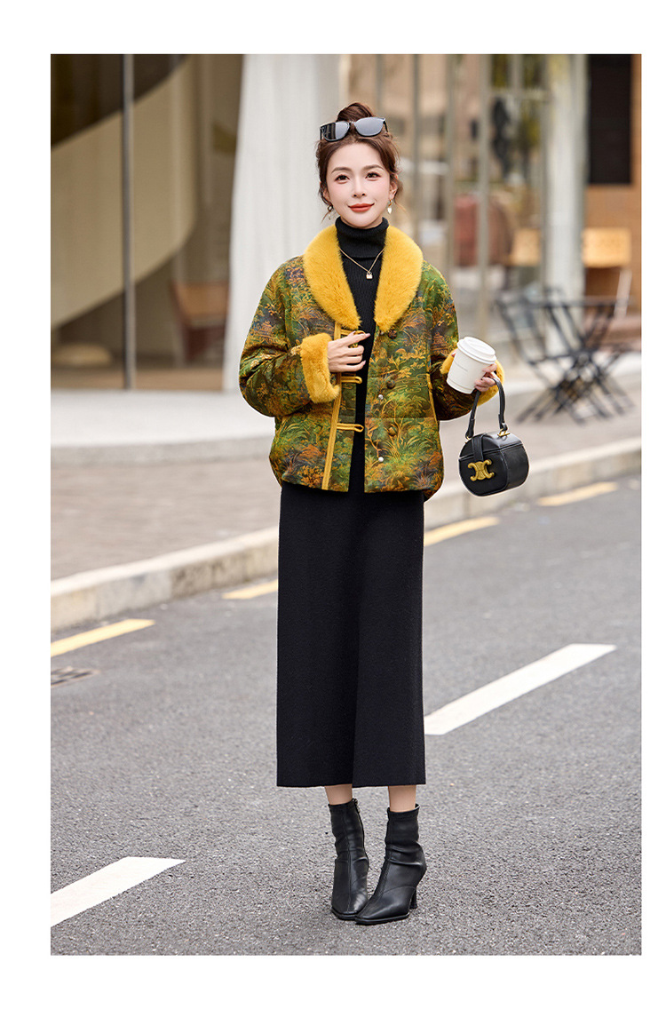 HR AQHUI8163新中式撞色提花国风短款羽绒服