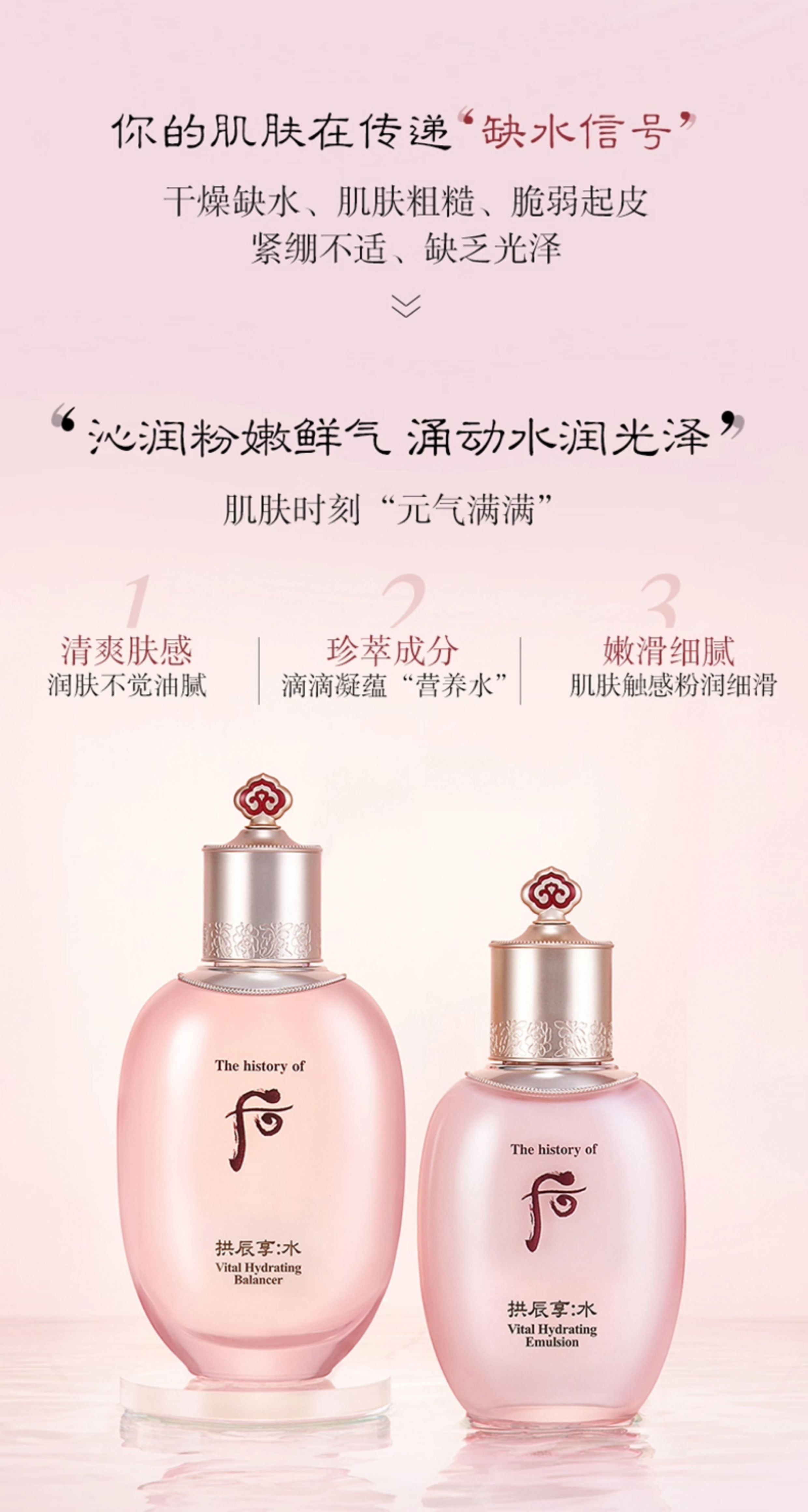 【保税仓】WHOO后水妍三件套企划版【带循环精华】爽肤水150ml+乳液110ml+精华50ml+爽肤水中样20ml+乳液中样20ml+防晒霜中样13ml+洁面中样40ml/套
