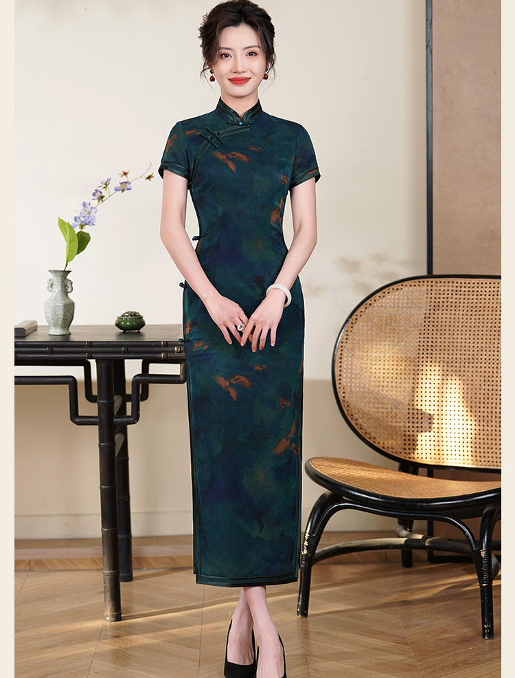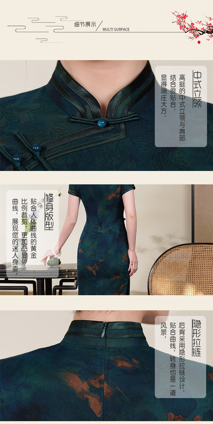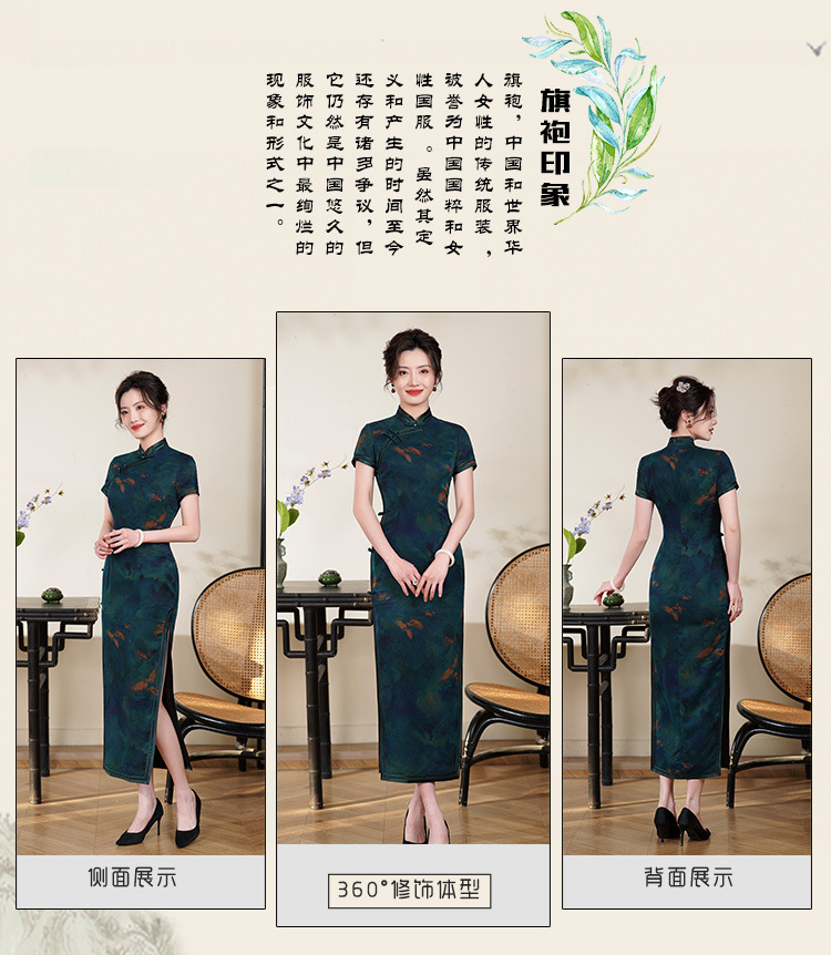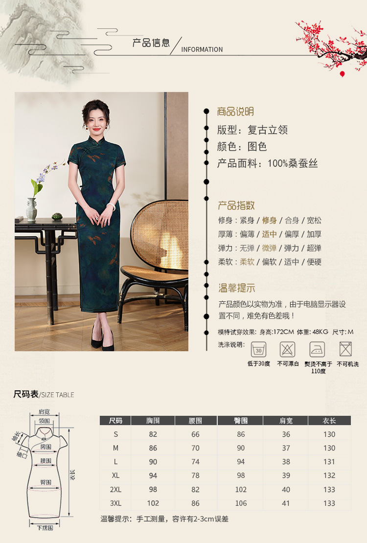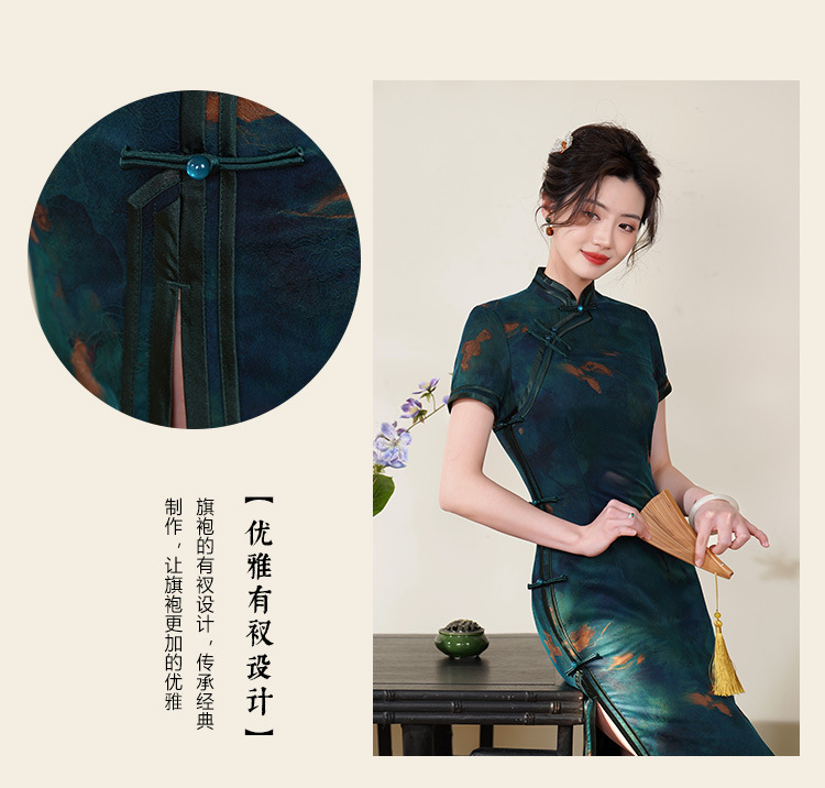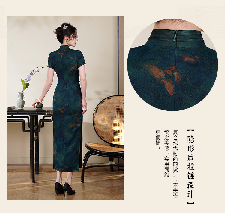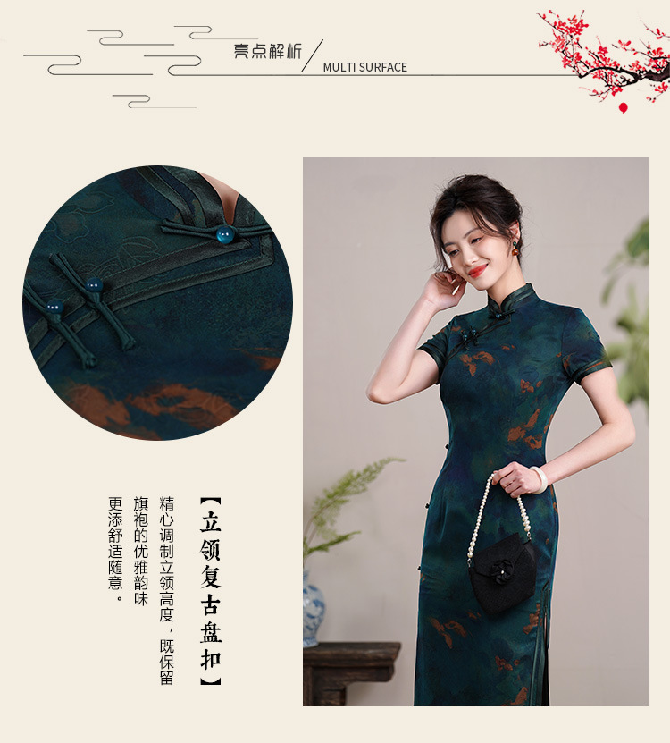 QX1427真丝旗袍长款2025夏季新款改良桑蚕丝复古时尚少女中国风香云纱
