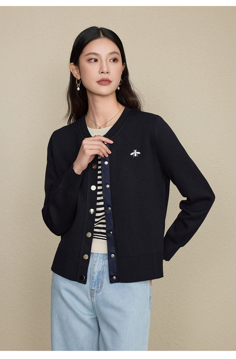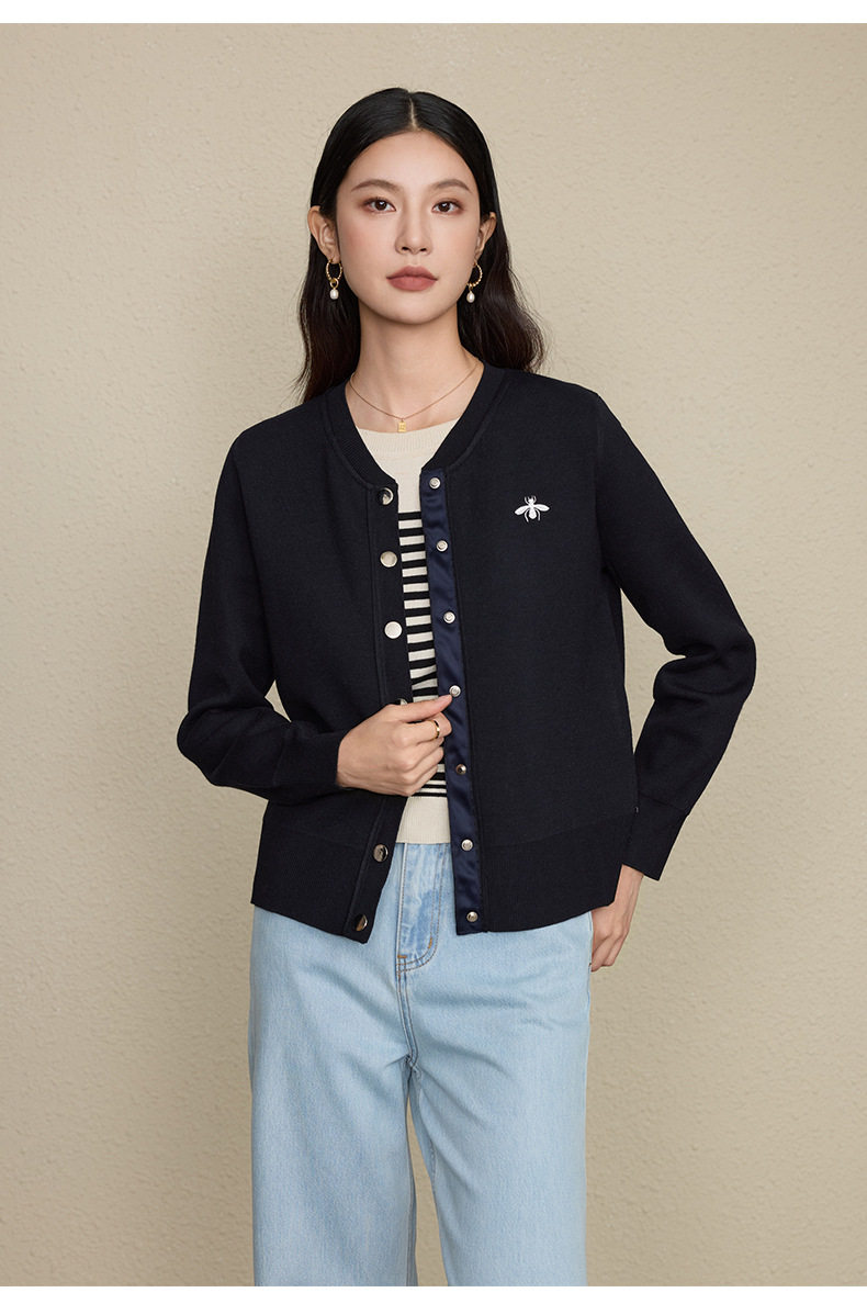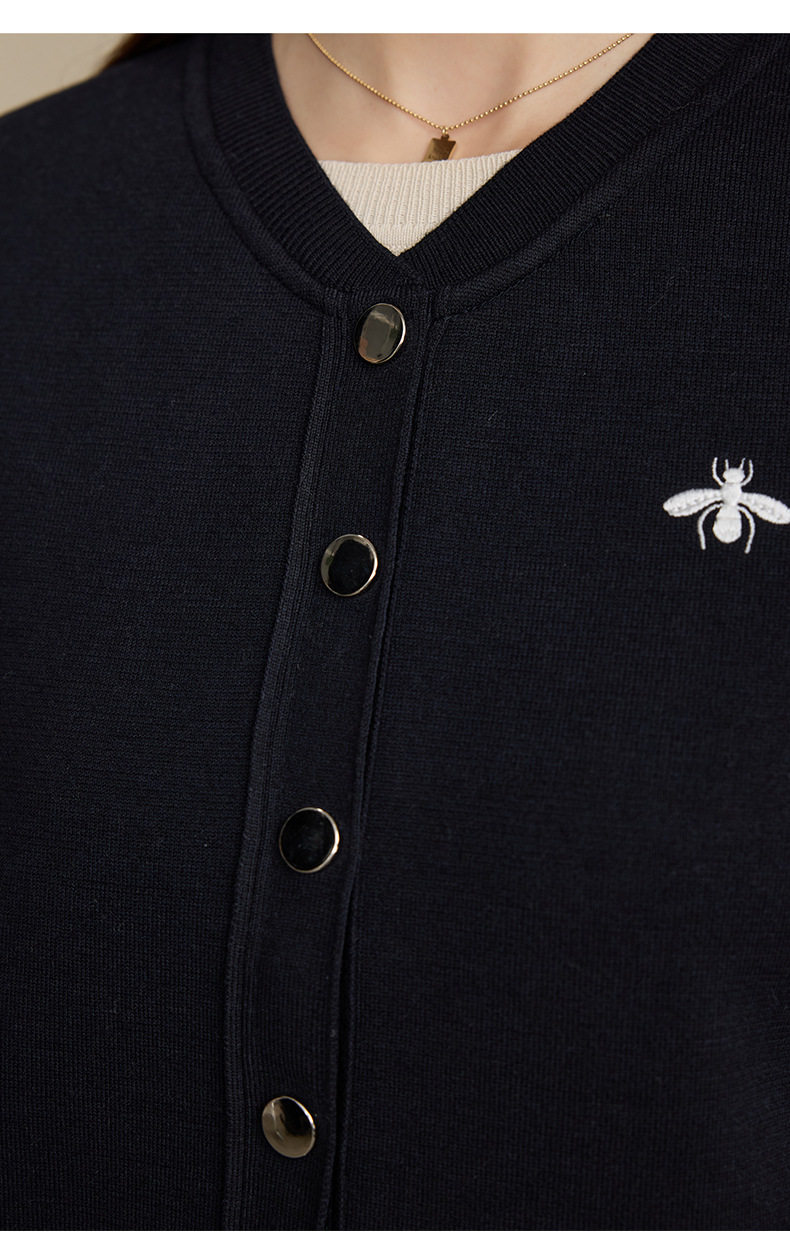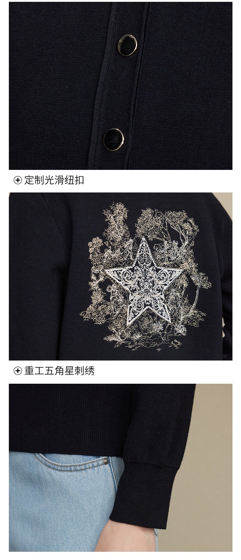 「高货rp」全新升级【铂金会员339/天猫459/差价120】(13449)洛诗琳2025秋冬新款重工小蜜蜂五角星刺绣棒球领休闲针织开衫