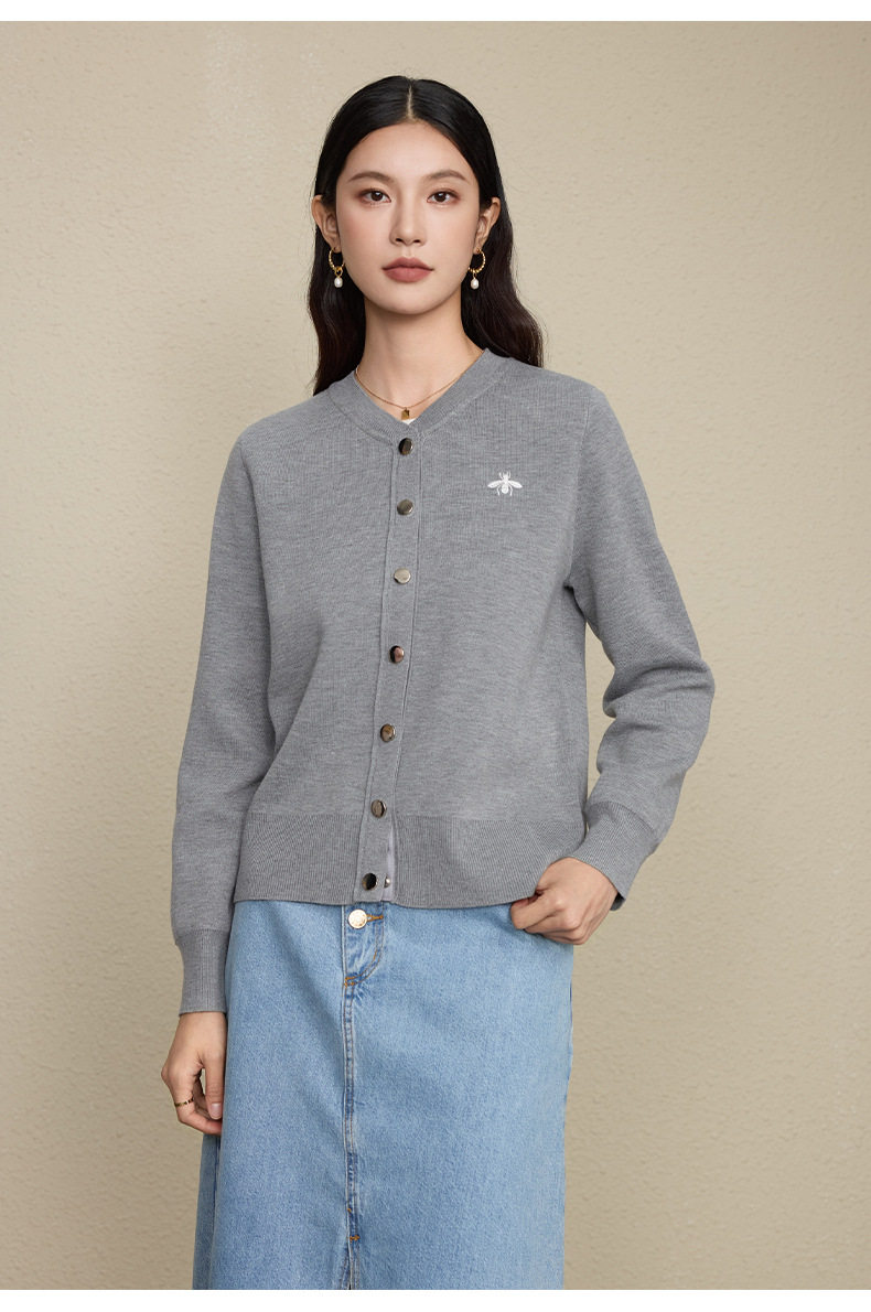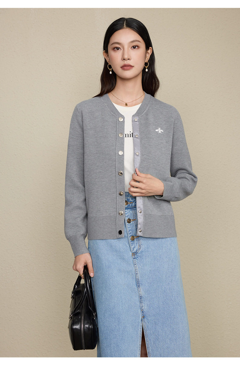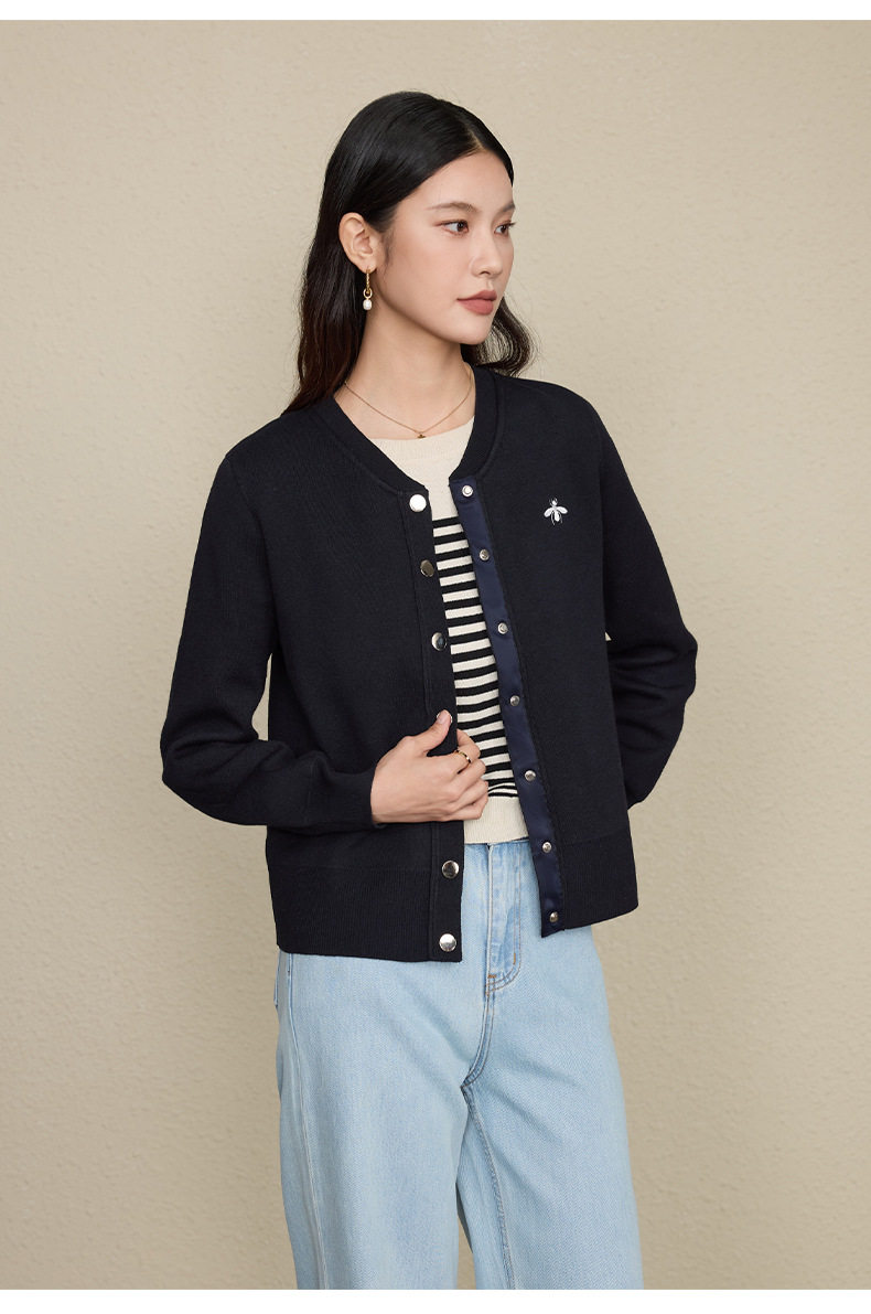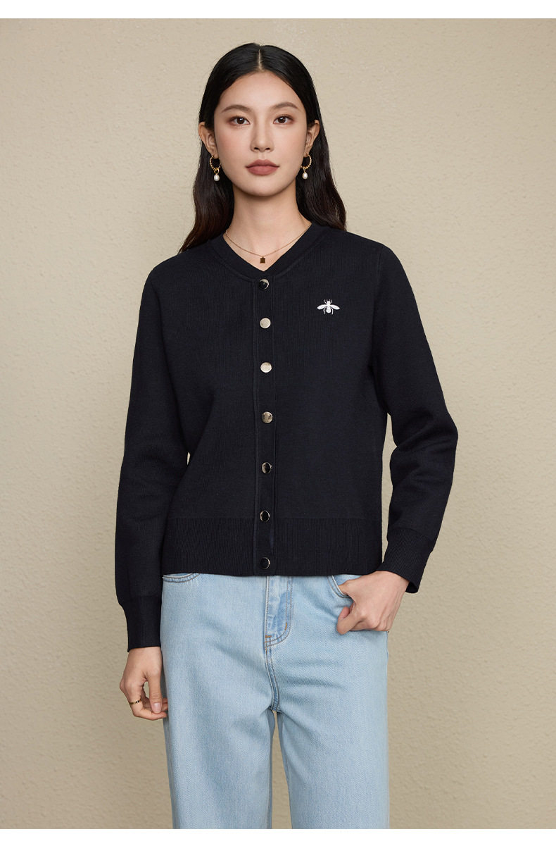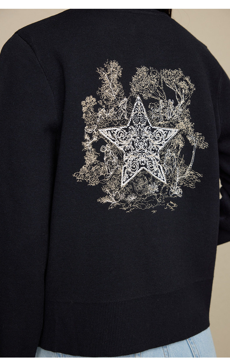 「高货rp」全新升级【铂金会员339/天猫459/差价120】(13449)洛诗琳2025秋冬新款重工小蜜蜂五角星刺绣棒球领休闲针织开衫