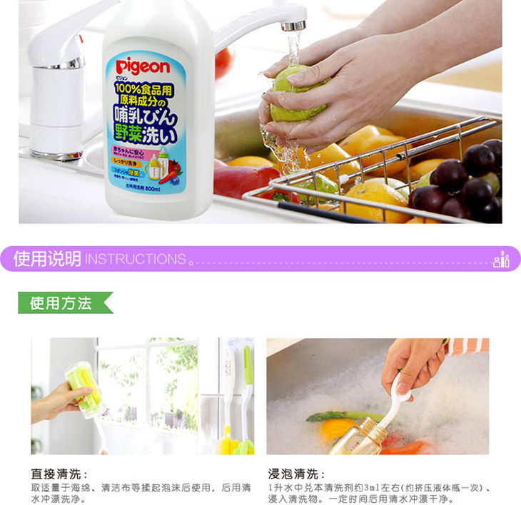 Pigeon贝亲婴儿奶瓶清洗液宝宝宝宝果蔬清洗剂800ml
