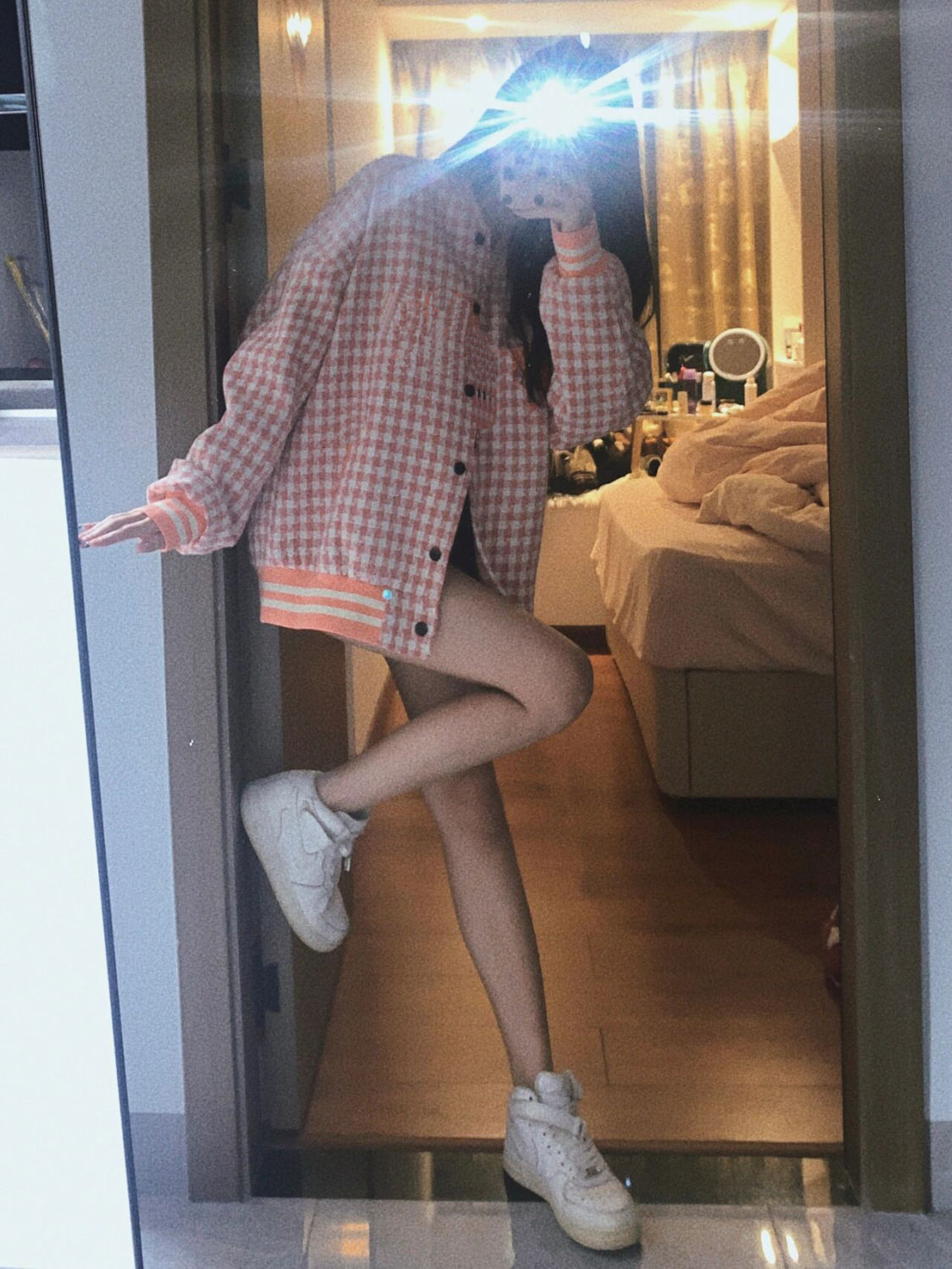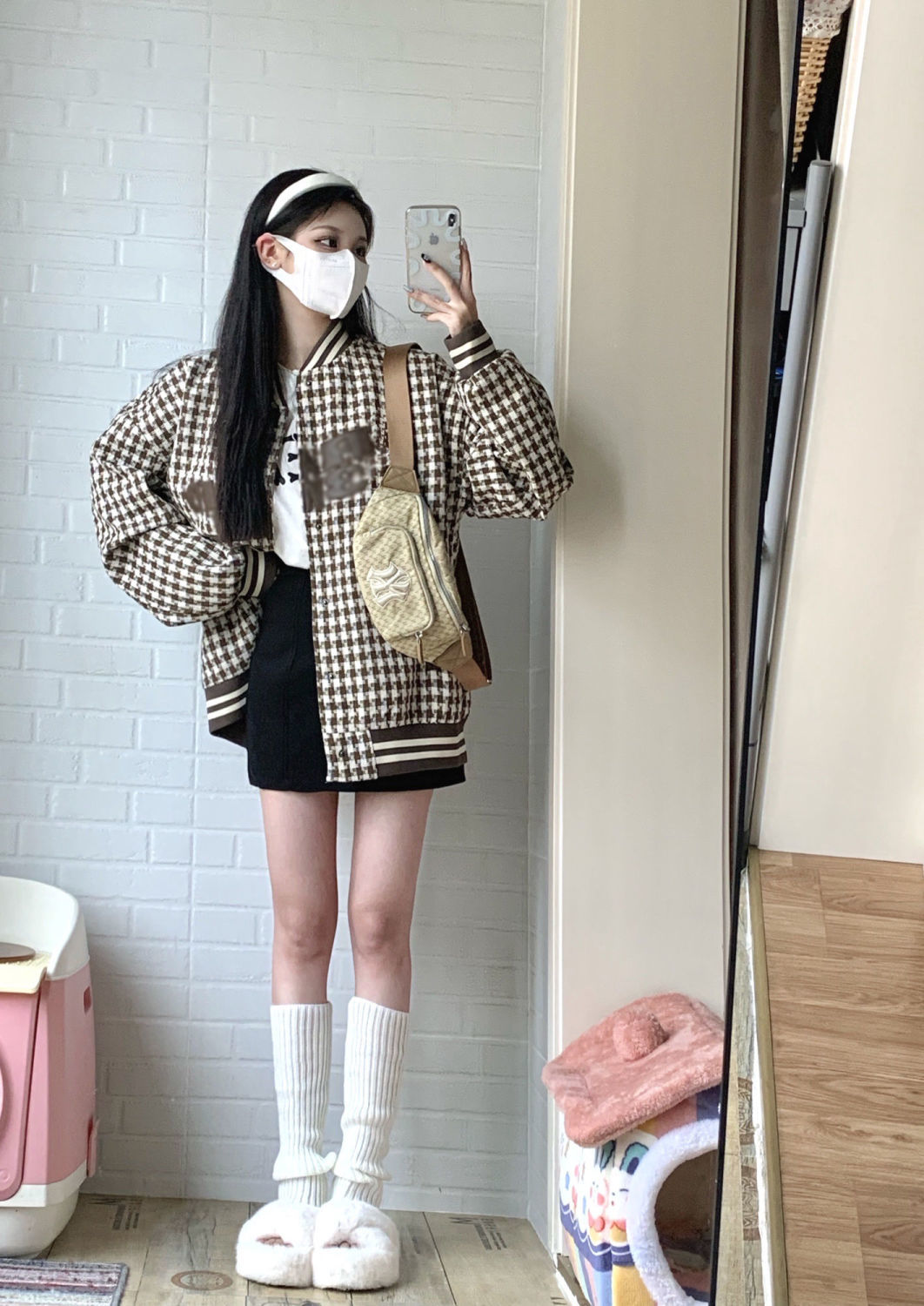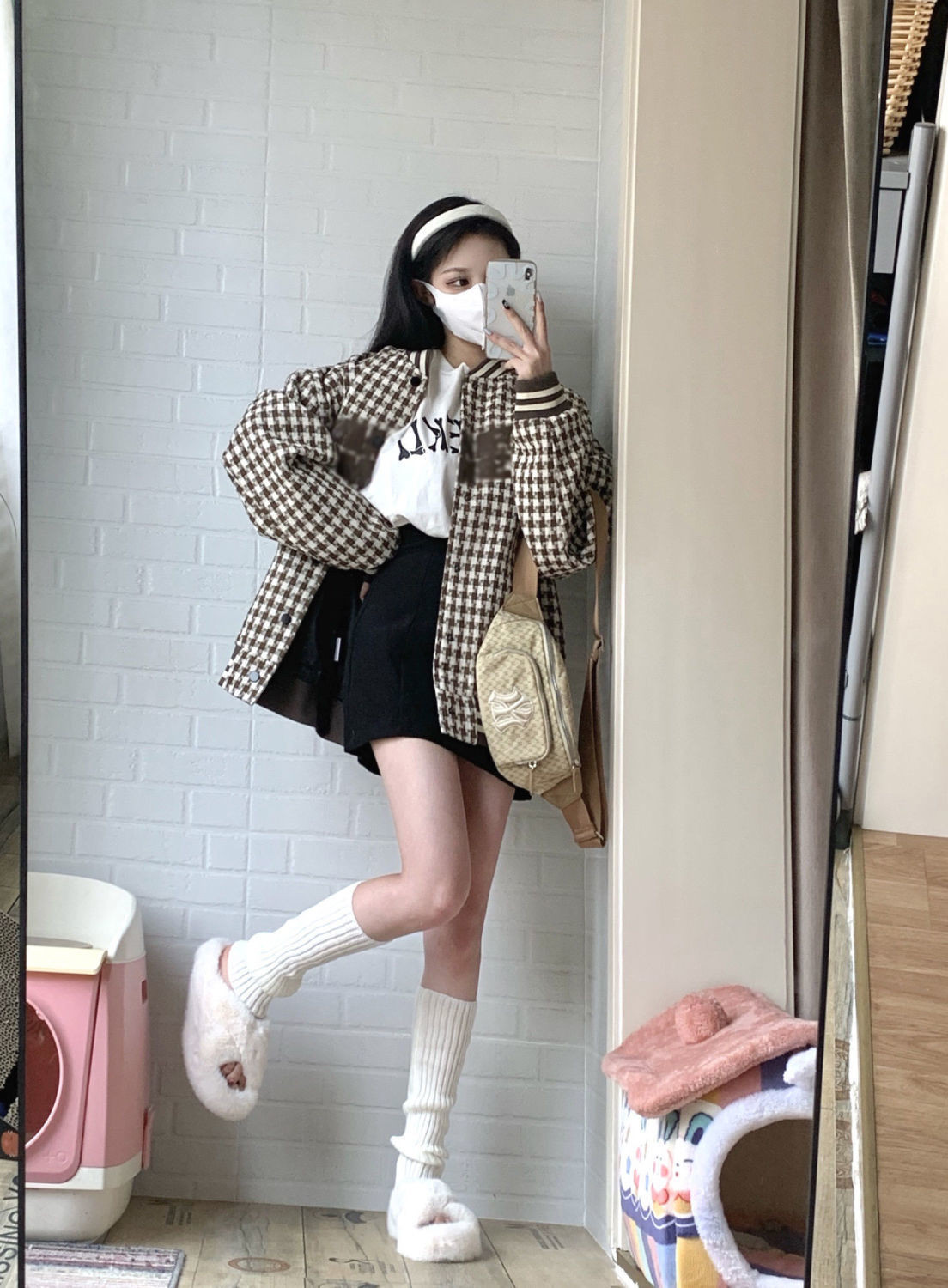 粉色软糯小香风外套女小个子别致上衣2022春季潮牌格子宽松棒球服