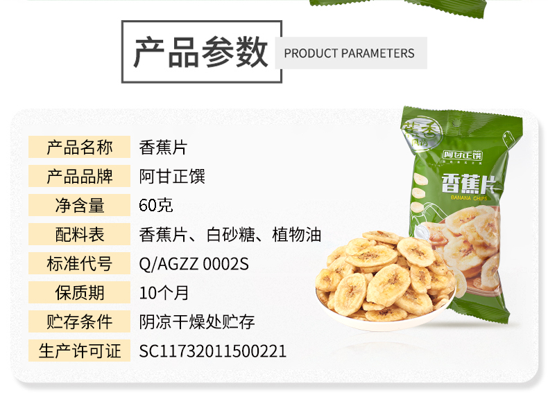 【甄选】阿甘正馔 香蕉片 香甜饱满 酥脆可口 配料干净 60g*8袋