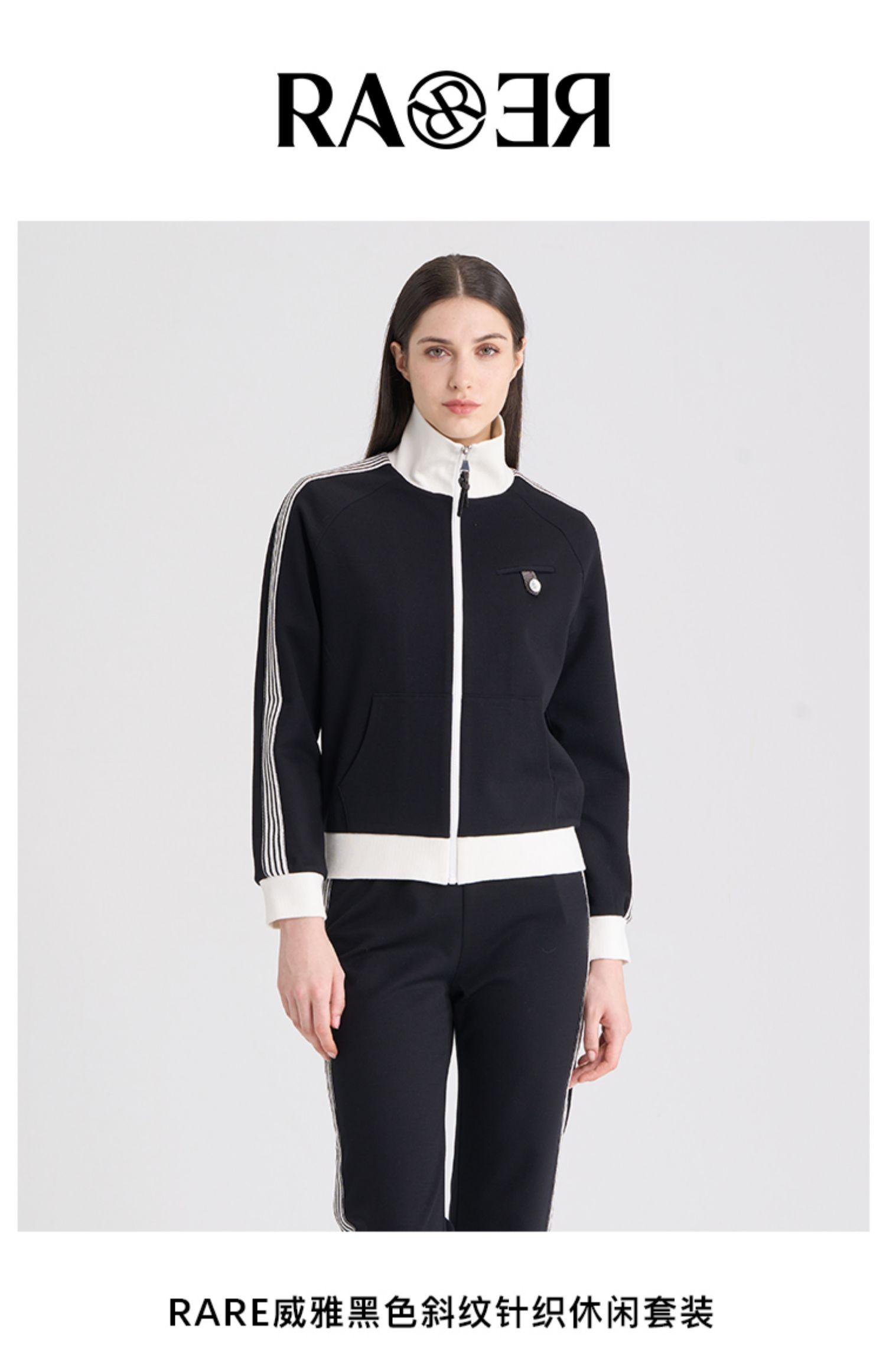 威雅/RARE 羊毛休闲外套直筒运动裤黑色女士休闲套装