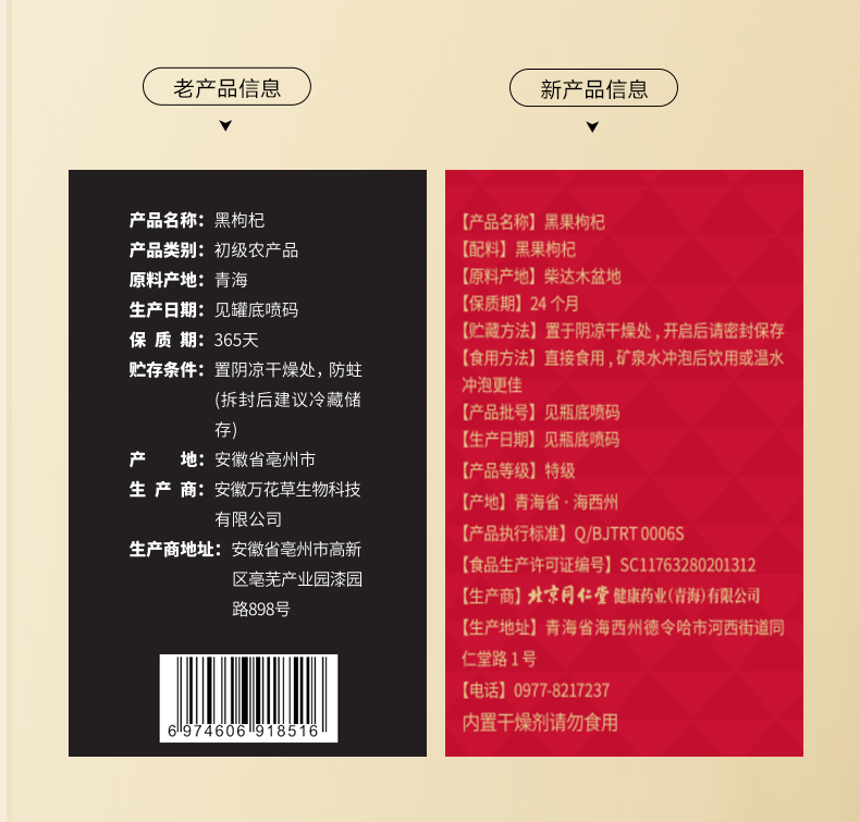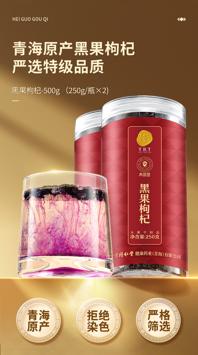 【正宗同仁堂品牌】北京同仁堂 黑果枸杞-500g(250gX2瓶)果粒饱满 SY