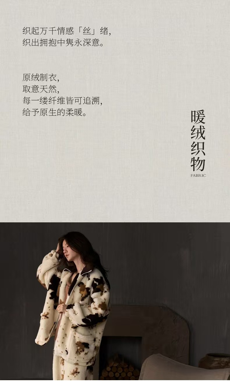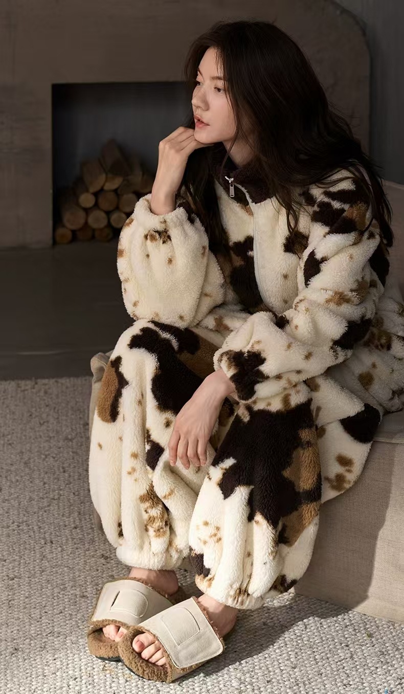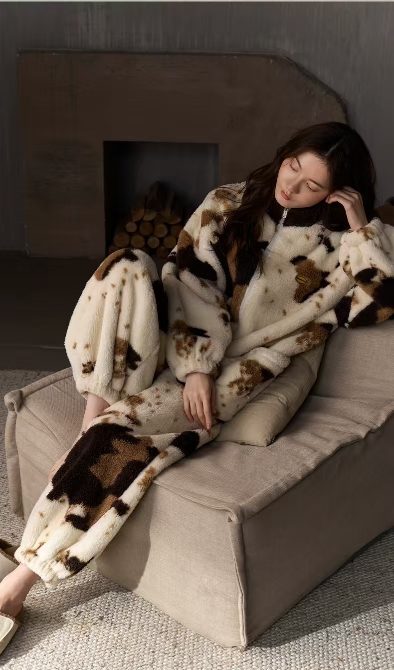 雀说 新款印花睡衣女秋冬新款家居服珊瑚绒加厚加绒拉链保暖衣套装ALW25008