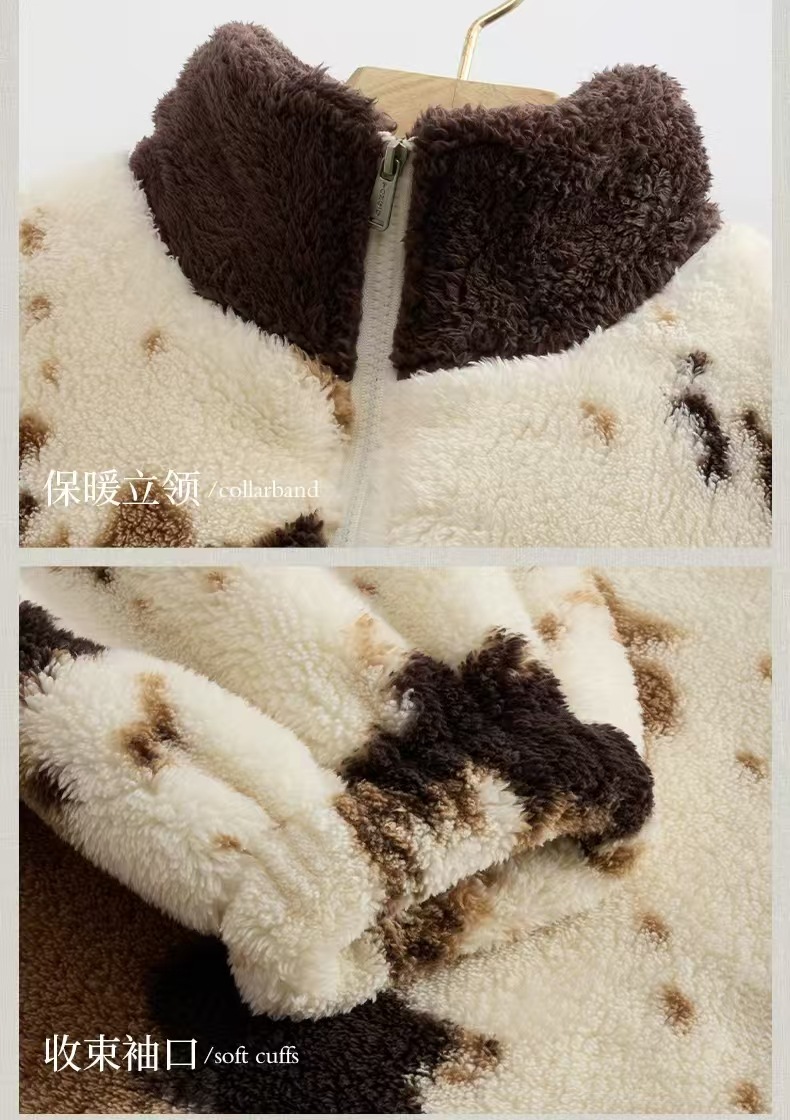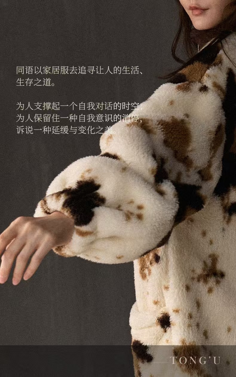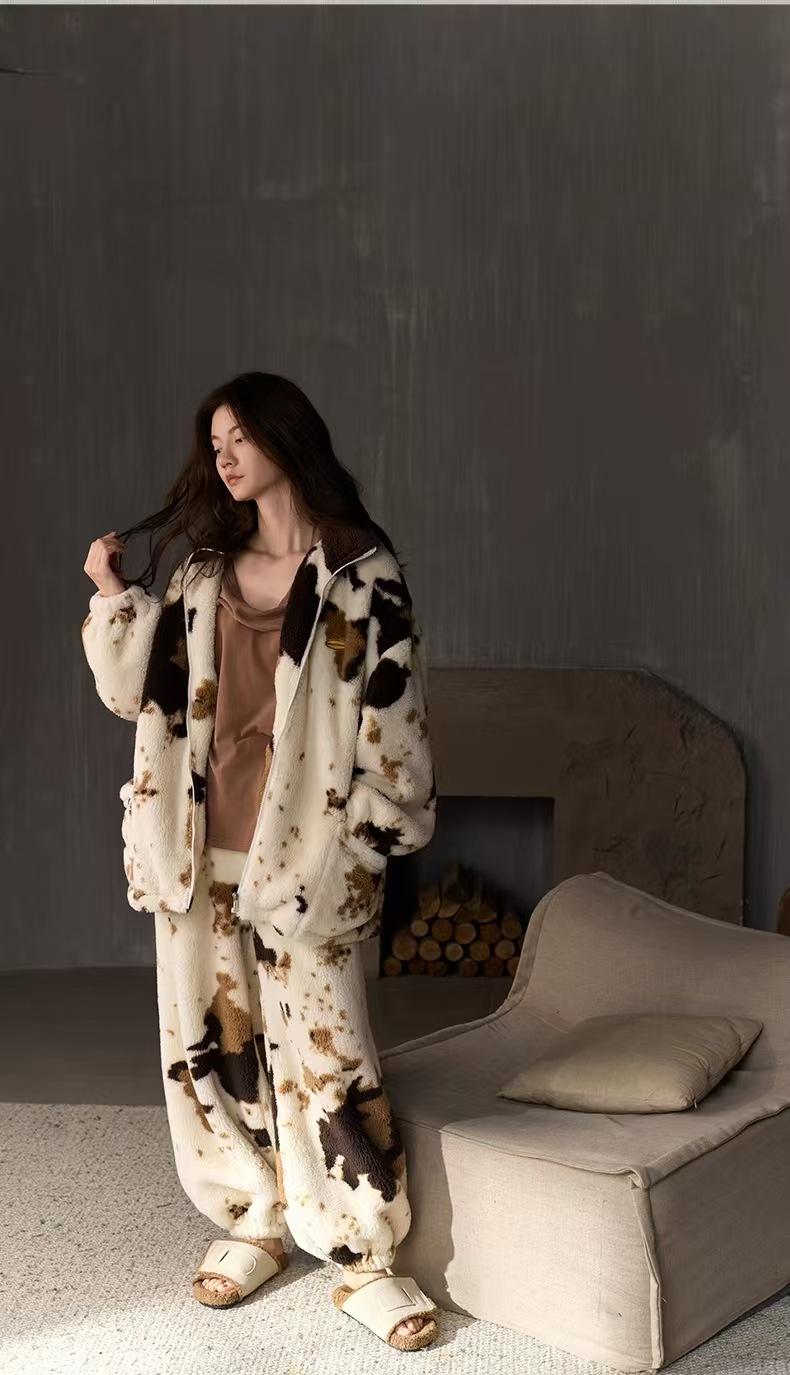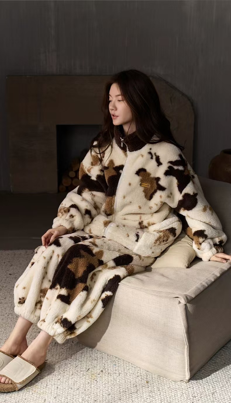 雀说 新款印花睡衣女秋冬新款家居服珊瑚绒加厚加绒拉链保暖衣套装ALW25008
