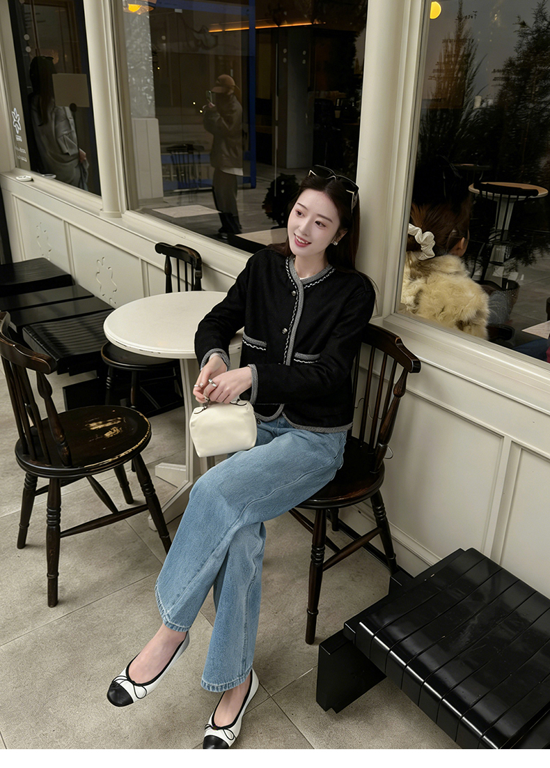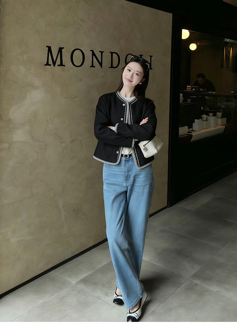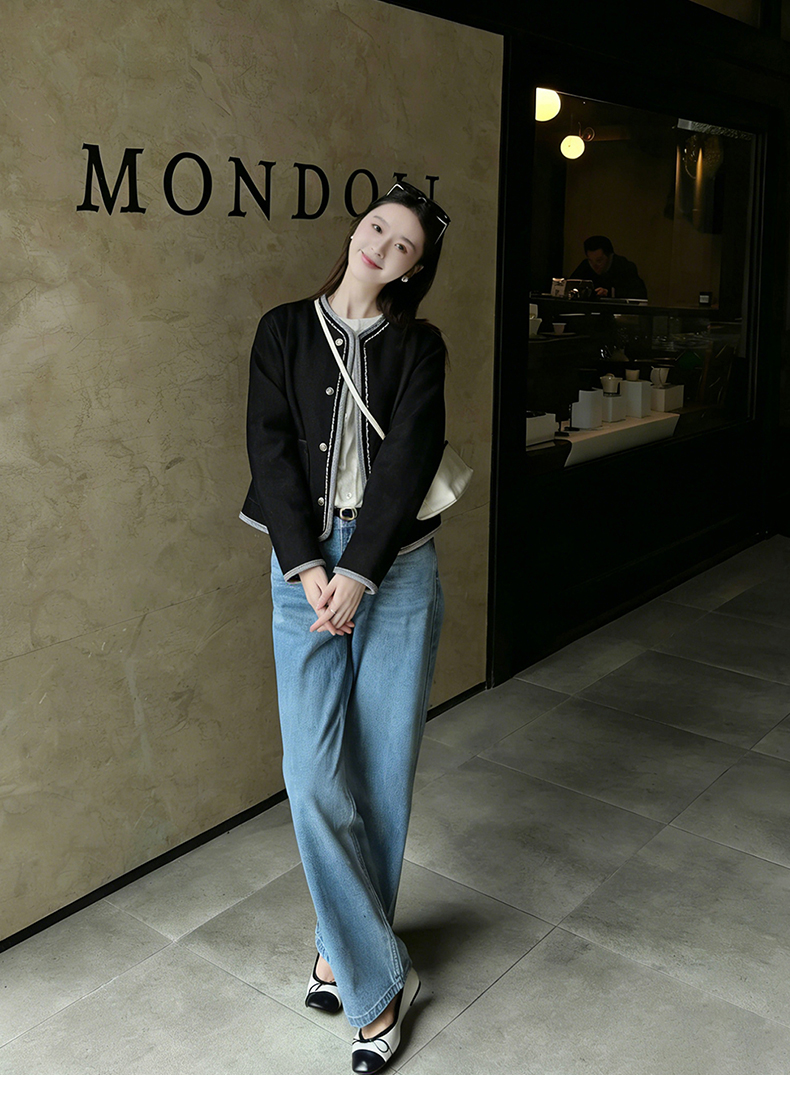 天猫同步【100棉!千金感小香风】拉夏贝尔/La Chapelle挺括有型~复古圆领撞色边饰气质短款上衣外套女春季