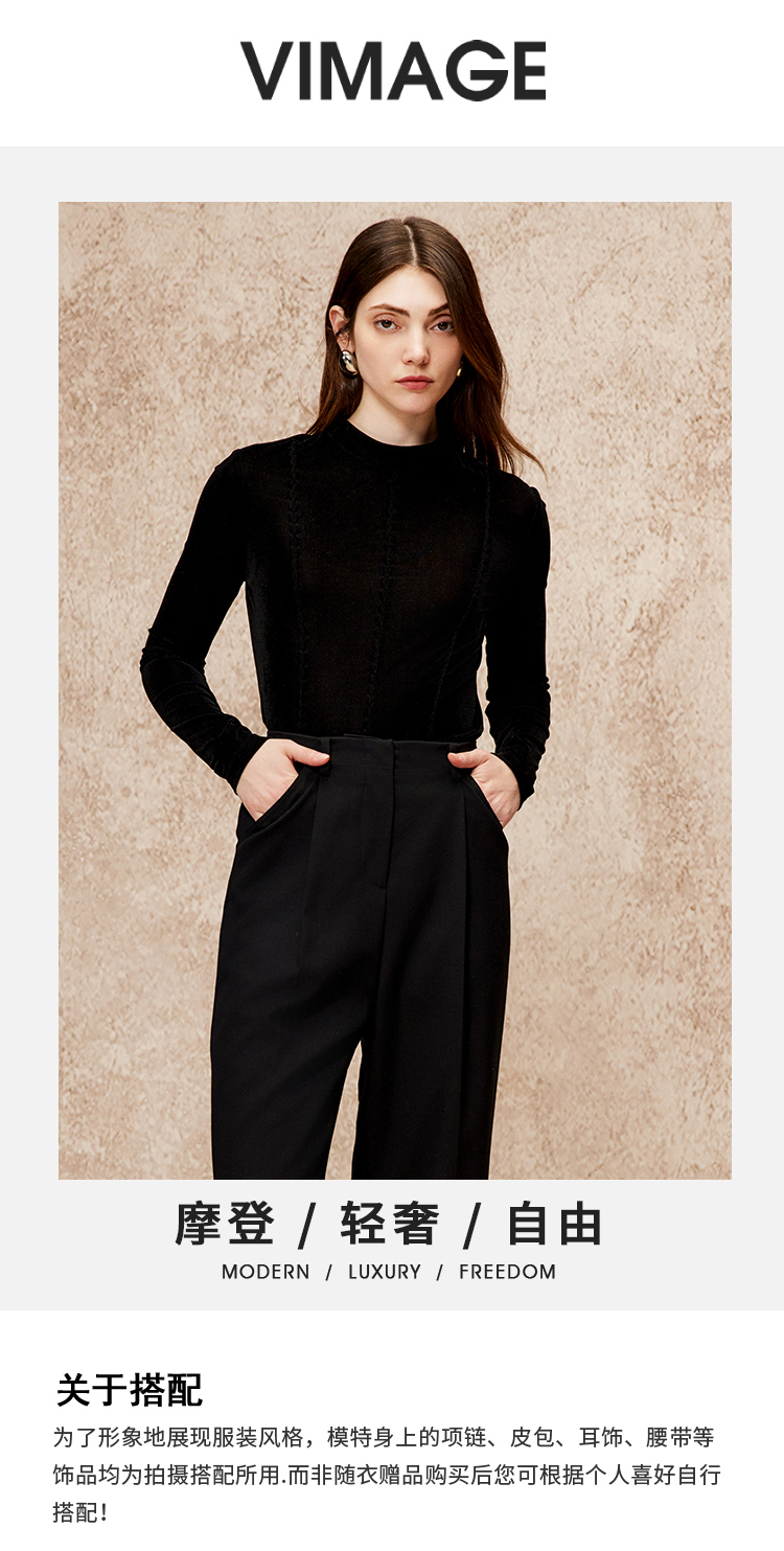 VIMAGE纬漫纪气质立领舒适柔软打底百搭上衣冬新款V2213838