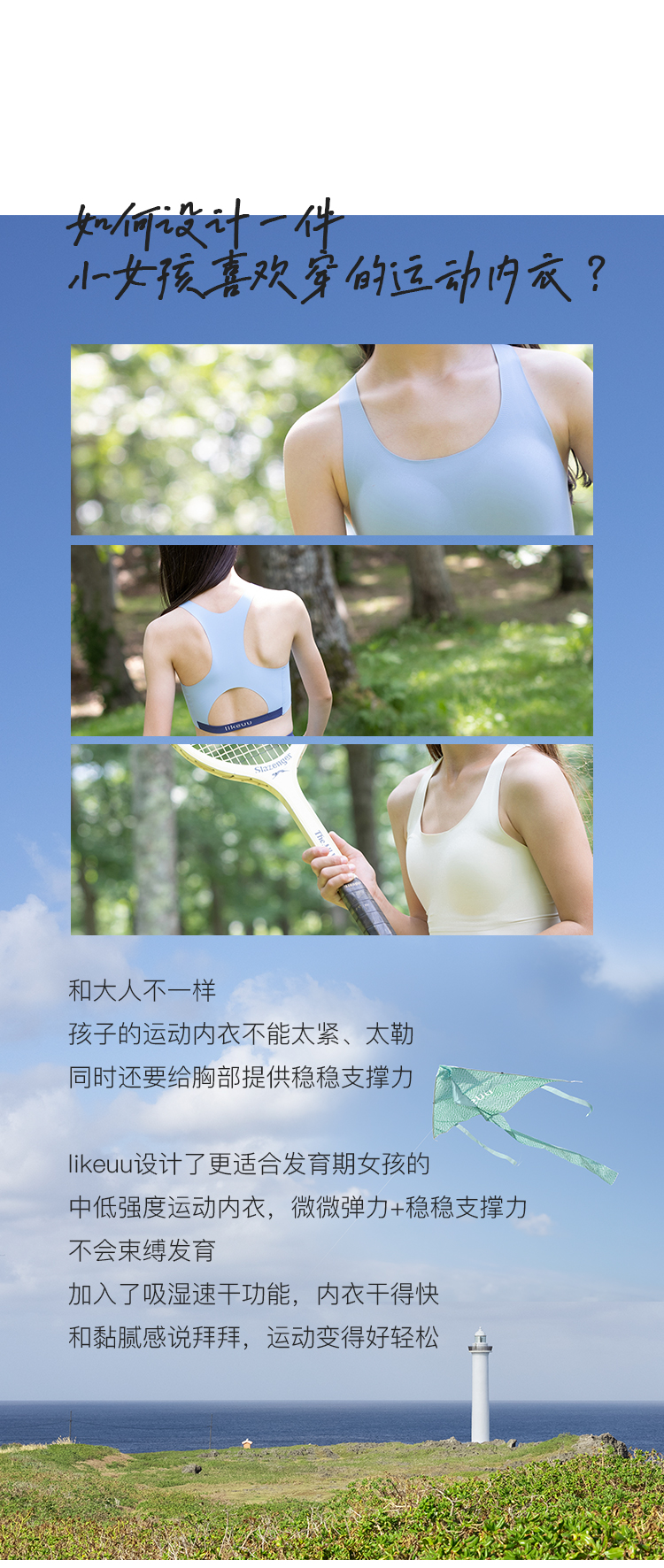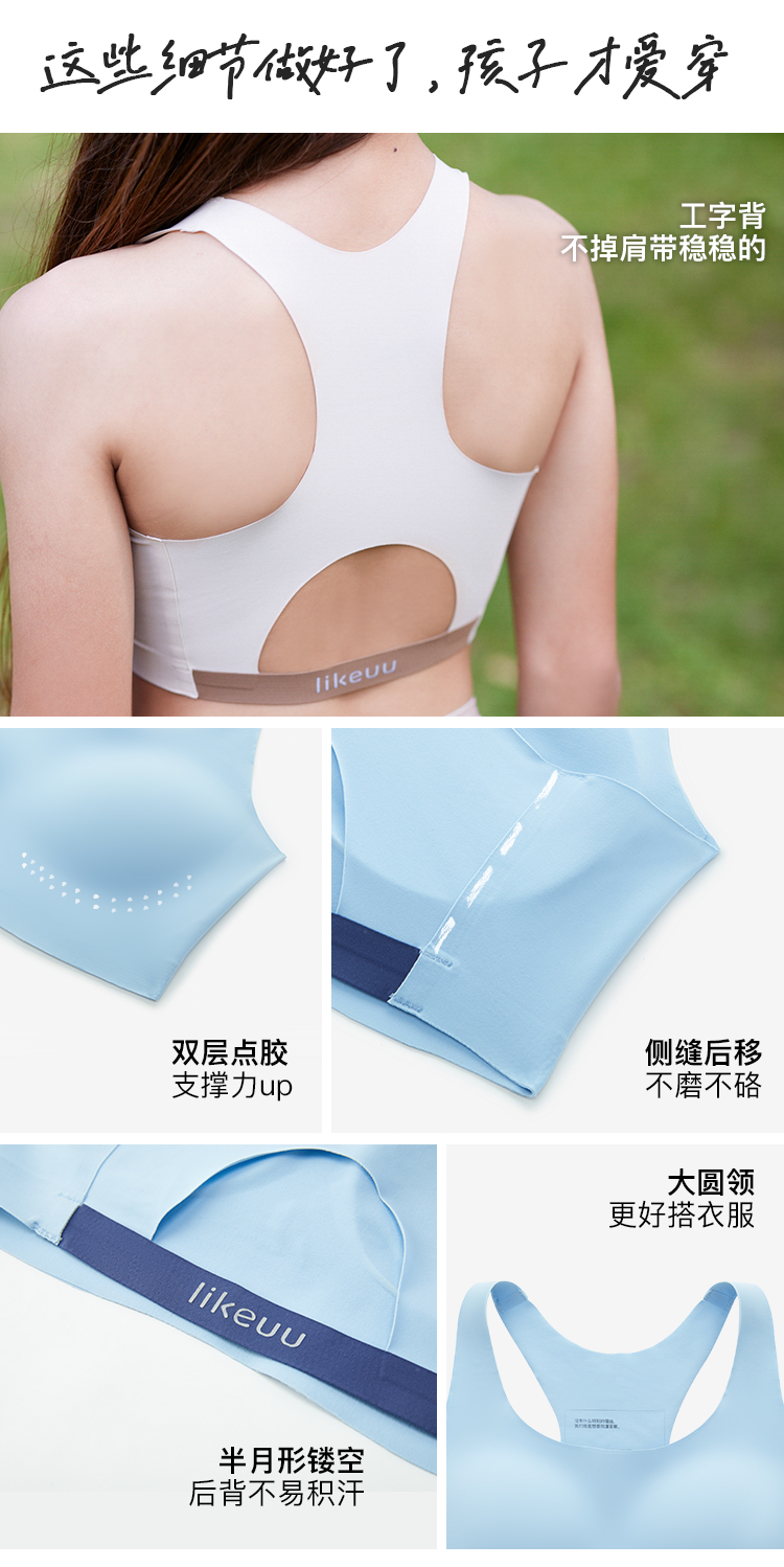 【限时特惠】likeuu少女发育期自适应超柔云感运动工字背女童内衣