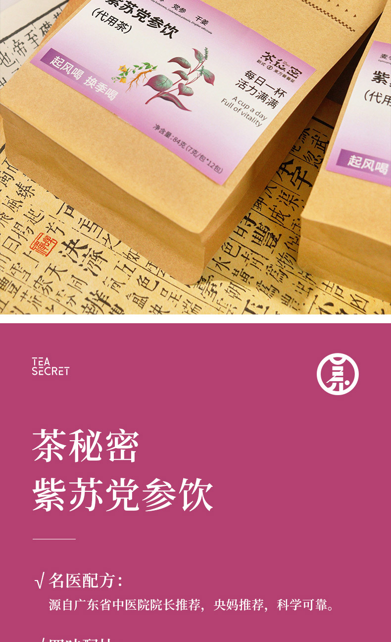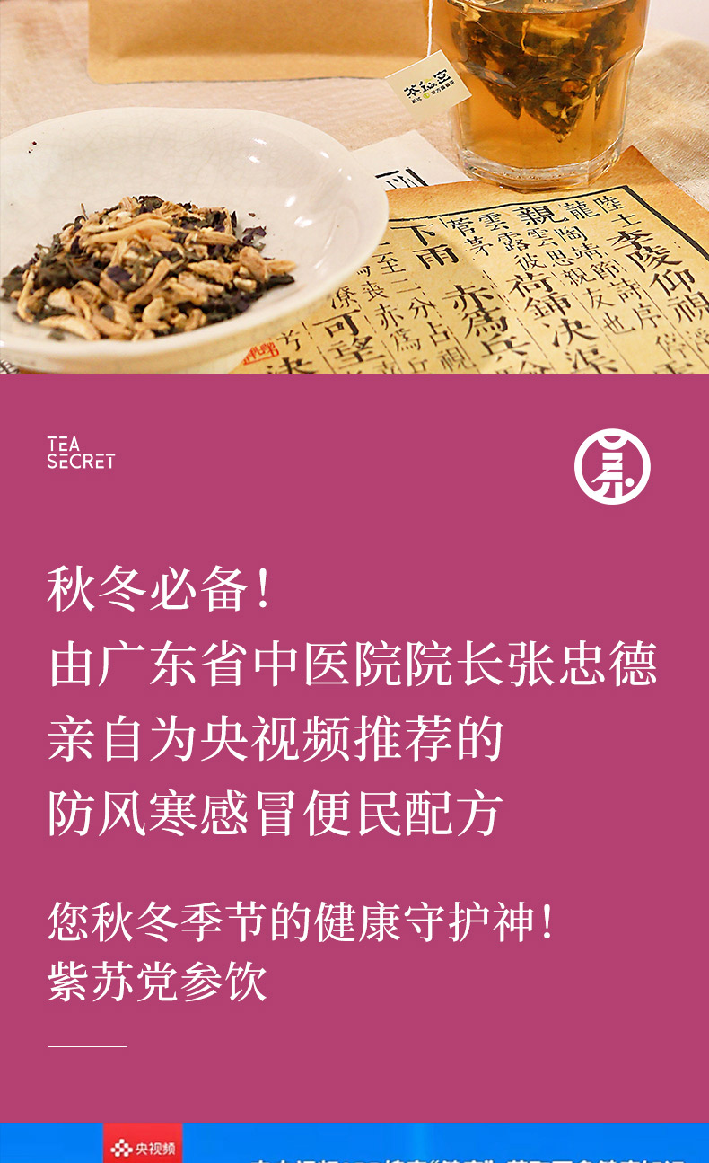茶秘密·紫苏党参饮|广东省中医院院长张忠德亲自为央视频推荐,防风寒感冒便民配方, 八大药性,一味调理