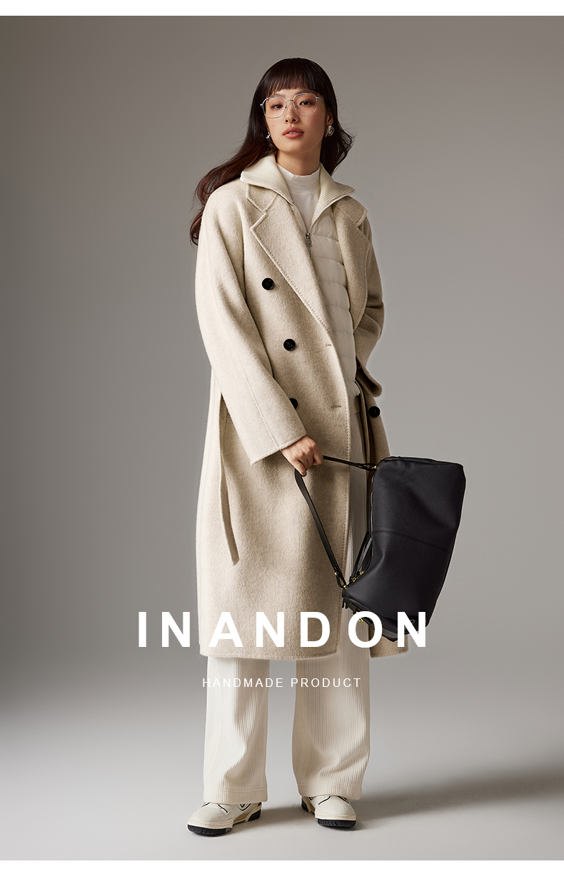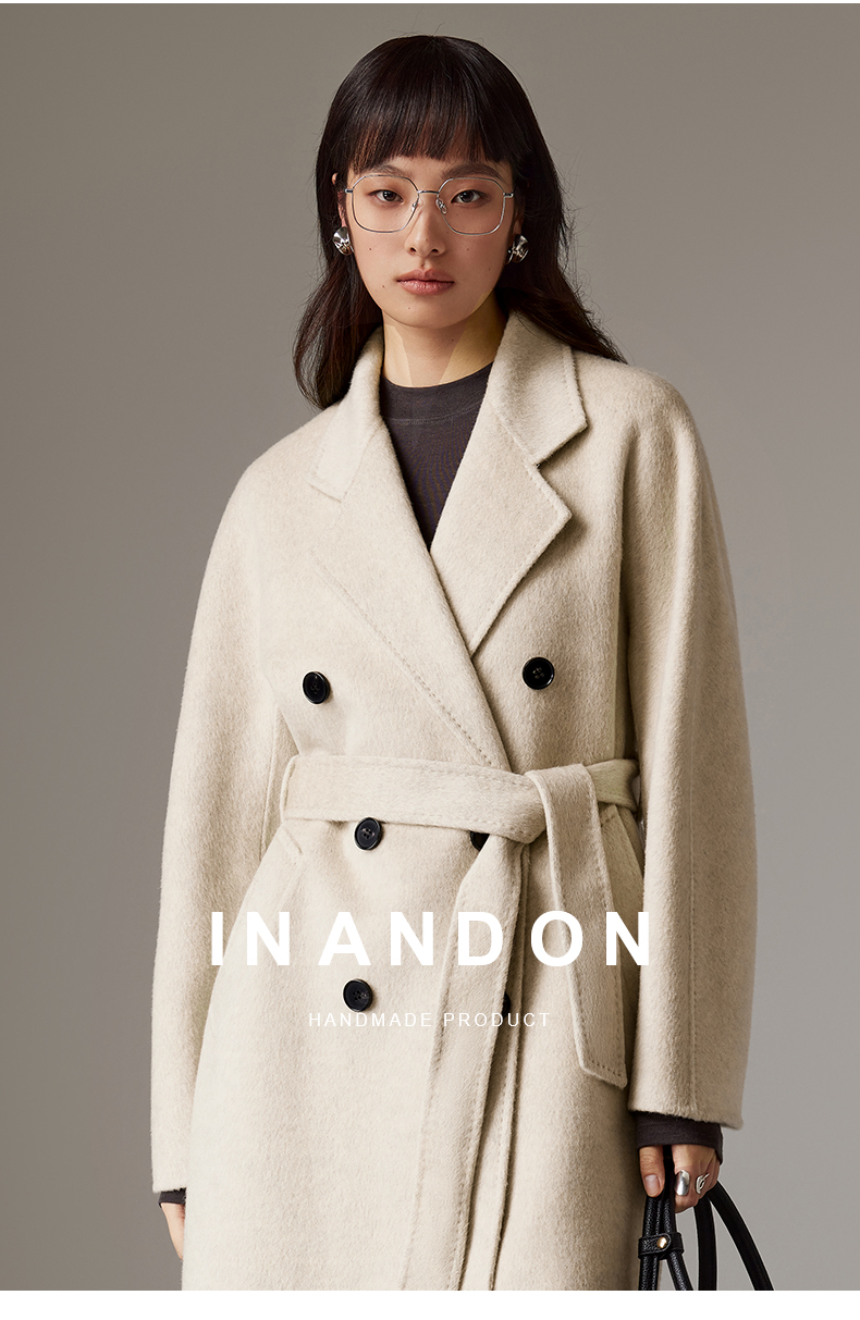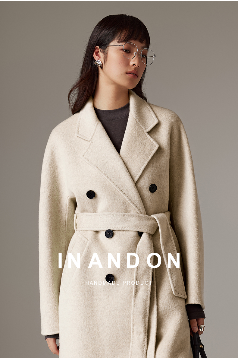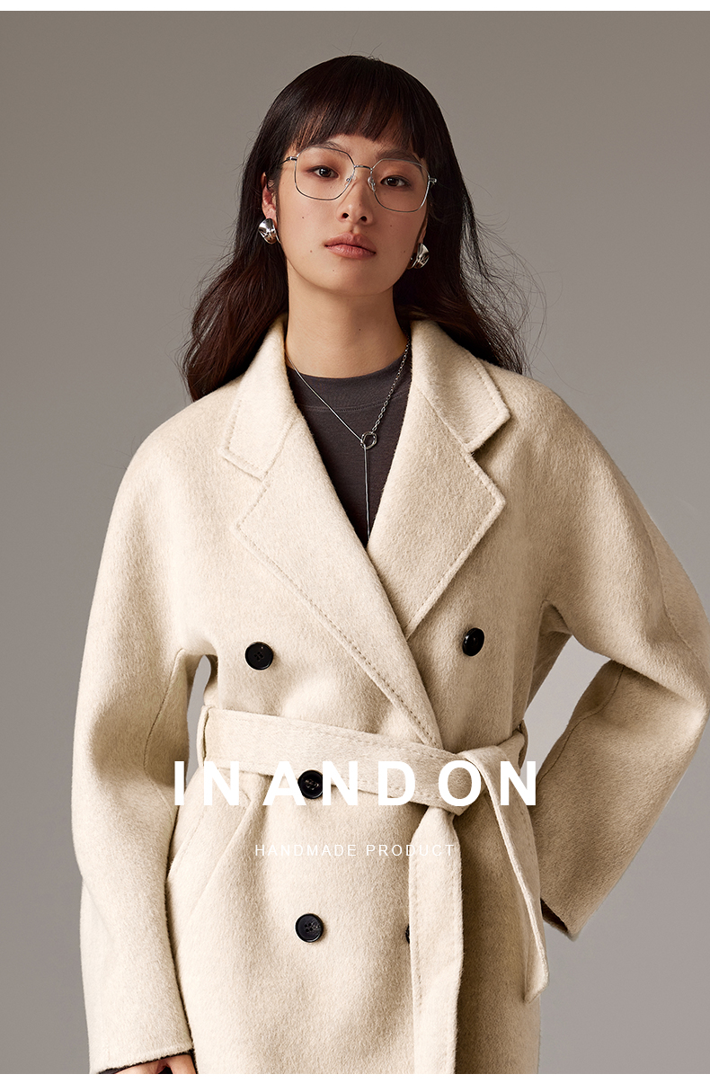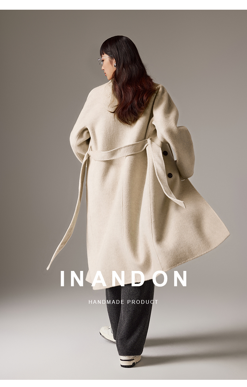 53711IN AND ON 驼绒羊毛手工系带毛呢大衣