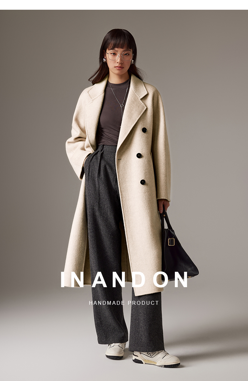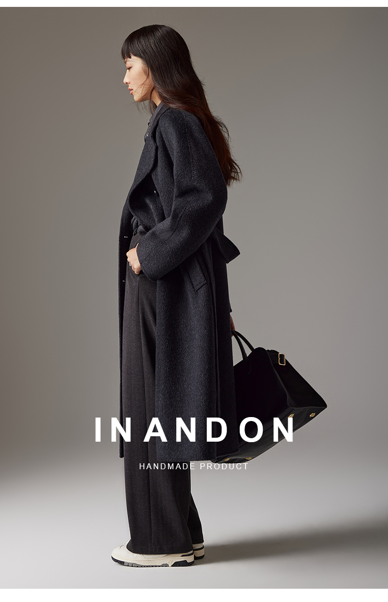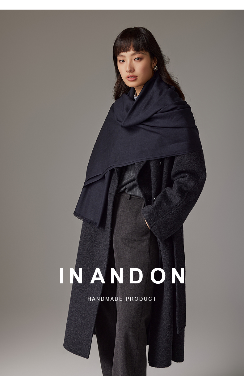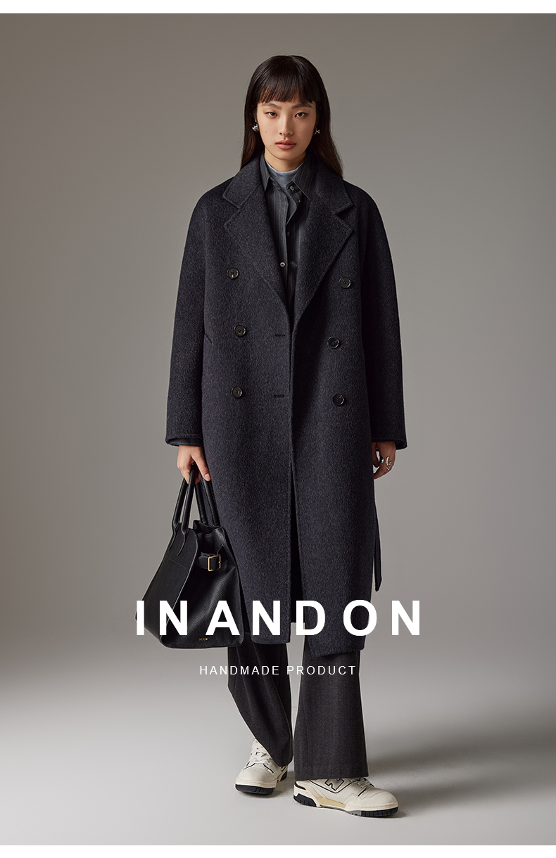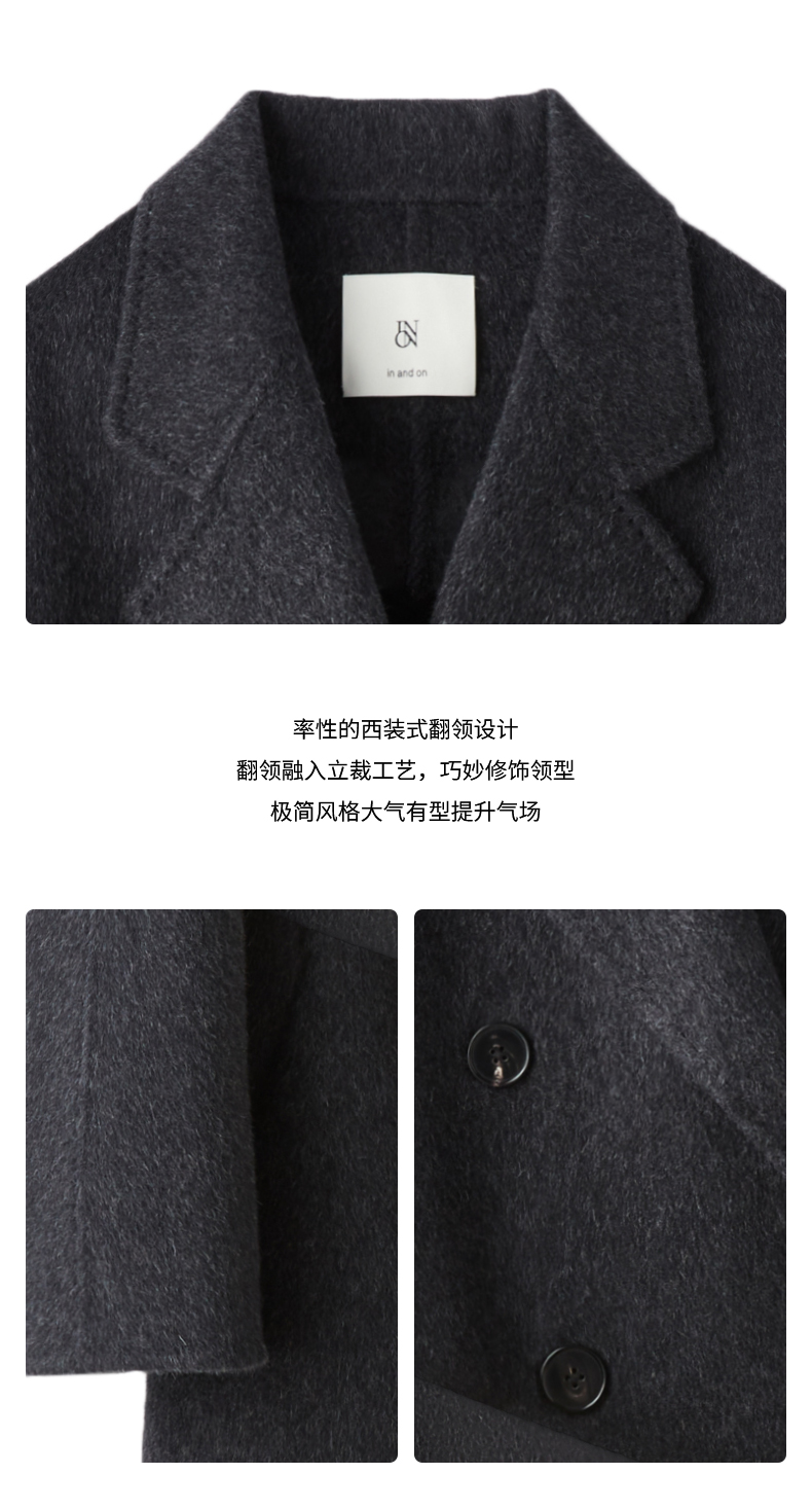 53711IN AND ON 驼绒羊毛手工系带毛呢大衣