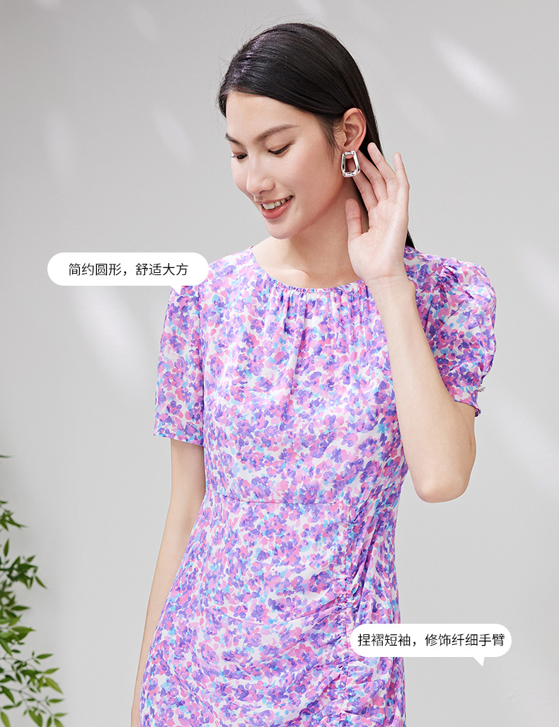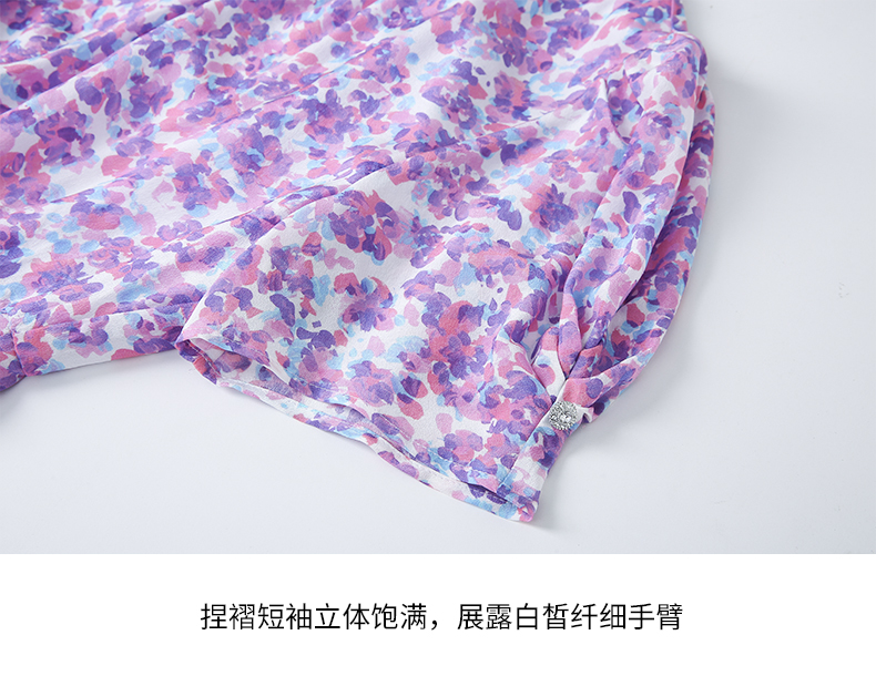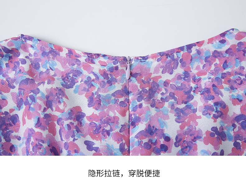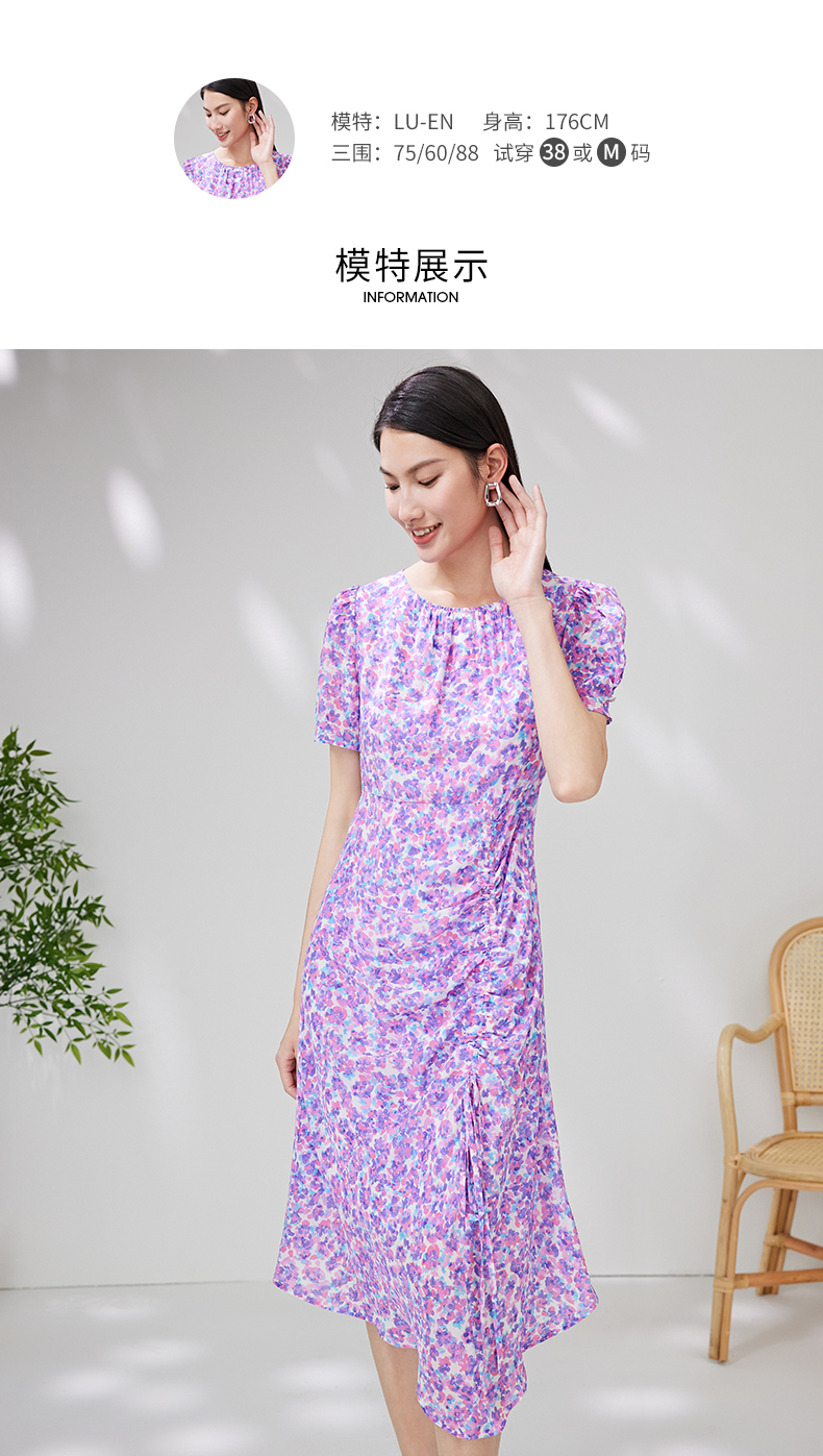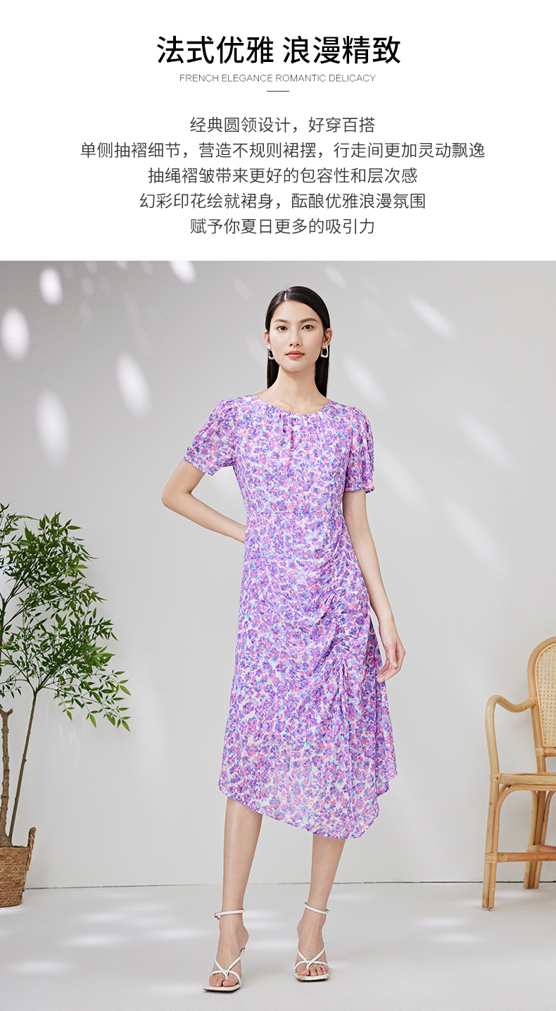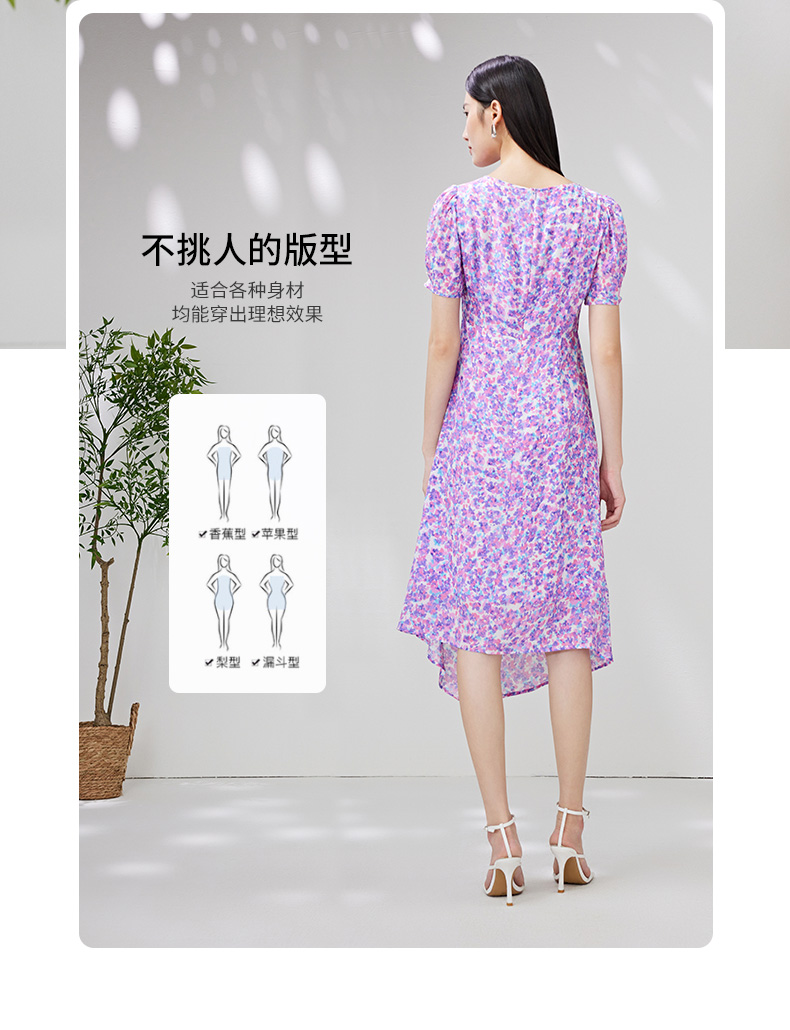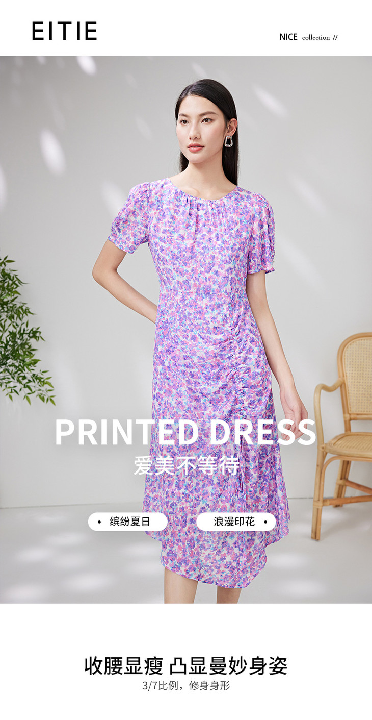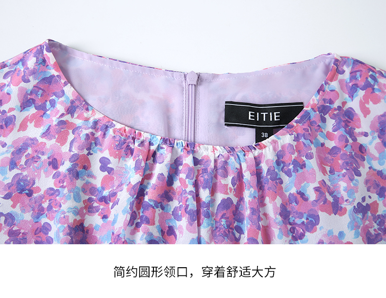 EITIE爱特爱夏款新品100%桑蚕丝优雅显瘦高腰舒适印花连衣裙7007754