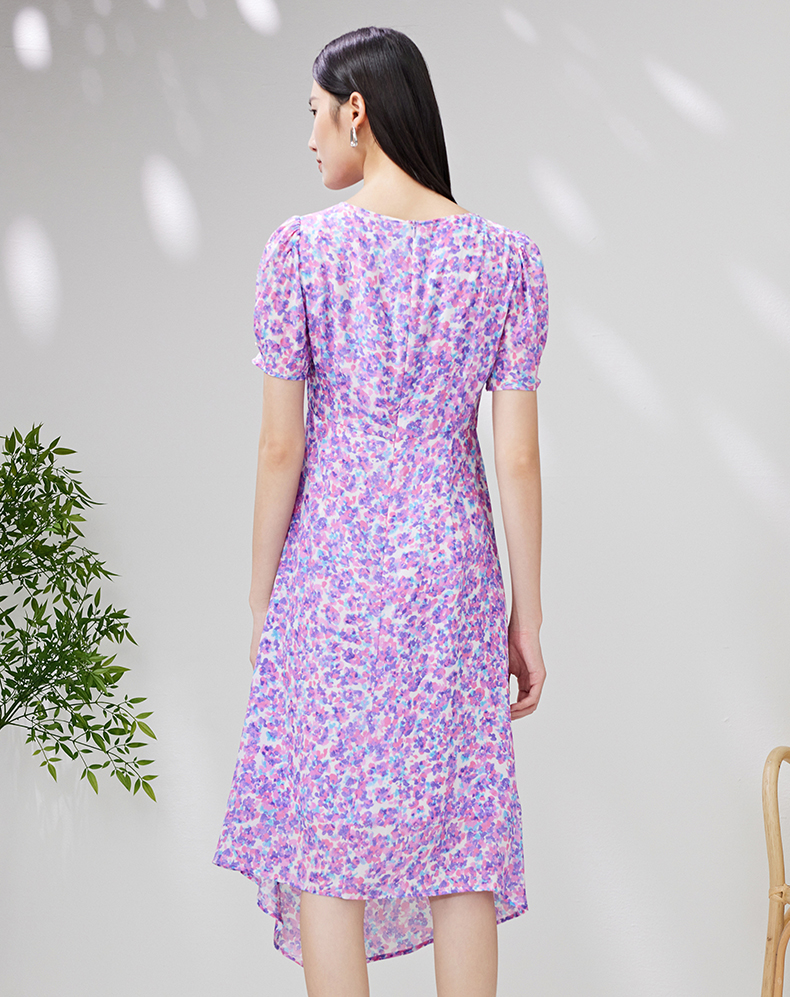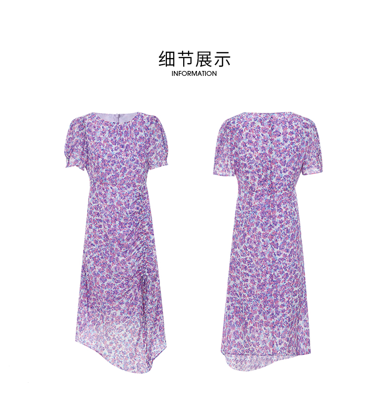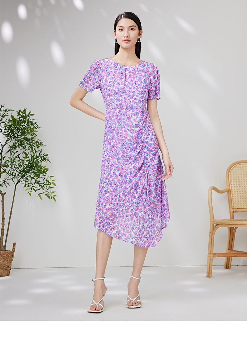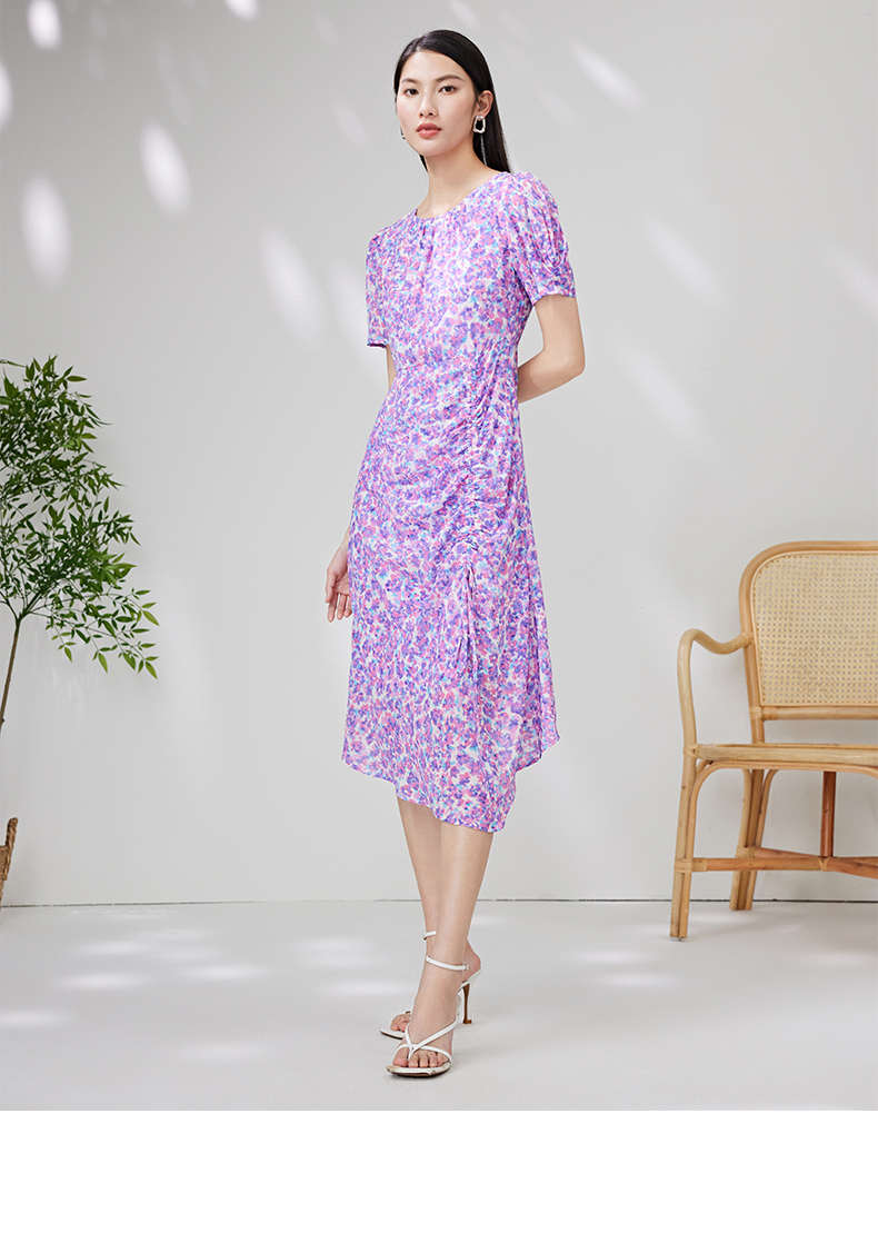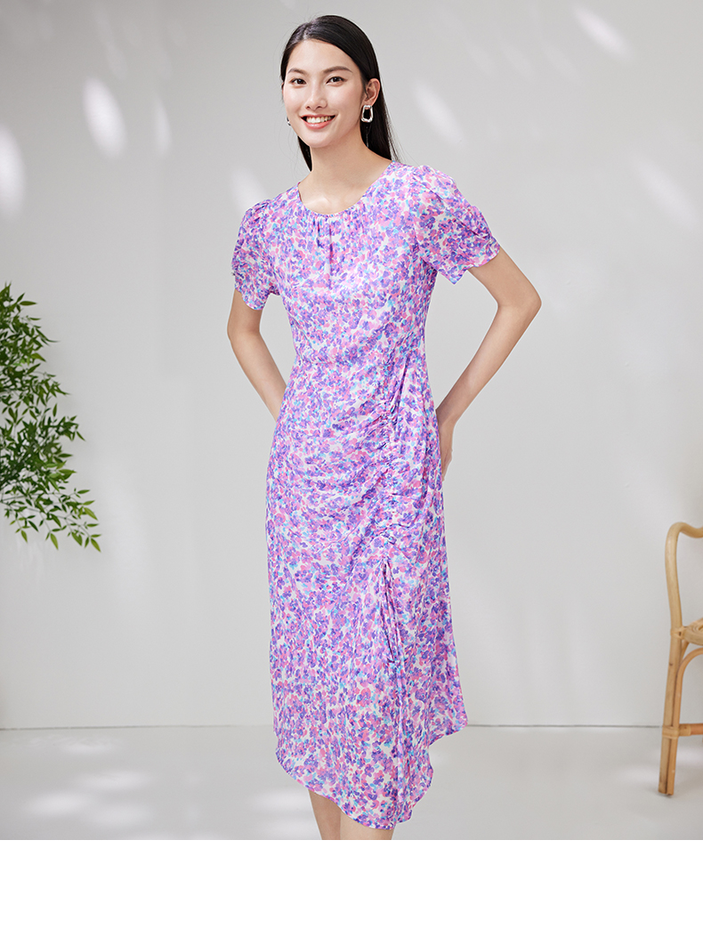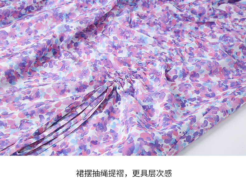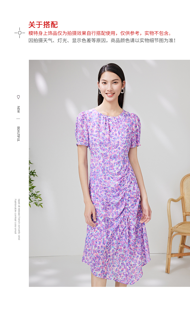 EITIE爱特爱夏款新品100%桑蚕丝优雅显瘦高腰舒适印花连衣裙7007754