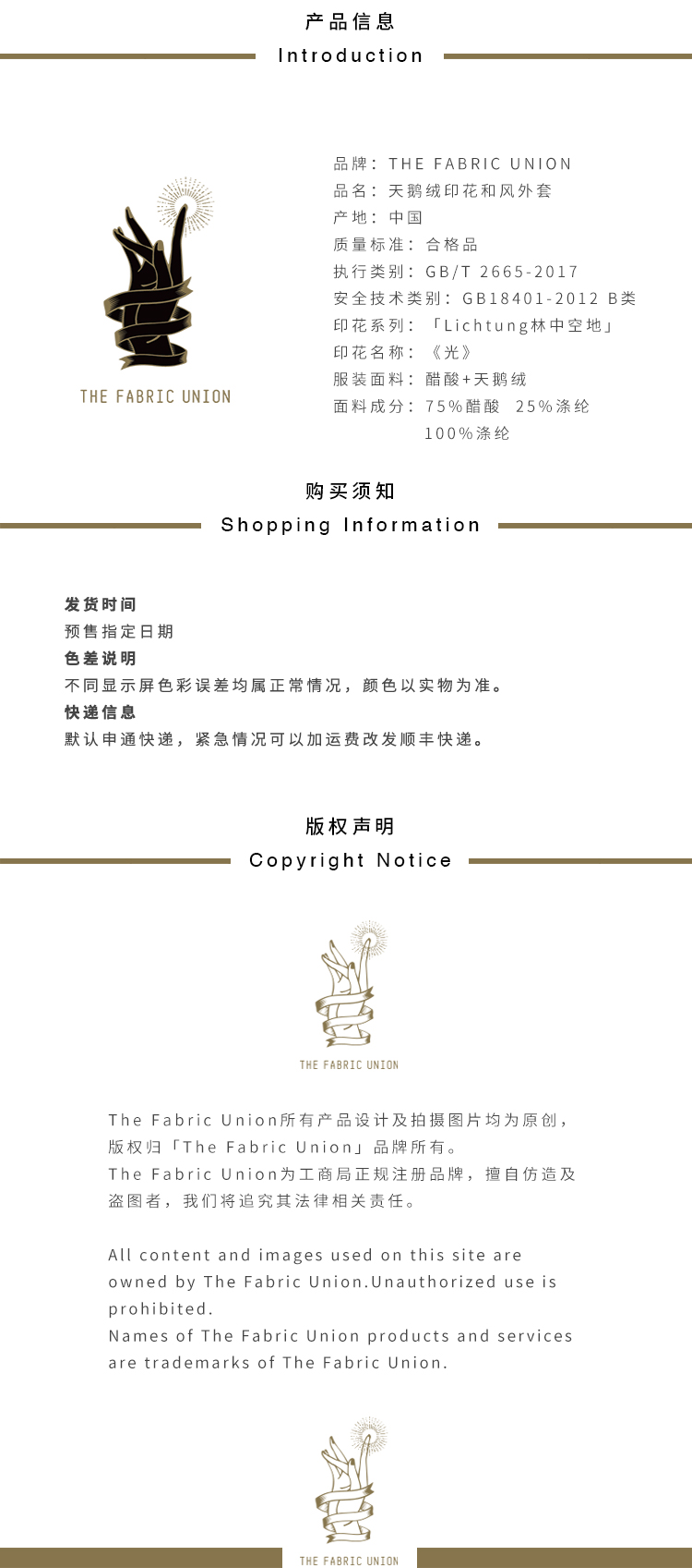 THE FABRIC UNION「Lichtung林中空地」系列天鹅绒印花和风外套