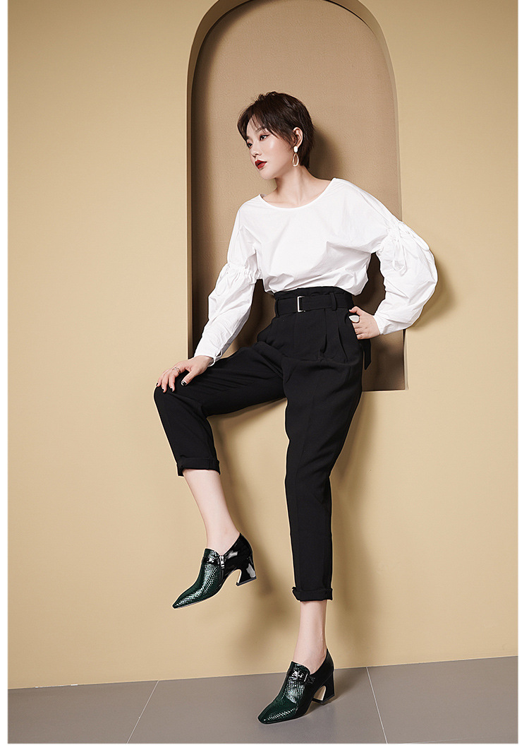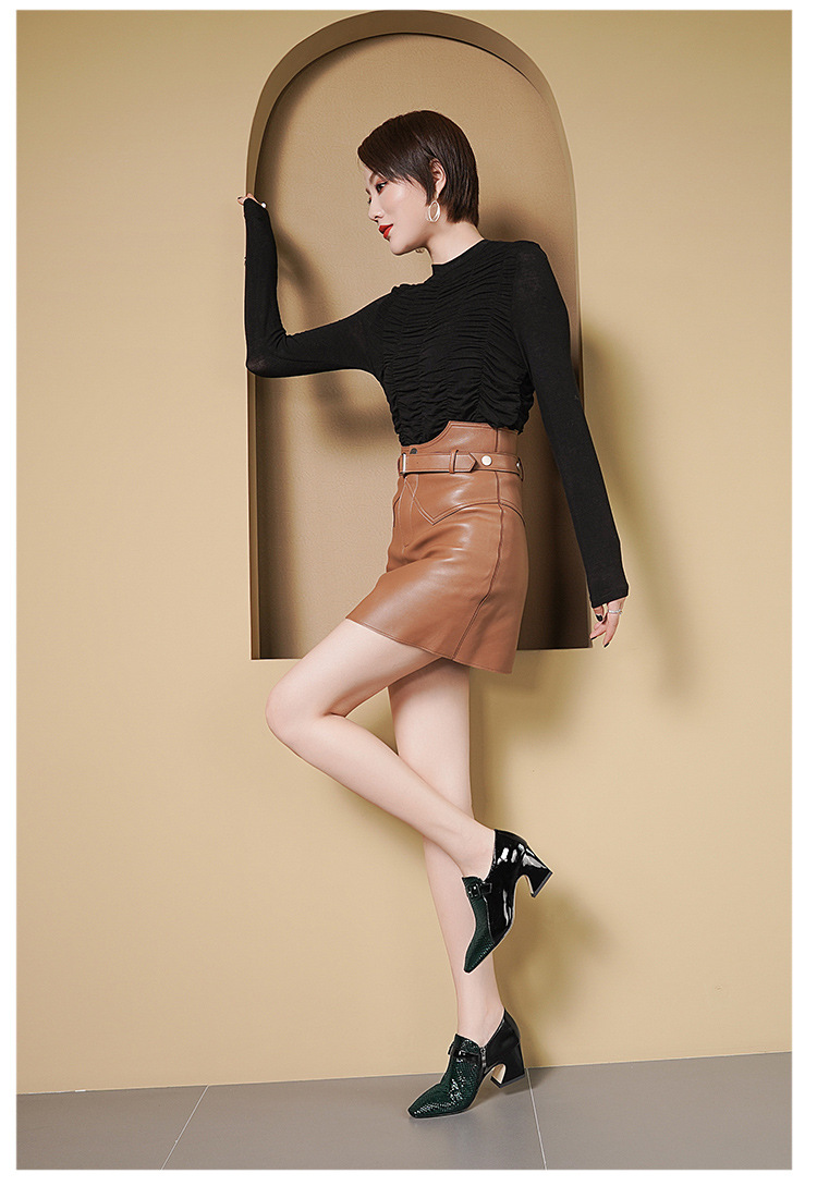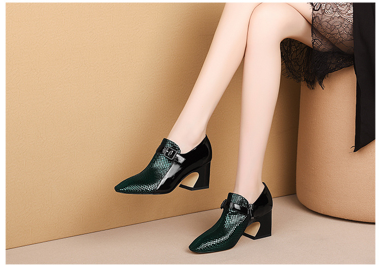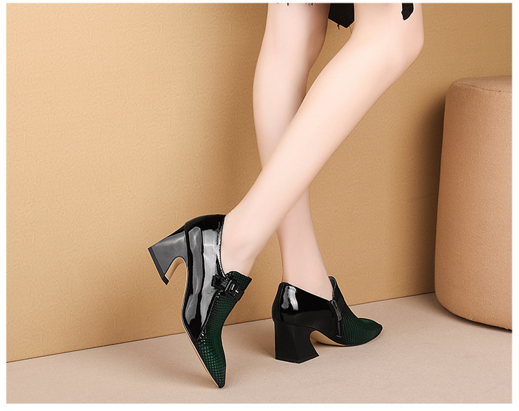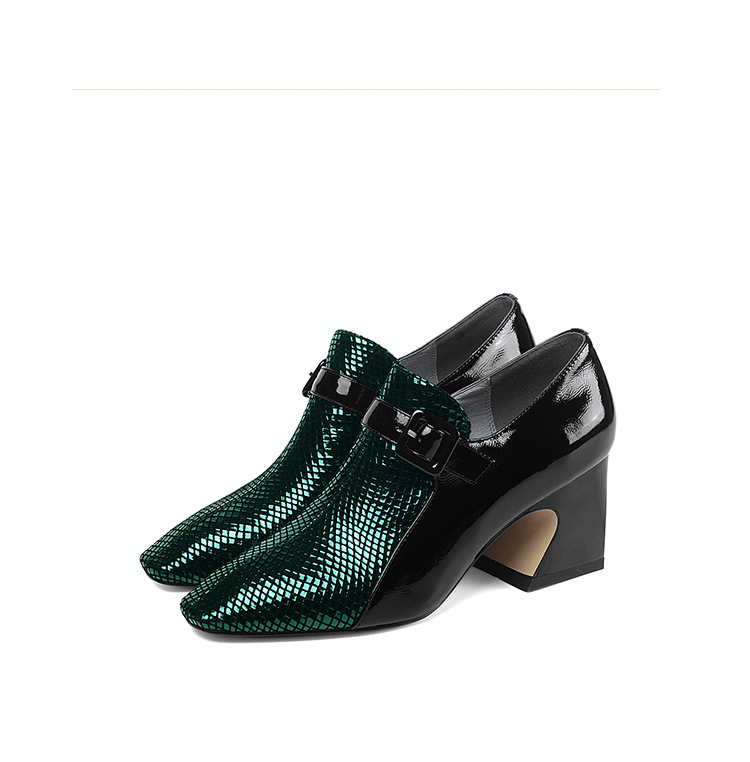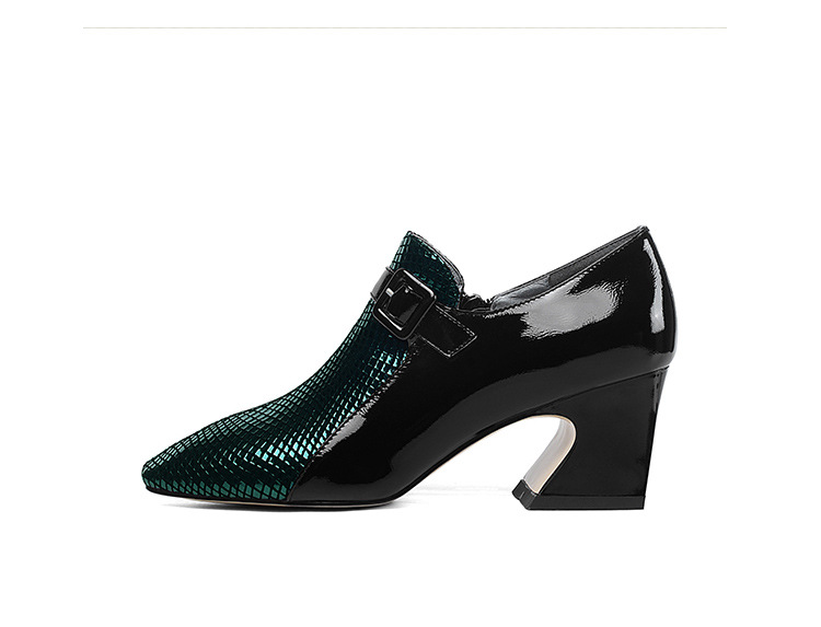 KBY-H2048粗跟方头深口单鞋女真皮大码裸靴拼色高跟鞋