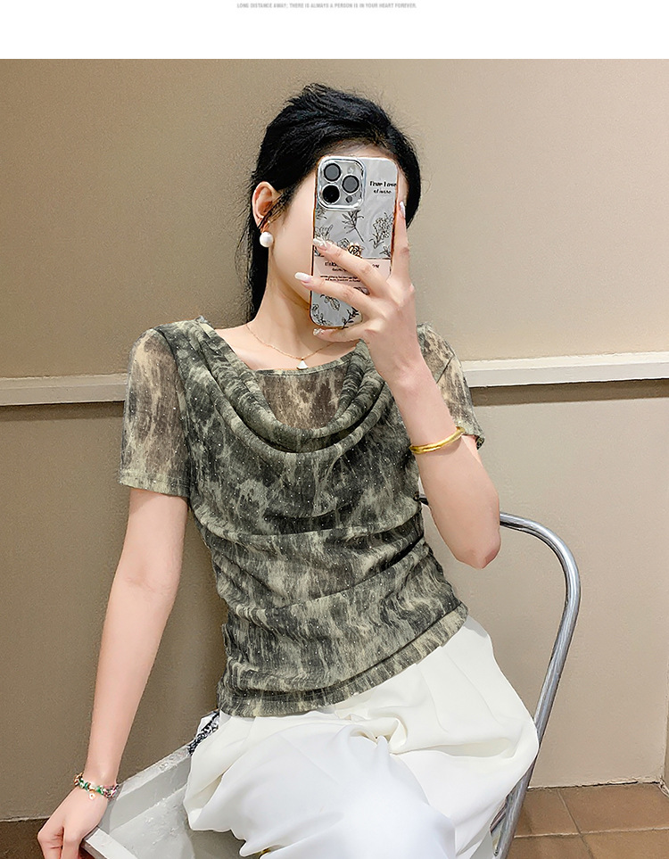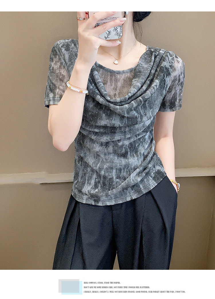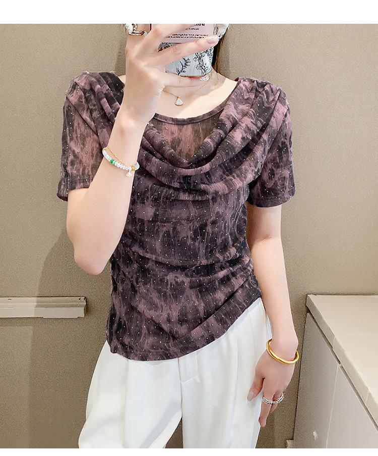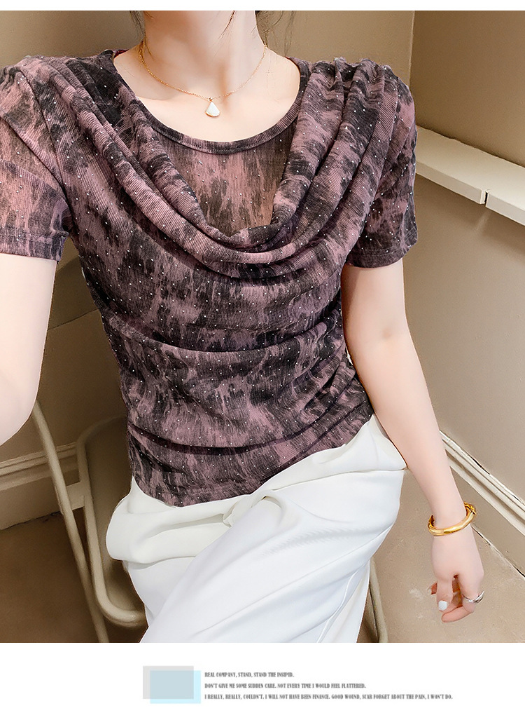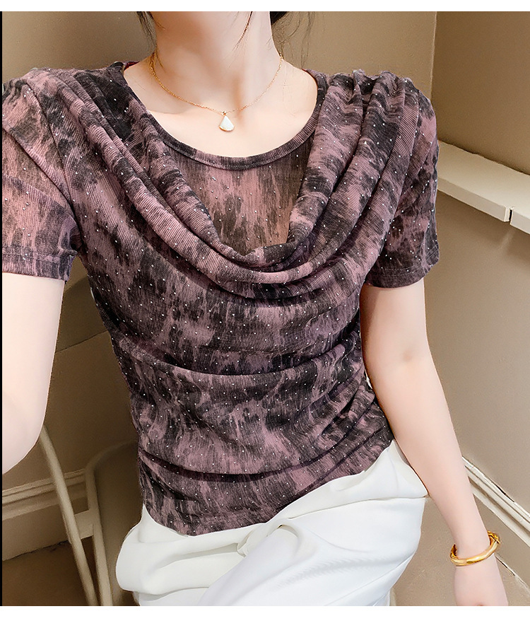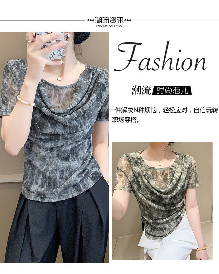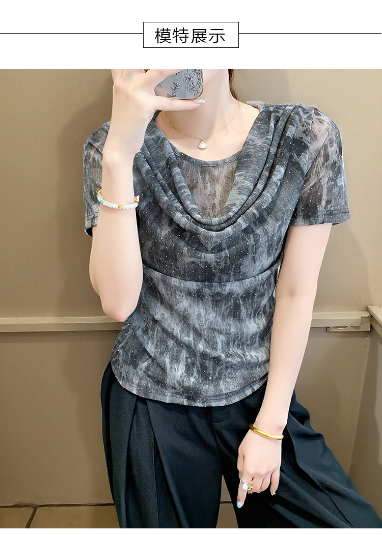 丁摩 褶皱设计感印花短袖上衣SMZ35719