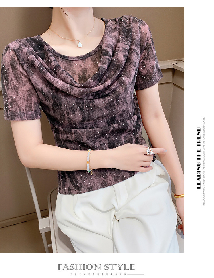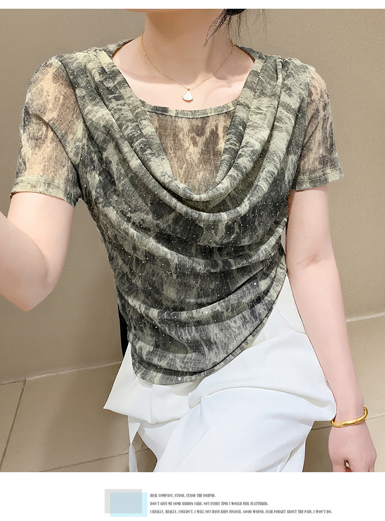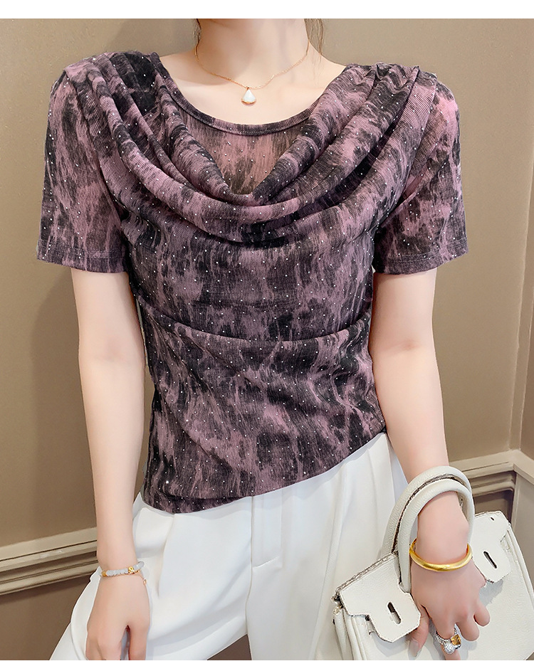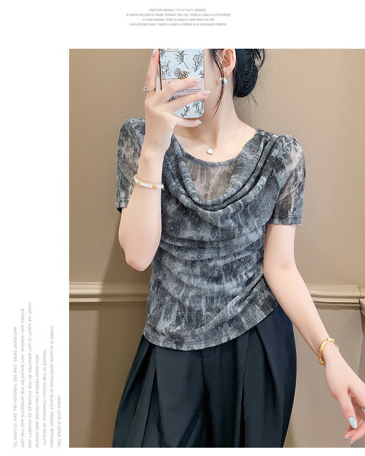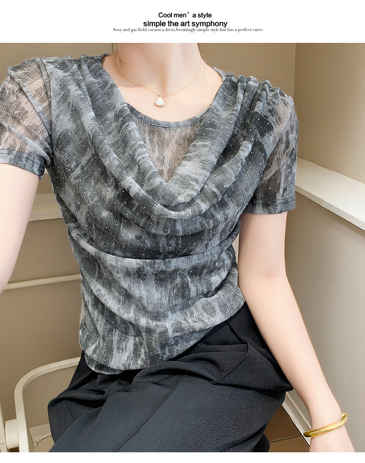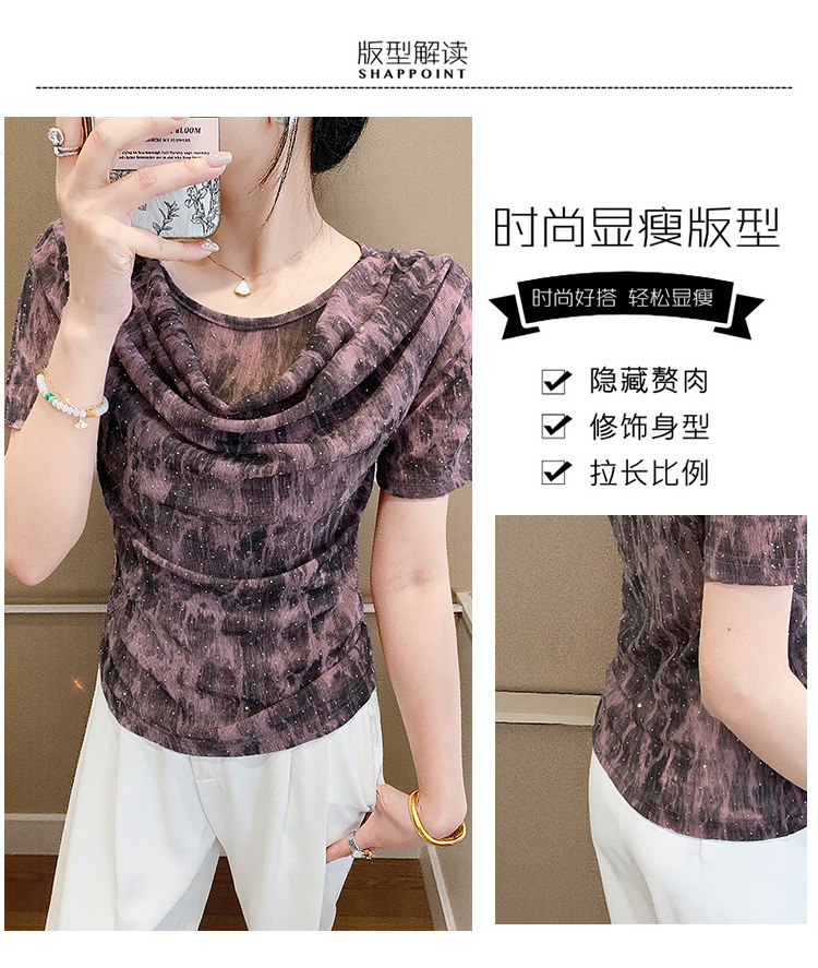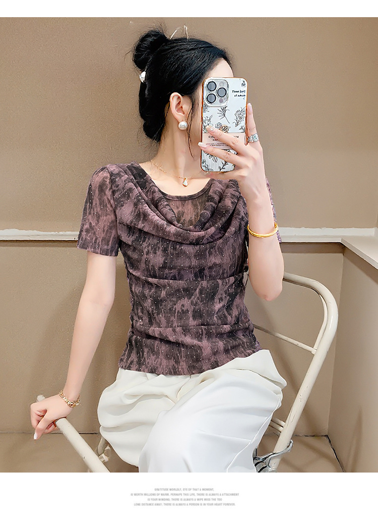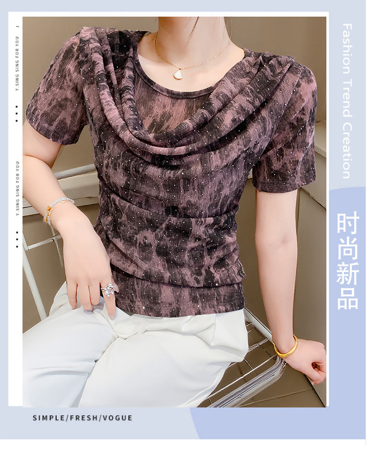 丁摩 褶皱设计感印花短袖上衣SMZ35719