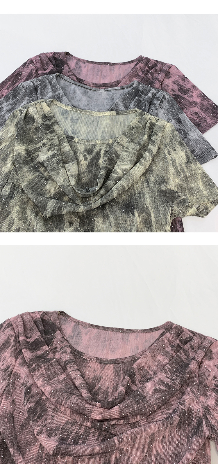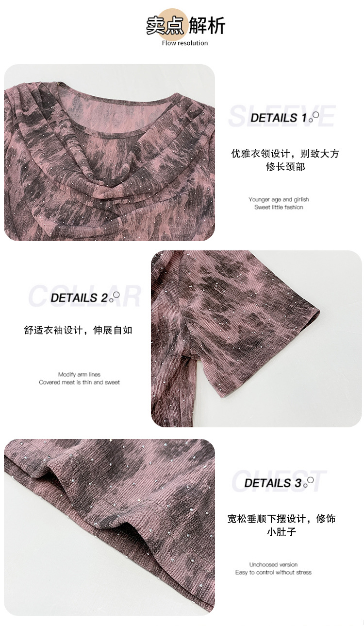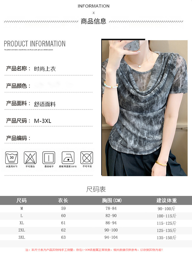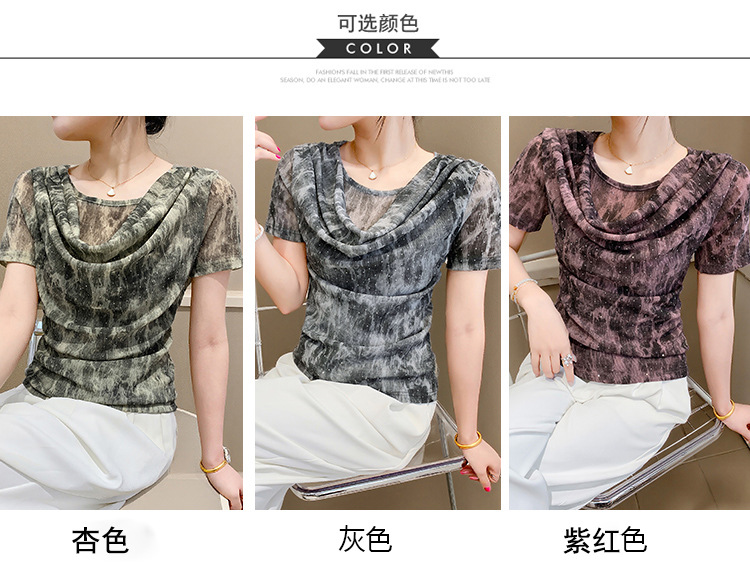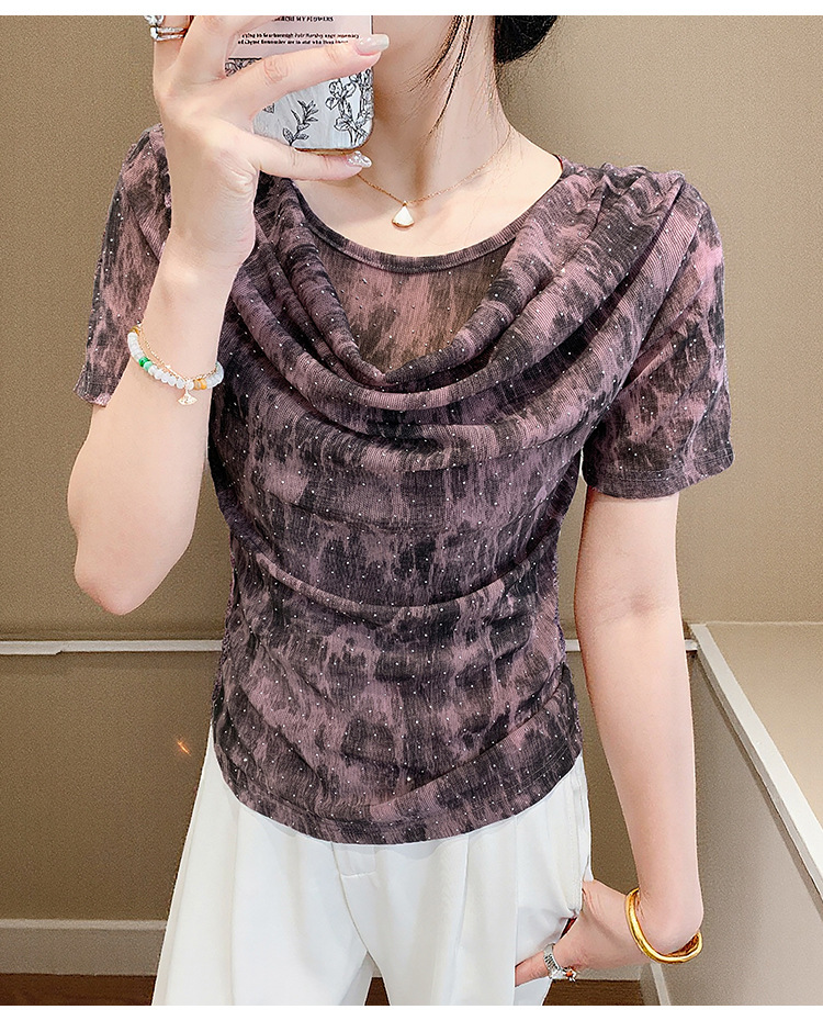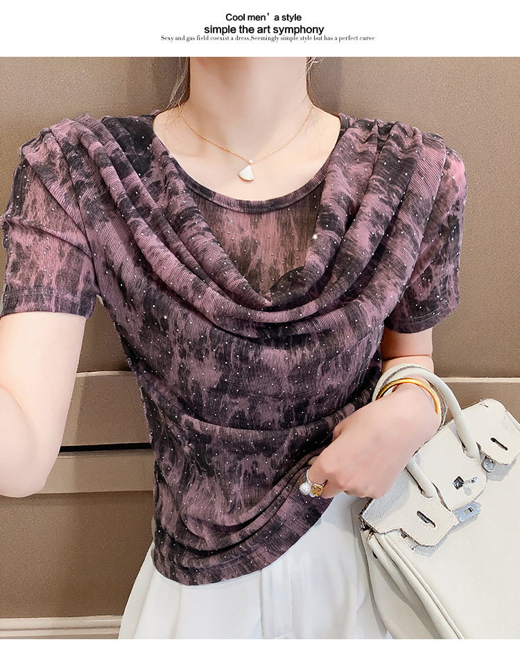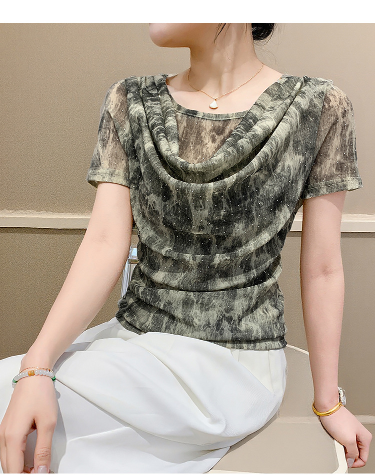 丁摩 褶皱设计感印花短袖上衣SMZ35719