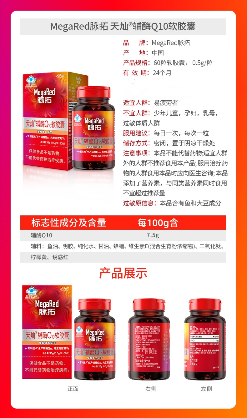 美国脉拓辅酶Q10软胶囊 60粒/瓶