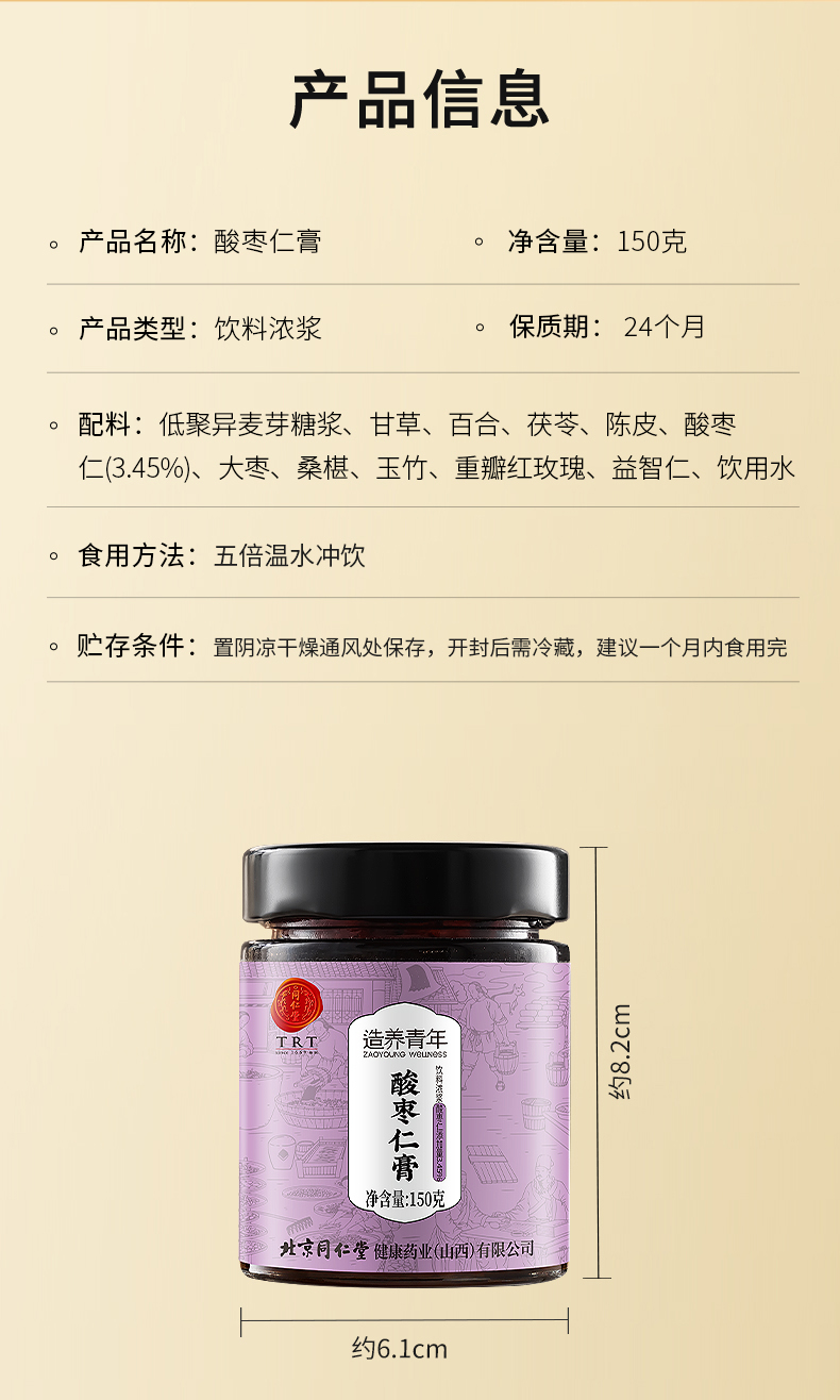 【正宗同仁堂品牌】北京同仁堂 造养青年 酸枣仁膏 150克 古法工艺 浓缩精华 SY