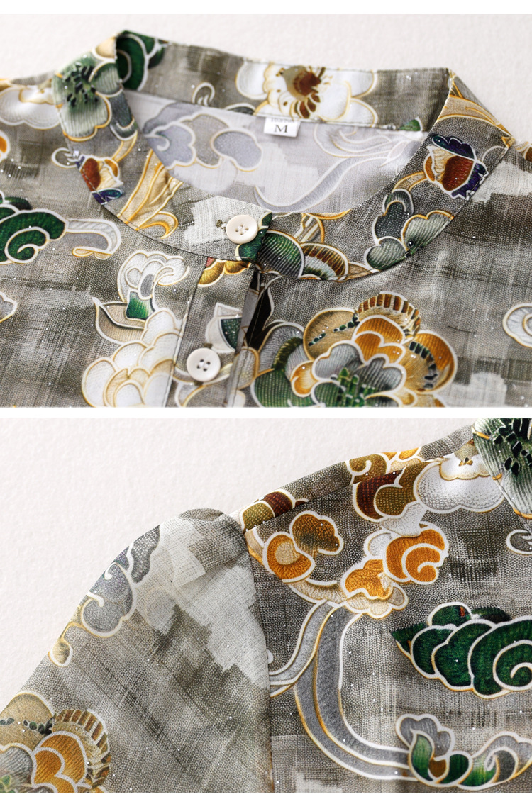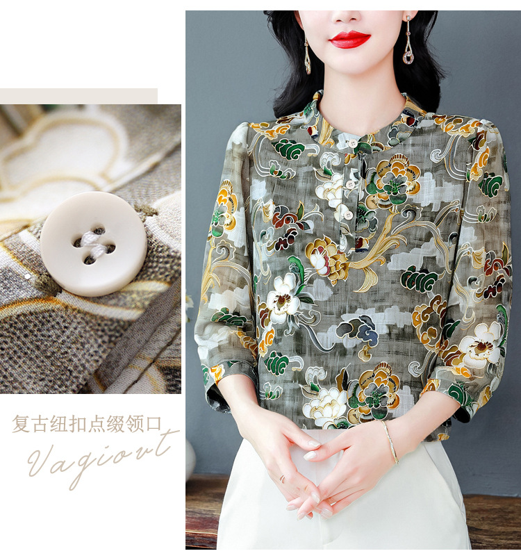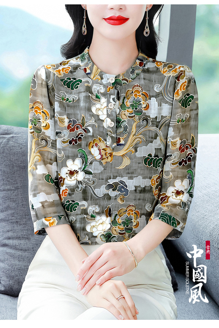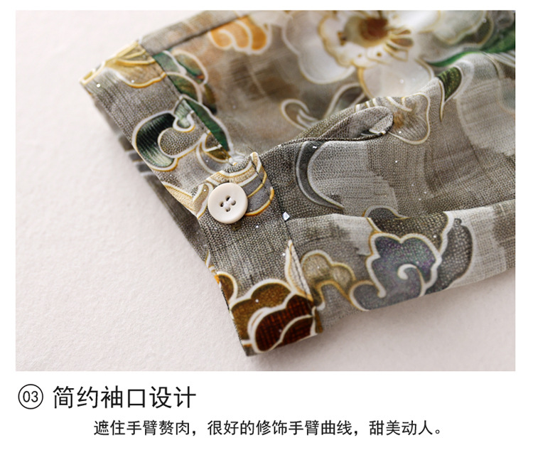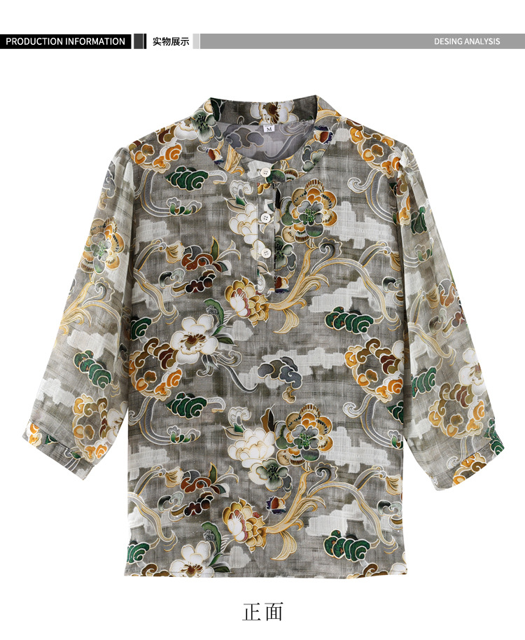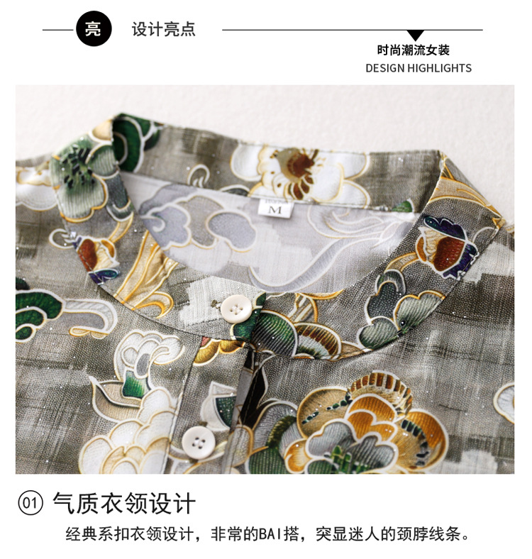 KQL B41N6585气质国风印花衬衫优雅宽松显瘦透气小衫