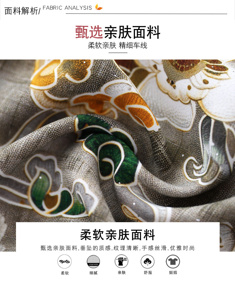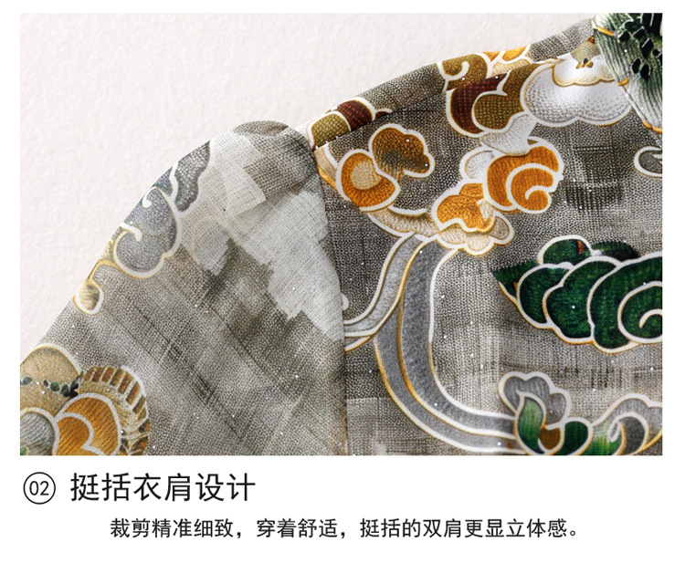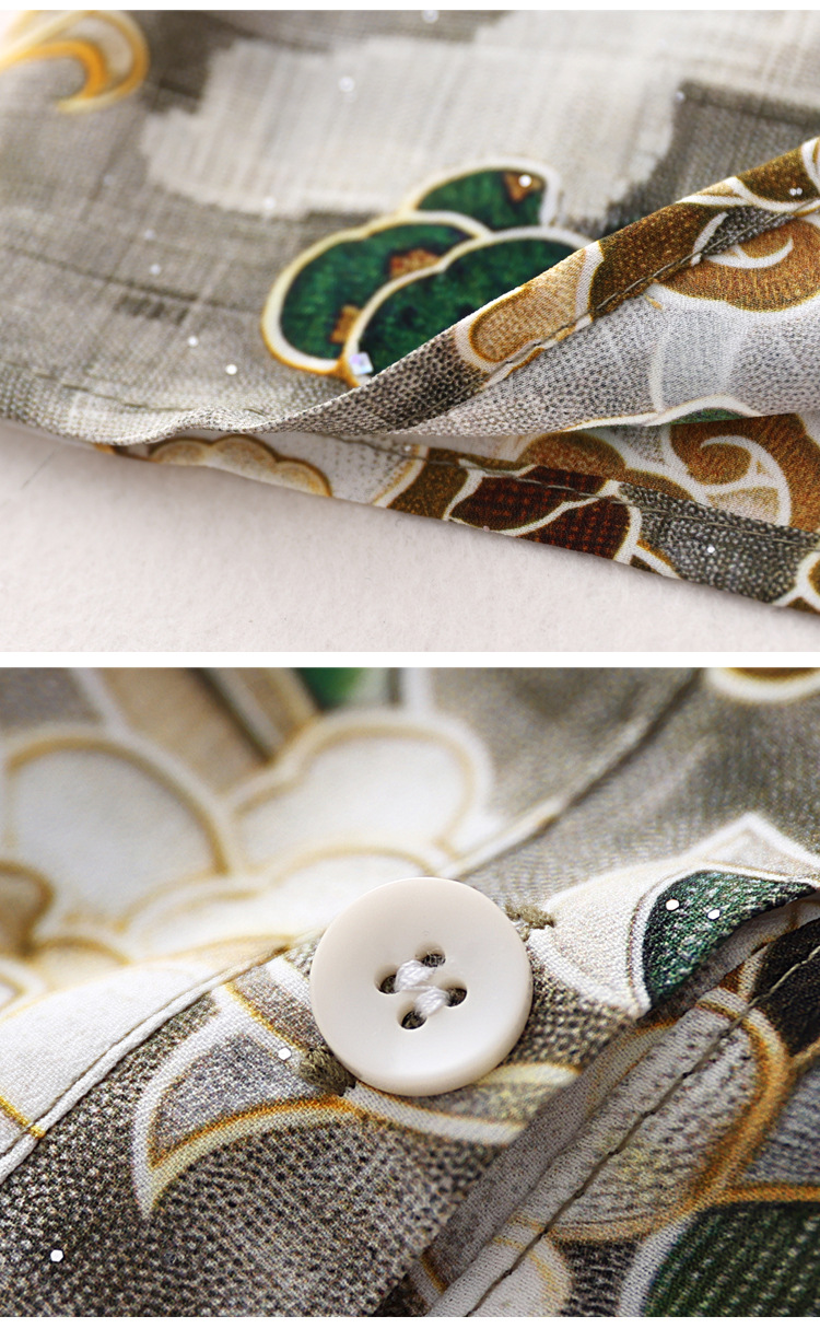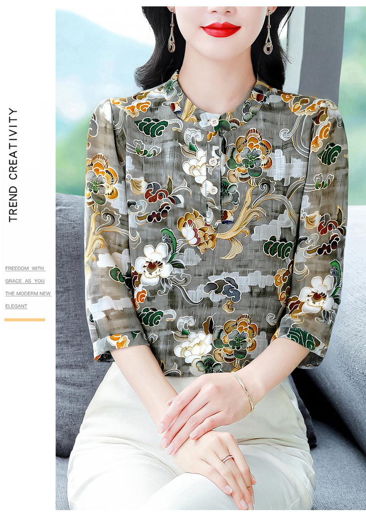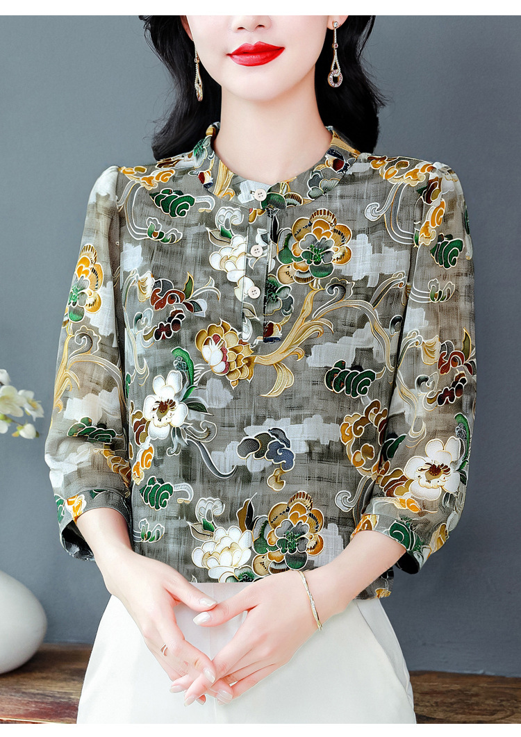 KQL B41N6585气质国风印花衬衫优雅宽松显瘦透气小衫