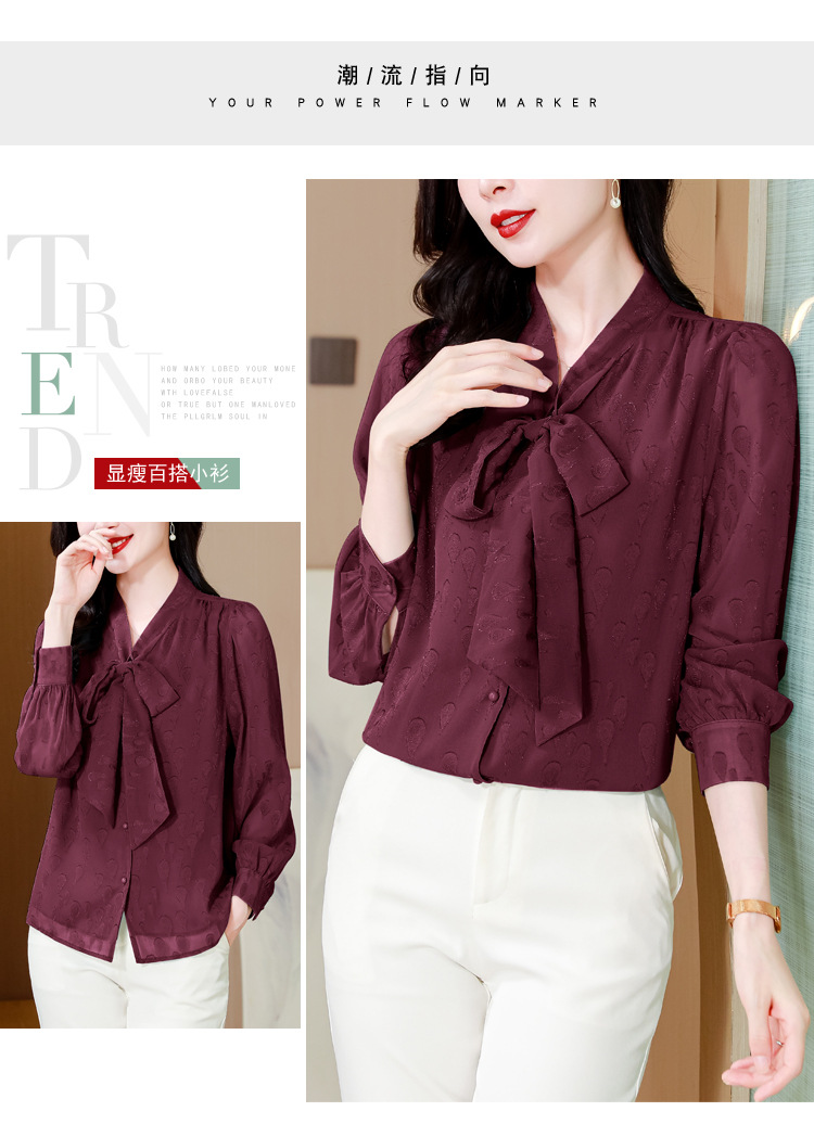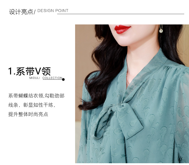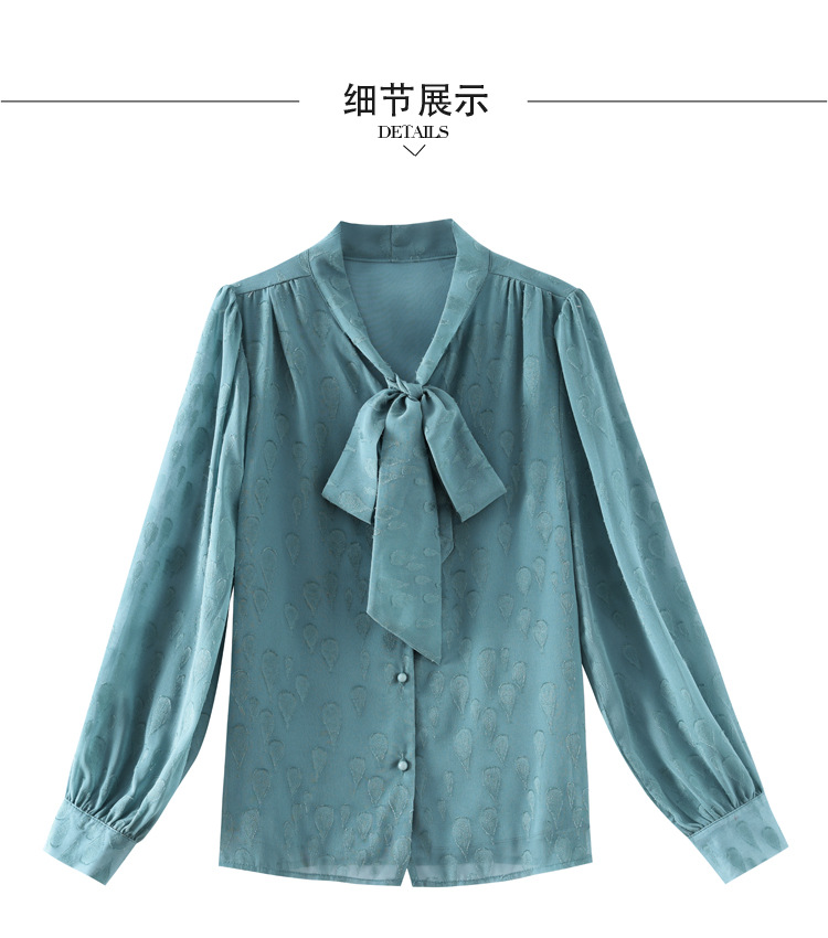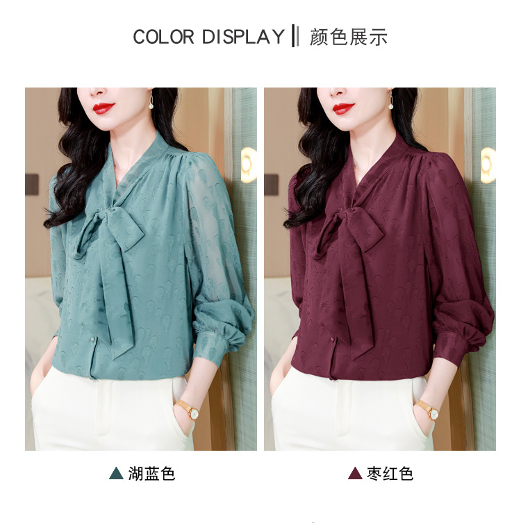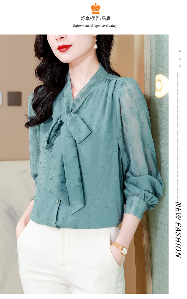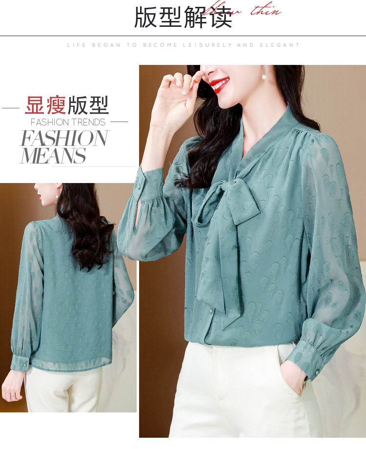 KQL 369H9981系带雪纺提花显瘦长袖上衣时尚气质衬衫