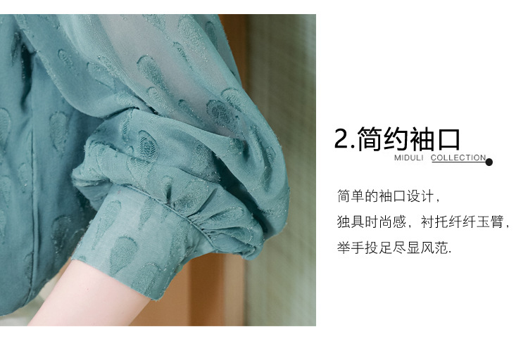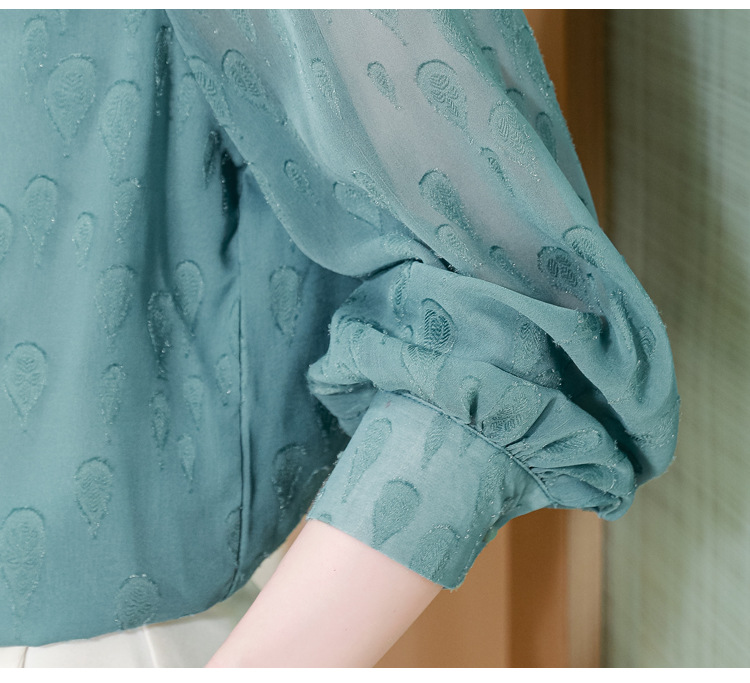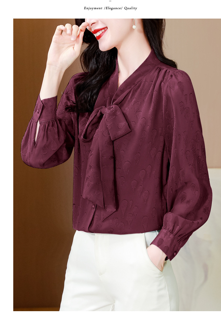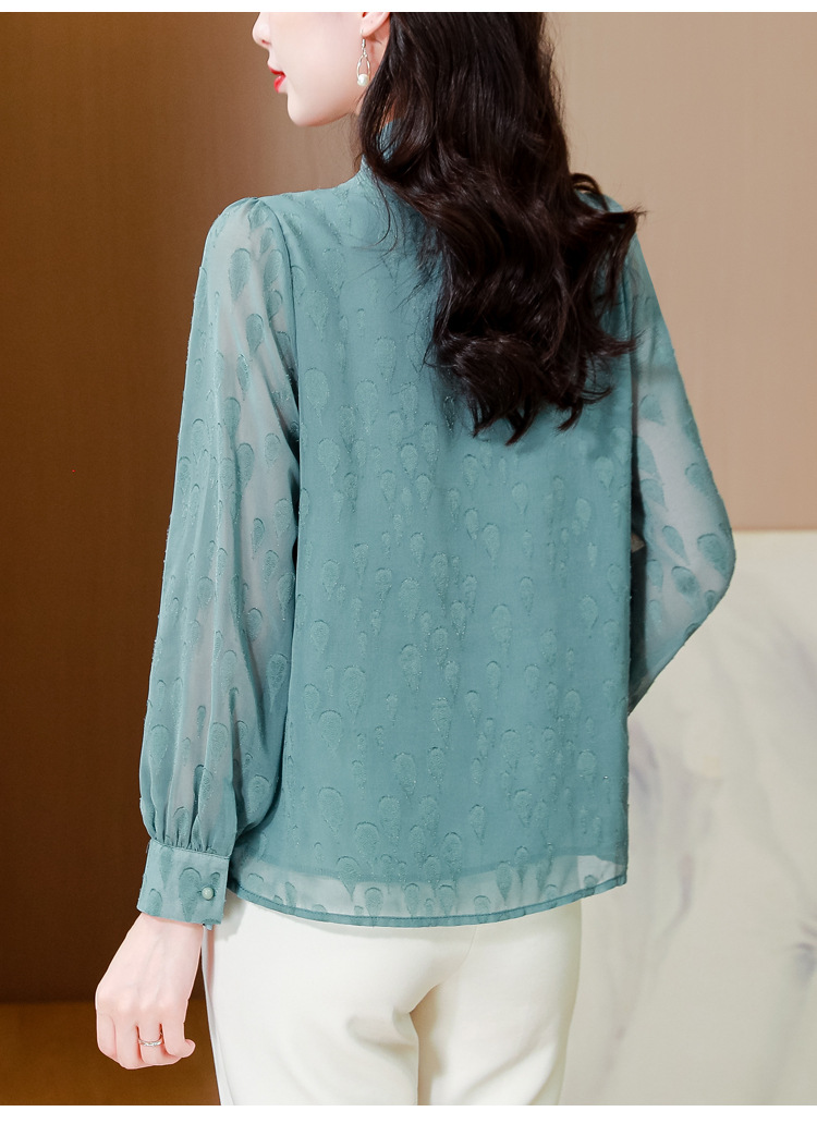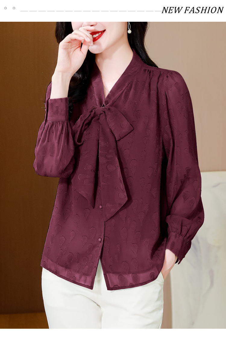 KQL 369H9981系带雪纺提花显瘦长袖上衣时尚气质衬衫