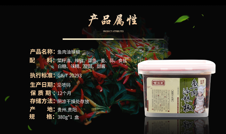 苗姑娘 鱼肉 油辣椒酱调味品调料 380g盒装