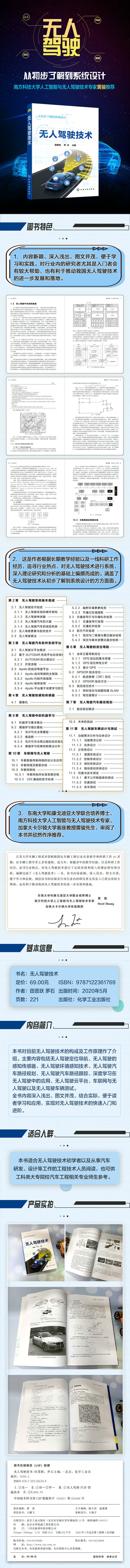 本书力求不同于诸多同类型书籍,主要结合理论教学,从实际运用这一角度出发,加入了工程实例,结合笔者多年来在无人驾驶技术实践和教学上的经验和体会,帮助读者掌握和运用无人驾驶技术的基本理论和方法。