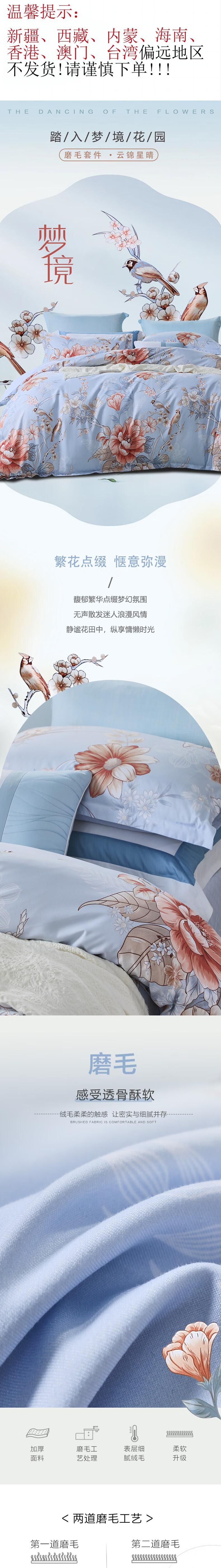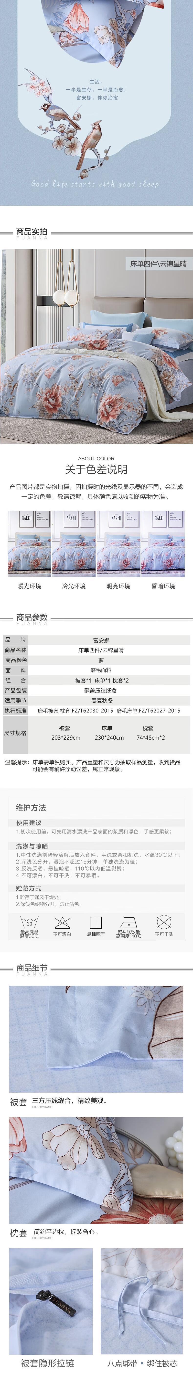 富安娜 磨毛四件套-云锦星晴203*229cm 6916517111266