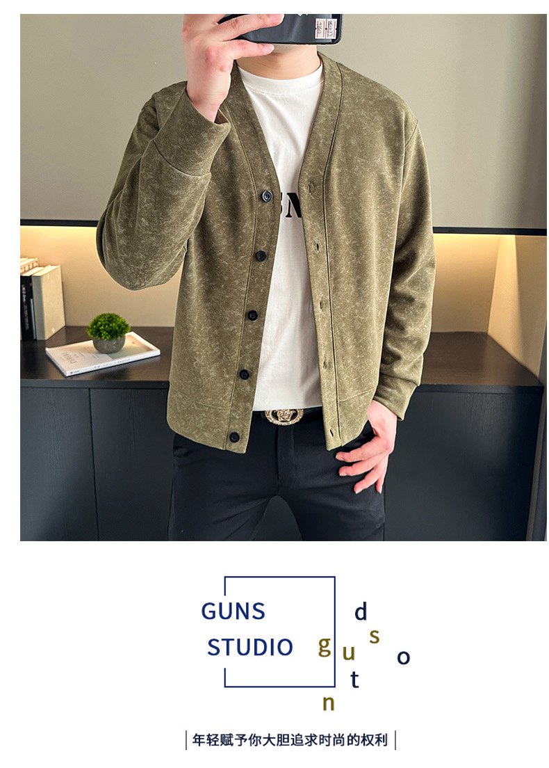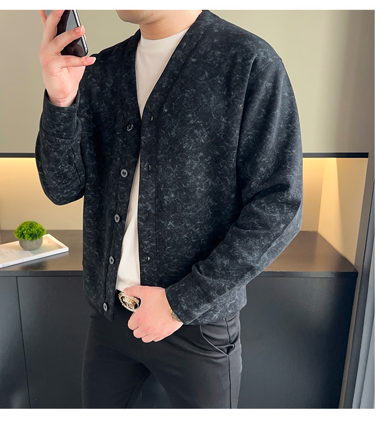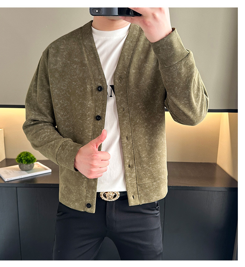 【新款DH】大依优型大码男装休闲潮流开衫纽扣V领夹克外套