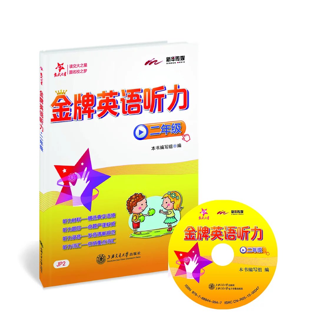 交大之星系列:金牌英语听力·二年级 “交大之星——金牌英语听力系列”共12册,精选真实口语材料,精心编制新颖的听力题目,由易到难,层层递进,对学生进行科学的听力训练。单元练习后配有重难点词汇