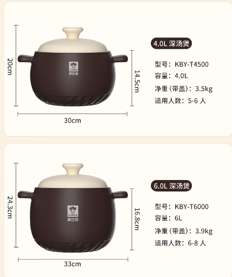 康巴赫-悦享系列养生陶瓷深汤煲-4L/6L